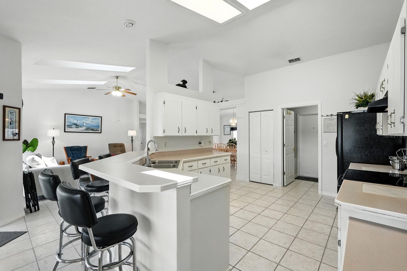 Welcome to your dream home! This beautiful single-family residence features a brand new roof and a newer HVAC system for optimal comfort. The open floor plan seamlessly connects the living spaces, highlighted by vaulted ceilings and abundant natural light from skylights. Enjoy elegant tile floors throughout, adding a touch of sophistication. The spacious walk-in closet offers ample storage, while the double bathroom sinks provide convenience for busy mornings. Situated on a serene pond, this home combines comfort, style, and tranquility. Don't miss this exceptional opportunity!