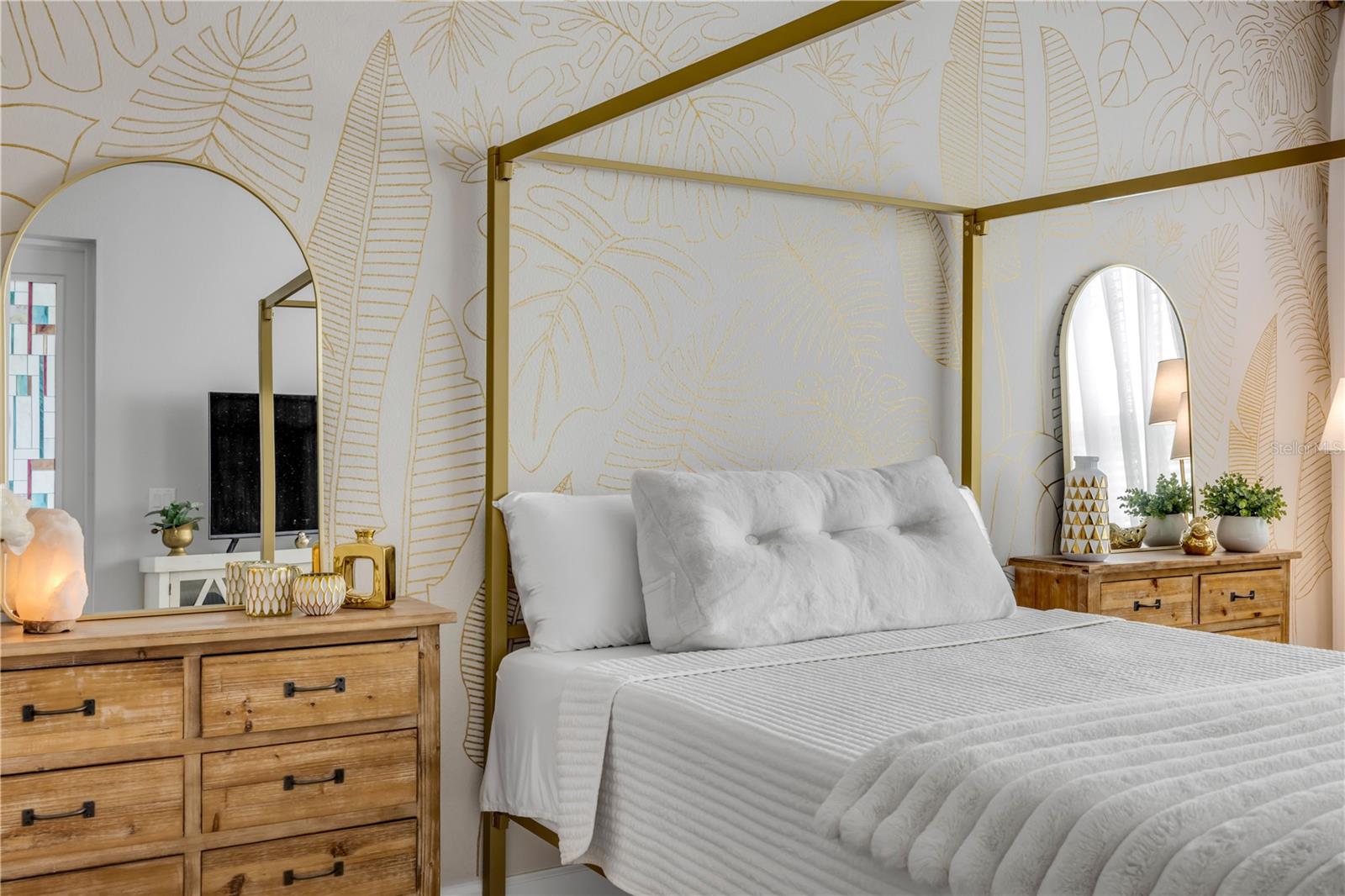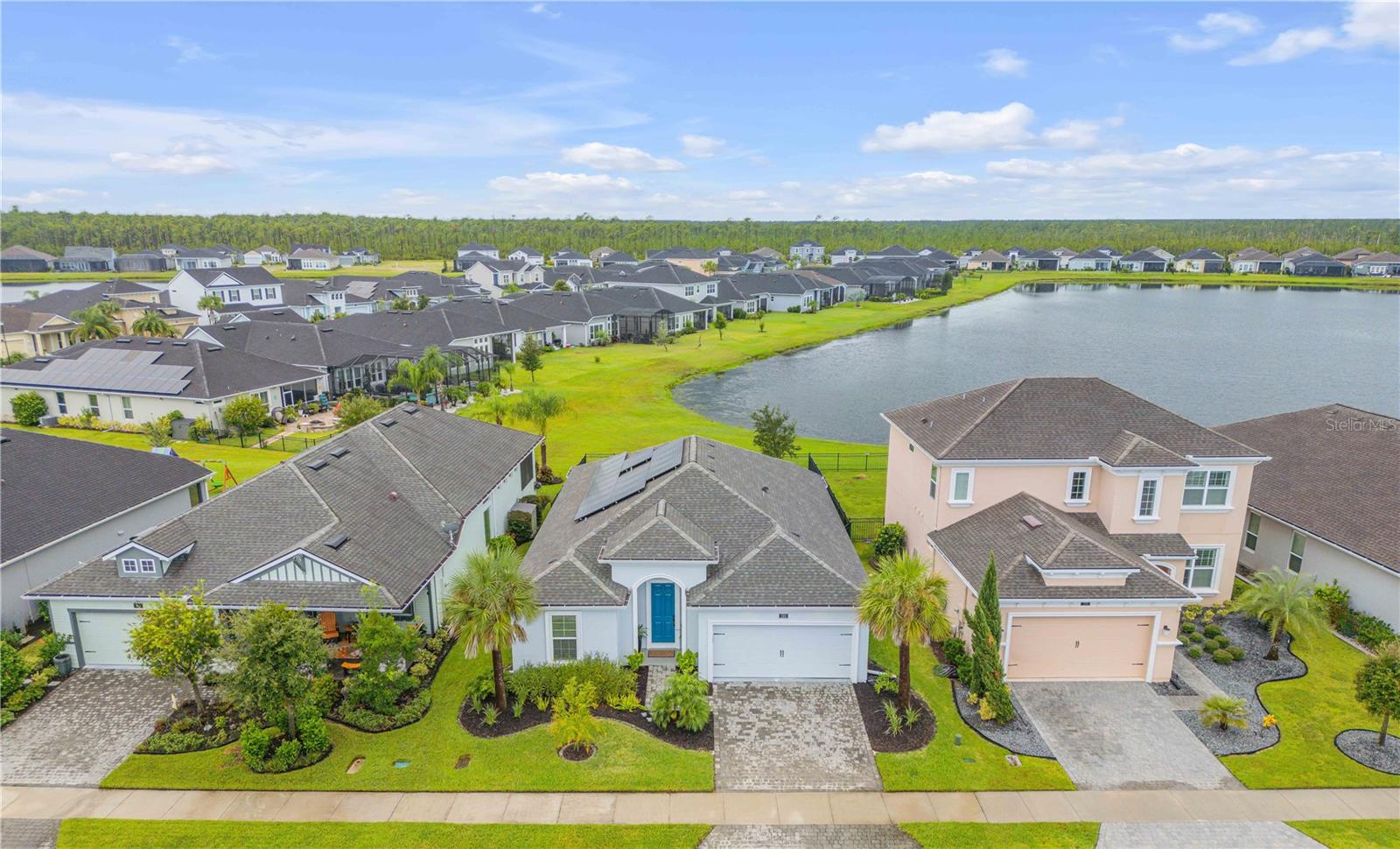 Captivating LAKE VIEWS! This stunning 3-bedroom, 2-bath Fontana model by ICI Homes offers 1,665 sq. ft. of light-filled living space in the highly sought-after Mosaic community. From the moment you arrive, you'll be greeted by a paver driveway and walkway, lush landscaping, and beautiful curb appeal. Step inside and you'll immediately notice the unique boho style with thoughtfully chosen new fixtures and finishes throughout. The bright, open floor plan features soaring ceilings, 8-ft sliding glass doors, and surround sound in the living room, perfect for relaxing or entertaining. The spacious master suite is a true retreat with a custom hand-painted gold foil accent wall, a walk-in closet, and a luxurious en suite bath featuring dual sinks and a separate shower. Additional bedrooms provide plenty of space for family, guests, or even a home office. Enjoy the outdoors with a screened-in back porch and a fully fenced backyard with elegant black wrought iron fencing, all overlooking the tranquil lake views. This home is also equipped with SOLAR PANELS, bringing the average electric bill to only about $40 per montha major savings and eco-friendly bonus! The Mosaic community offers resort-style amenities including a zero-entry pool, clubhouse with state-of-the-art fitness center, a children's playground, and miles of walking paths. Don't miss your chance to own this beautiful, energy-efficient lakefront home with style and characterschedule your private tour today! This one won't last long! Square footage received from tax rolls. All information recorded in the MLS is deemed accurate but not guaranteed.