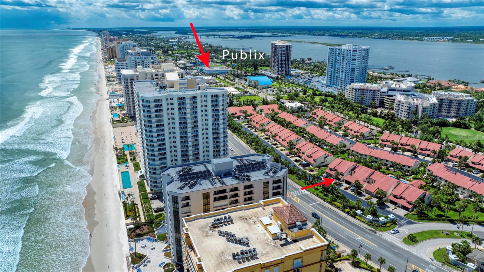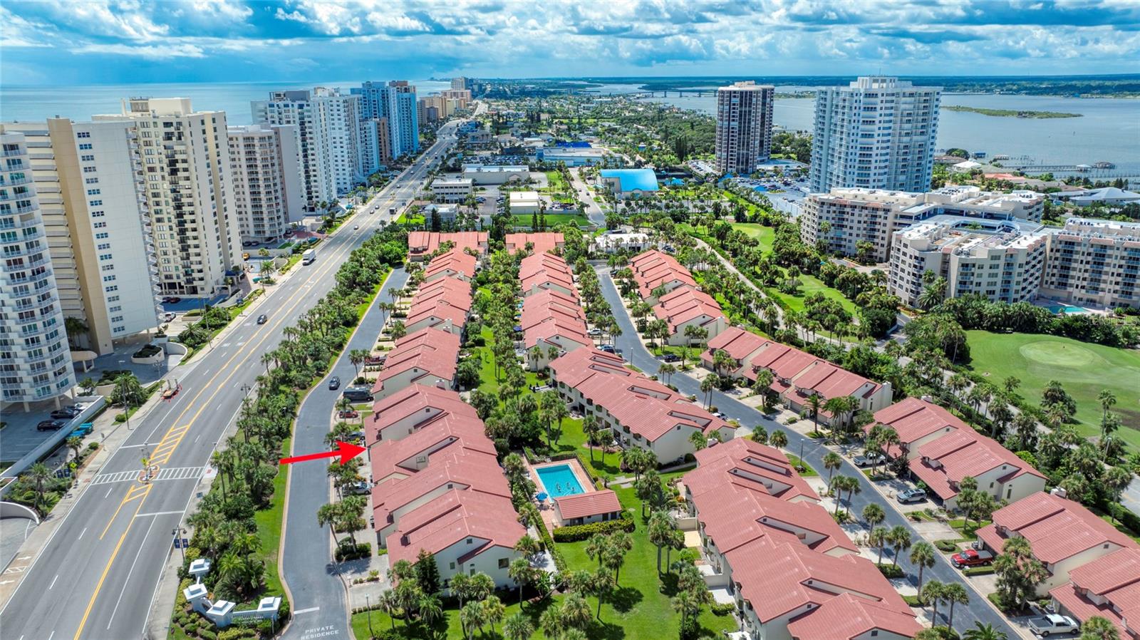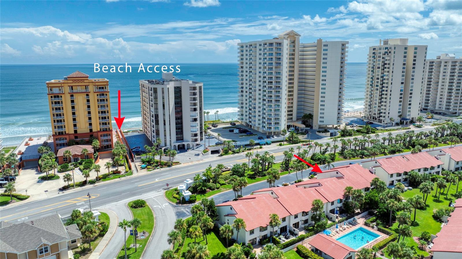 LARGEST HOME AT TOWN HOMES AT THE OCEANS!!! BLOCK CONSTRUCTION WITH NEW TILE ROOF. OVERSIZED 1 CAR GARAGE, 2 WALK-IN CLOSETS. ALL APPLIANCES UPGRADED. JACUZZI TUB & SHOWER IN MASTER BATH.HEATED FLOORING IN MASTER BATH, PLANTATION BLINDS ON ALL WINDOWS. CEILING FANS THROUGHOUT. HARD WOOD FLOORS THROUGH OUT MAIN LIVING AREA NEW AC 2025 NEW ROOF 2024 ACROSS THE STREET FROM THE WORLD FAMOUS DAYTONA BEACH WALK TO SHOPPING BANKING BUSES PICKLE BALL TENNIS GOLF. 2977 total SQ. FT. INCLUDING GARAGE. OCEAN VIEW from top floor second bedroom CLOSE to DAYTONA INTERNATIONAL AIR PORT INTERNATIONAL SPEEDWAY. Vacation year round MUST SEE THIS LARGE OPEN TOWN HOME!