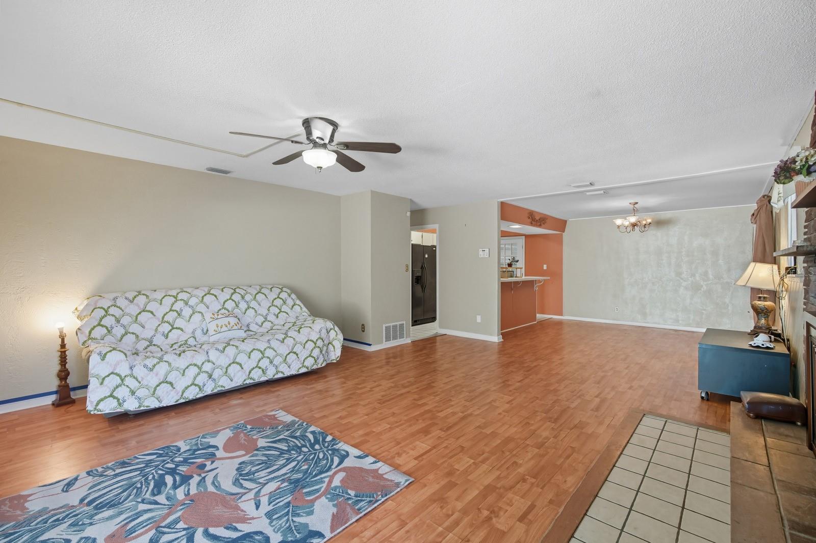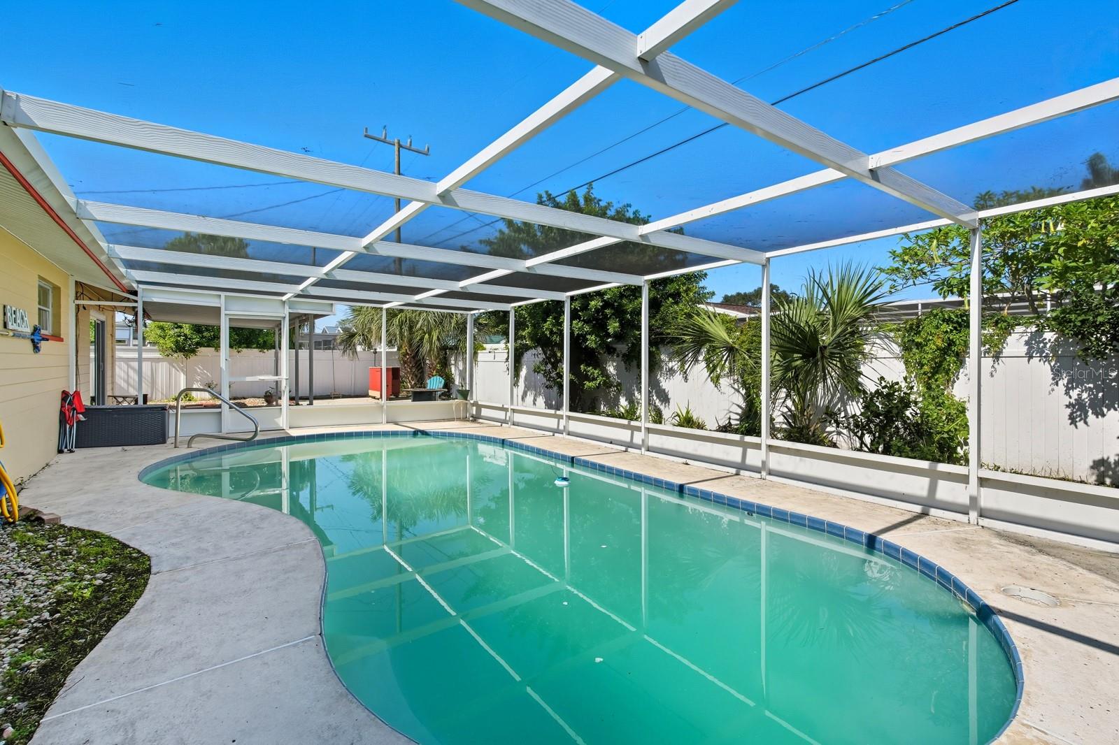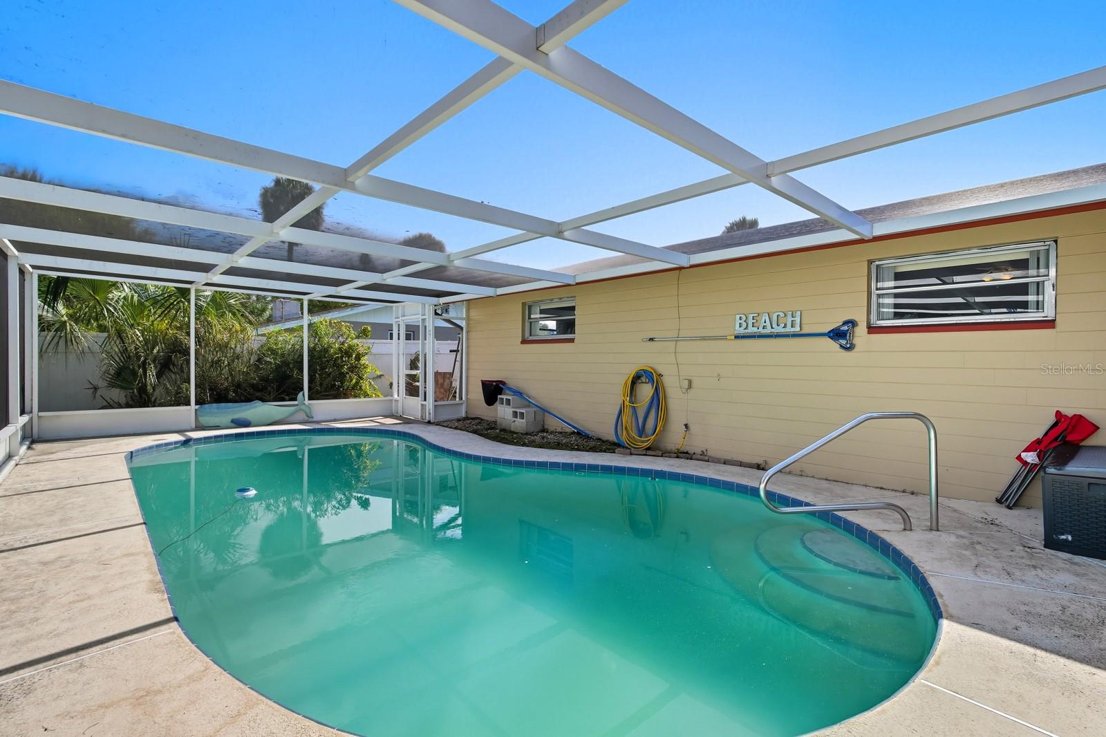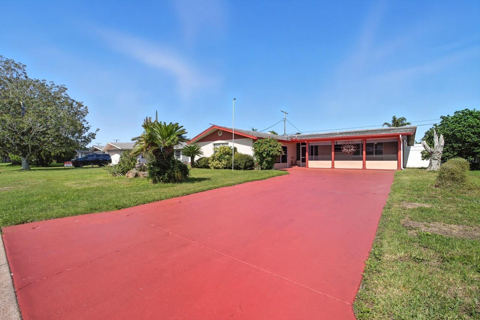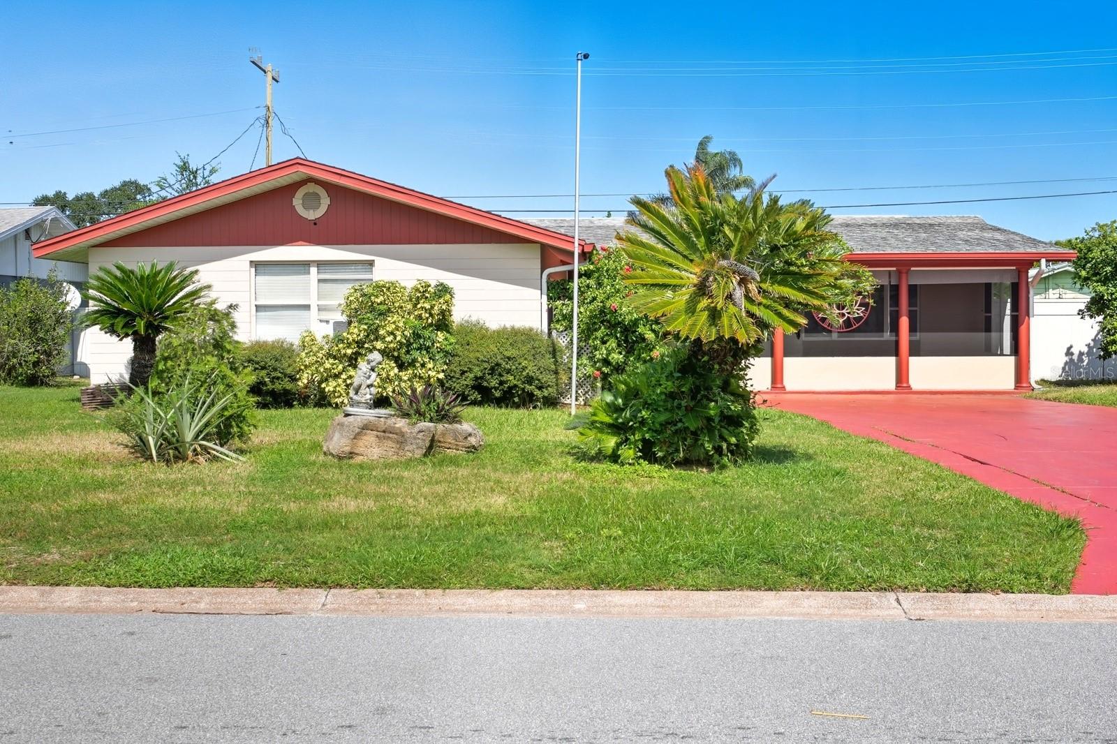 Savor the Florida lifestyle in this charming three-bedroom pool home with a party deck, perfect for entertaining! The spacious, open floor plan flows seamlessly from the living room to the covered patio, where you can relax with a view of the sparkling pool. Whether you're hosting friends or enjoying a quiet evening, this home offers the best of both worlds. Start your mornings on the oversized screened front porch—the ideal spot for coffee and quiet time. The kitchen features a breakfast bar for quick bites, plus easy garage access to make unloading groceries effortless. The dining area opens to a cozy living room anchored by a warm brick fireplace—an inviting centerpiece for family gatherings. The primary suite includes twin closets and a private bath, while the additional bedrooms offer plenty of space for guests or a home office. One of the best things about this home? It’s an opportunity to make upgrades as you go—with plenty of potential for customization and your vision. The affordable price means you can buy into the Florida lifestyle without stretching your budget. Fairway Estates is perfectly located near shopping, dining, schools, golf, and just minutes from the World's Most Famous Beach. This home is full of character and ready for you to make it your own—don’t wait, this one won’t last!