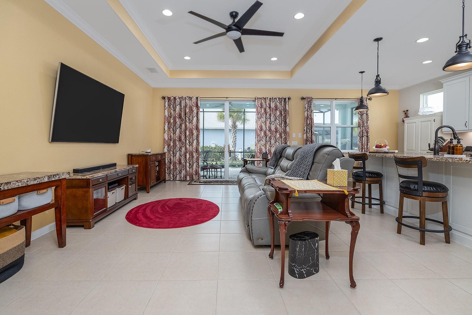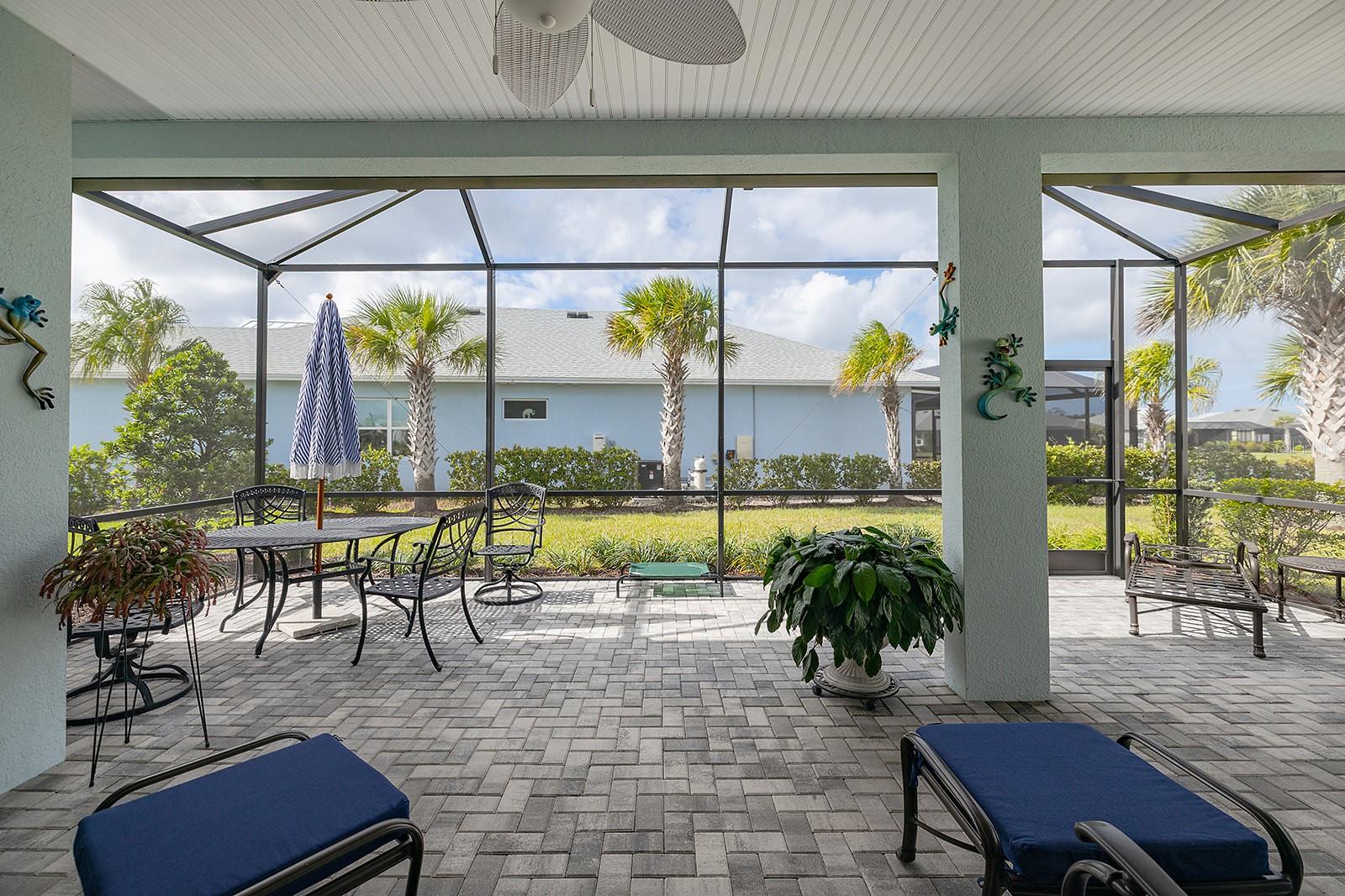 Elegant Cabana Model on a large corner lot with room to add a pool, offering 3 bedrooms, 2.5 baths, an office/den, and seamless tile floors throughout. Chef-style kitchen features stone countertops, wine refrigerator, double wall ovens, walk-in pantry, and a new dishwasher. Spacious primary suite includes two walk-in closets, sitting area, and spa-inspired bath with glass rain shower and abundant cabinetry. Upgrades you’ll love: Generac generator with 10-year warranty, Nest thermostat, on-demand hot water, laundry cabinetry, fresh interior paint, whole-house water filtration, gutters, and garage overhead storage with shelving and organizing racks. Relax or entertain under the covered lanai and design your private outdoor oasis. Resort-style community amenities include Paradise Pool, Fitness Center, Bar & Chill, pickleball courts, and more—close to Publix, dining, and shopping.