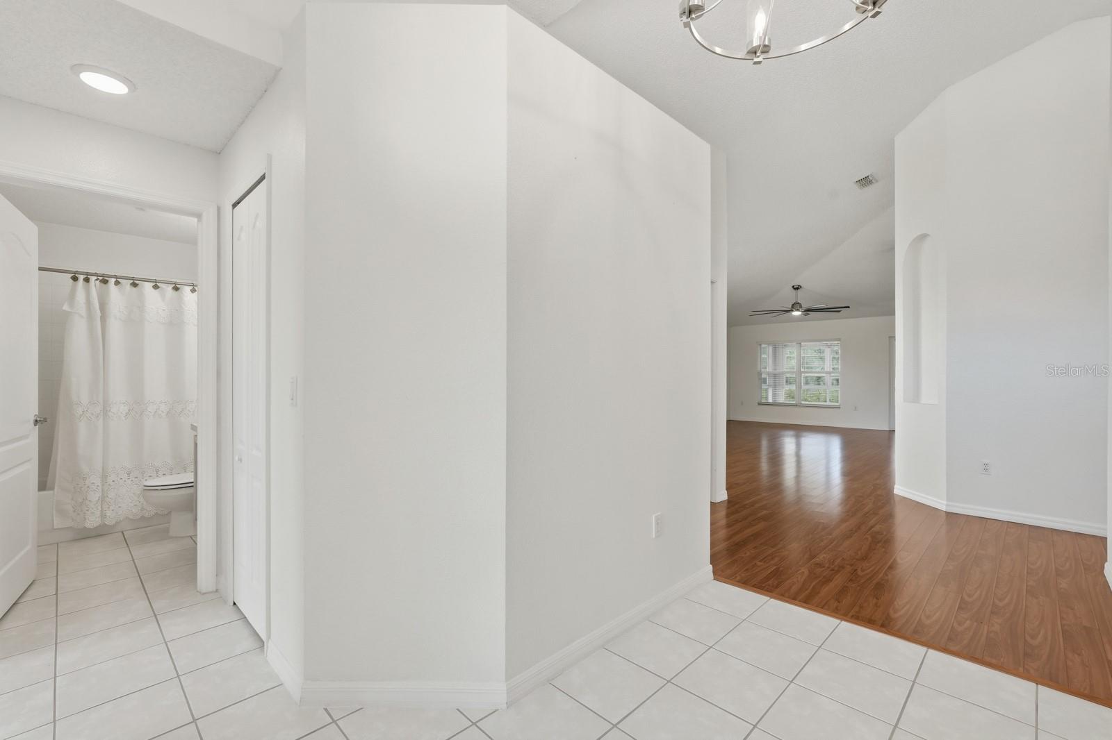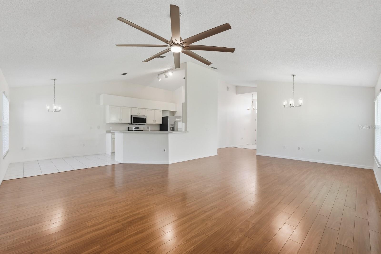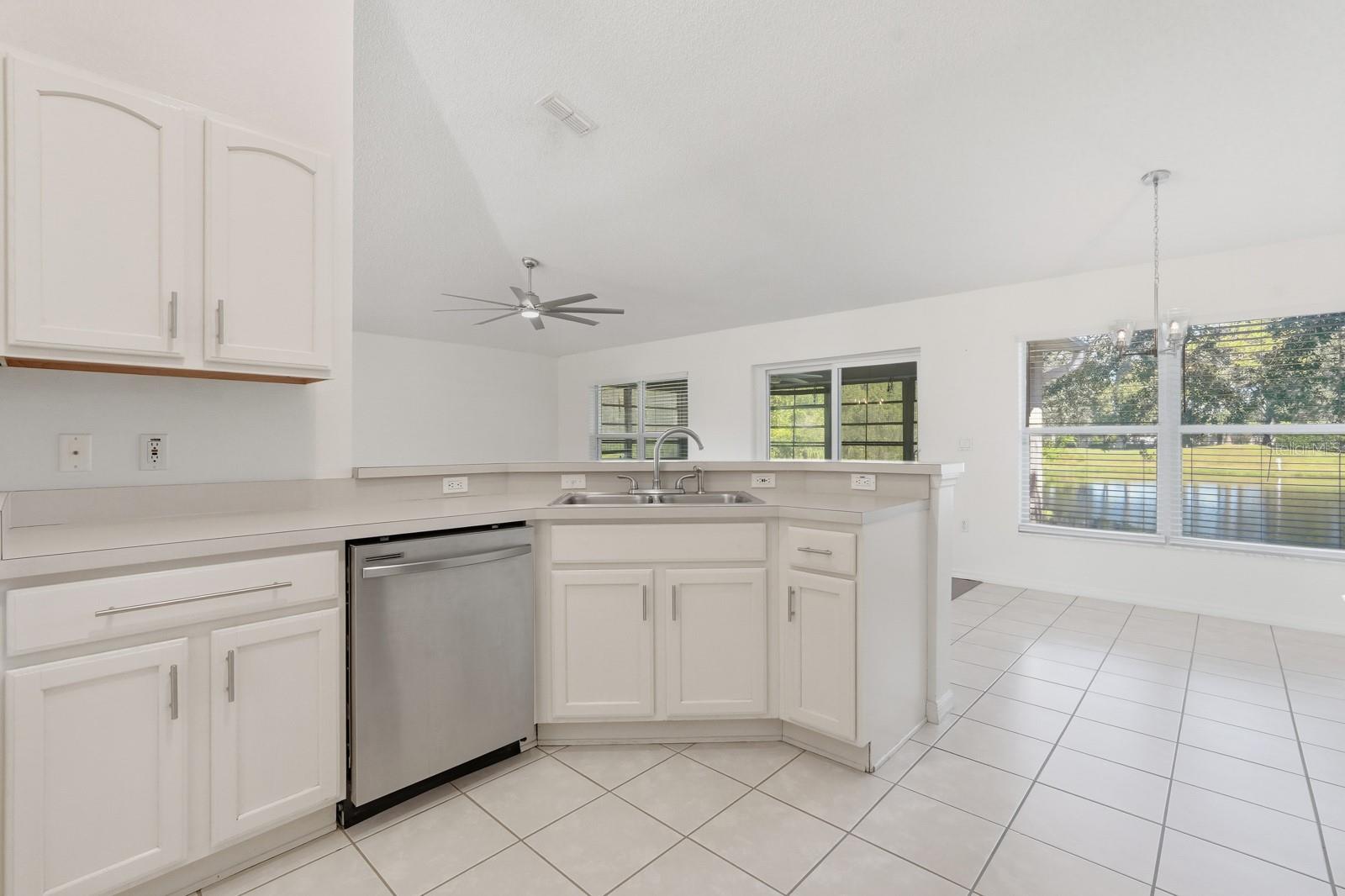 Back on the market at no fault of the seller. This 3-bedroom, 2-bath home is located within the LPGA International community in Daytona Beach and offers approximately 1,747 square feet of living space. The home features a split-bedroom floor plan with vaulted ceilings and an open layout connecting the main living, dining, and kitchen areas. The kitchen provides ample cabinetry and counter space and opens directly to the primary living area, creating a functional layout for daily use. The primary bedroom includes a walk-in closet and an ensuite bathroom with dual vanities, a soaking tub, and a separate shower. Secondary bedrooms are positioned on the opposite side of the home, offering separation from the primary suite. Additional features include an interior laundry room, a two-car garage, and neutral finishes throughout. A screened patio overlooks a lake, providing covered outdoor space with water views. The property is situated within an established golf course community with convenient access to nearby shopping, dining, medical facilities, and major roadways.
