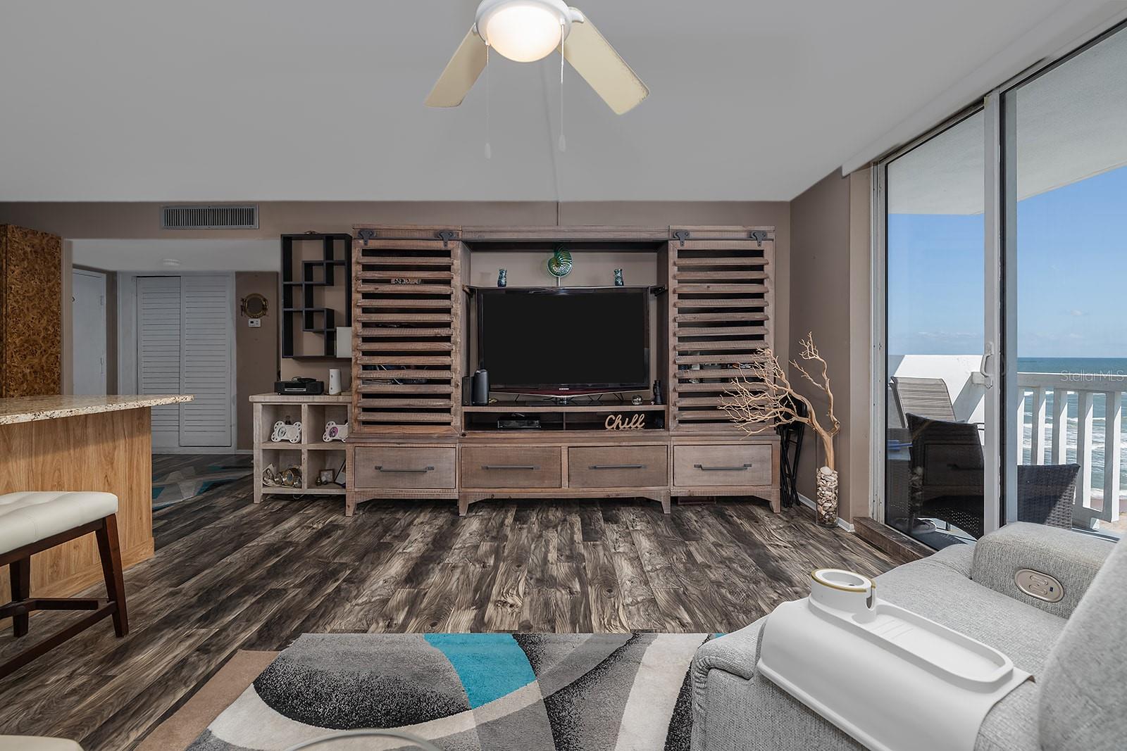 Perched on the 7th floor, this furnished beachside condo with garage parking captures breathtaking south-facing views of the Atlantic Ocean and Intracoastal Waterway. Inside, a bright open layout showcases a massive updated kitchen—a rare find in a one-bedroom condo—ideal for cooking, entertaining, or simply enjoying the view. Spacious living and dining areas flow together, while the oversized bedroom offers generous closet space and abundant natural light. A modernized bath and 2025 HVAC add comfort and peace of mind. Enjoy resort-style living with low HOA fees of just $628/month covering cable, internet, water, trash, pest control, and cleaning. Residents enjoy a fitness center, library, bike storage, and a new pool currently under construction. Ideally located near Ormond and Daytona Beach restaurants, shops, and local events, this condo blends comfort, convenience, and panoramic beauty. Information deemed reliable but not guaranteed.