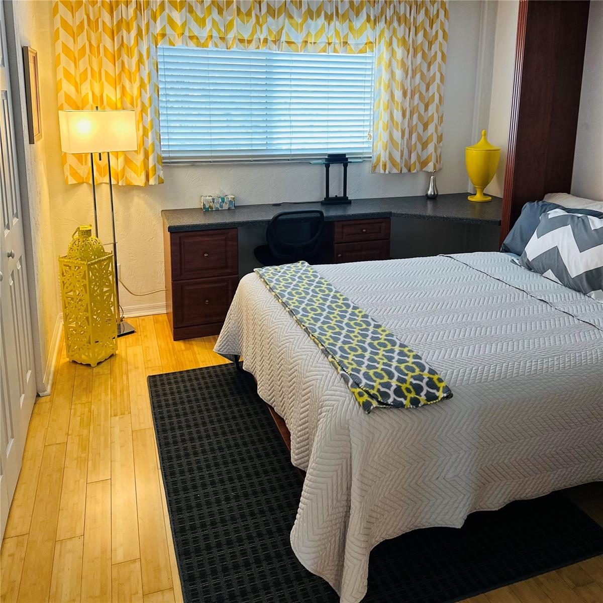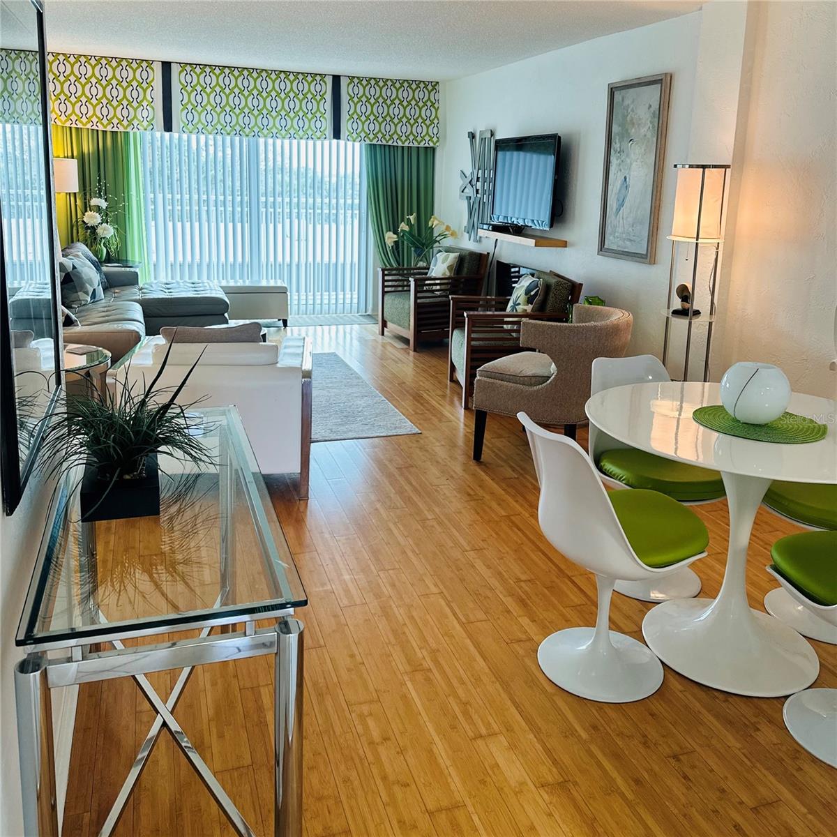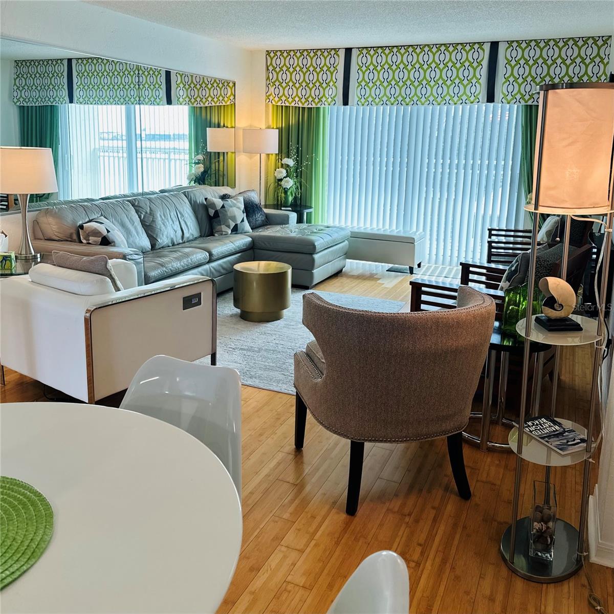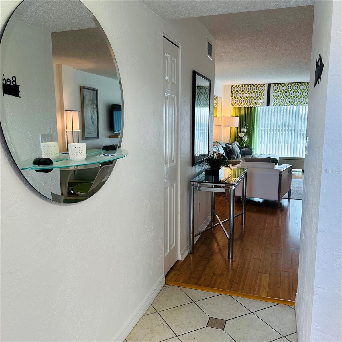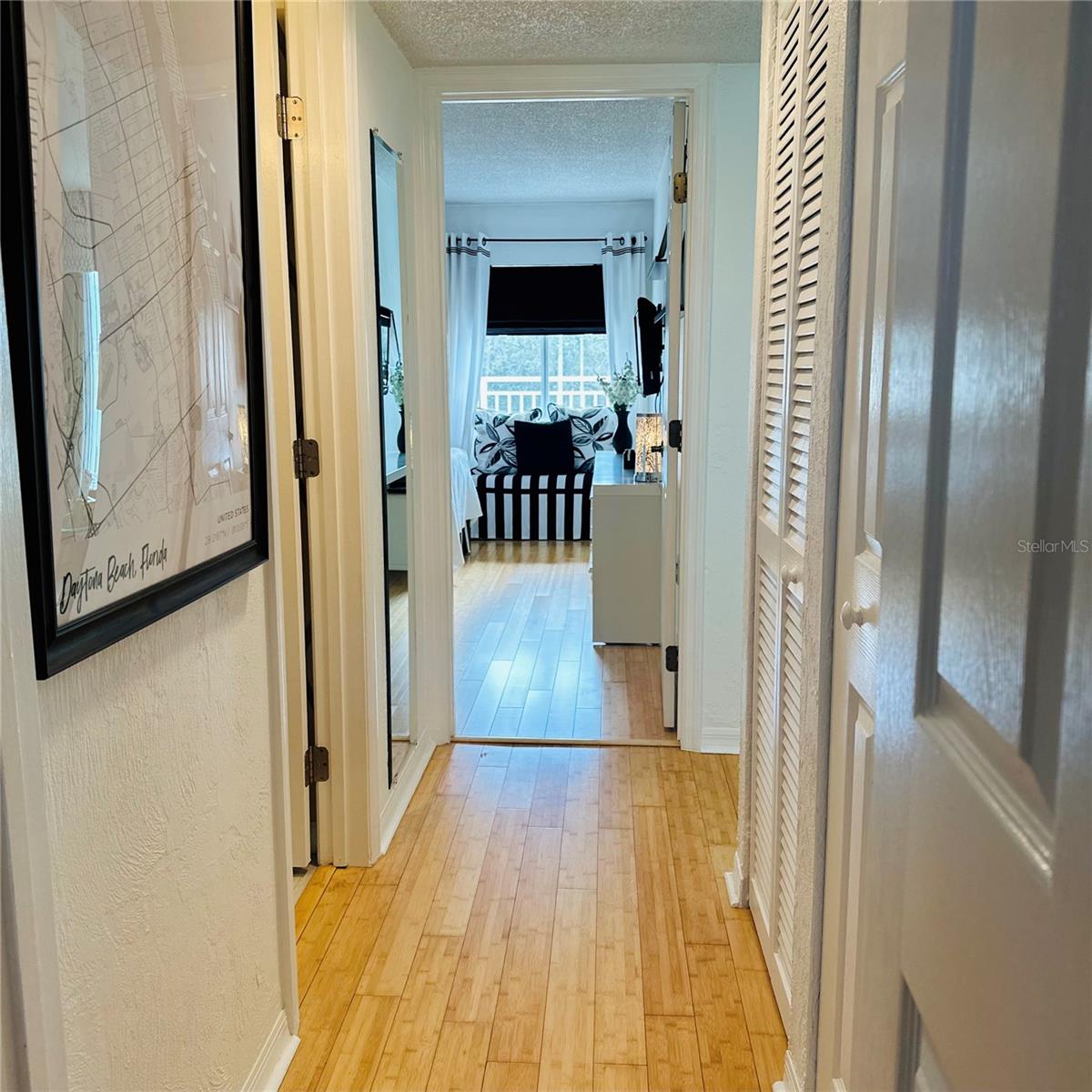Welcome to this beautifully updated 4th-floor turnkey 2 bed, 1 bath condo, where coastal charm meets modern convenience. Perched above it all, this unit captures incredible views from the slider doors to balcony, glass entry door, and every window—showcasing stunning sunrises, colorful sunsets, boat parades, rocket launches, fireworks, and views toward the “World’s Most Famous Beach” and Boardwalk. Inside, the bright and airy open layout creates the perfect space to relax or entertain. Hardwood bamboo floors add warmth and beauty to the space. The guest room includes a custom queen murphy bed and built-in office cabinetry. Thoughtful and contemporary finishes elevate the interior. The kitchen offers plenty of room to cook and gather, while a stacked washer and dryer available in unit and electric water heater provide added ease. Motivated seller has this condo beautifully decorated with furniture that is negotiable. Significant building improvements have already been completed, including a new roof, concrete restoration, refreshed pool deck, pool, seawall, and pool pump house—with all assessments have been paid in full for the new owner’s peace of mind. Whether you’re seeking a full-time residence, vacation getaway, or income-producing rental, this 4th-floor gem delivers. Enjoy the sparkling pool and hot tub, and take advantage of the close proximity to dining, shopping, and the world's most famous beach & boardwalk.