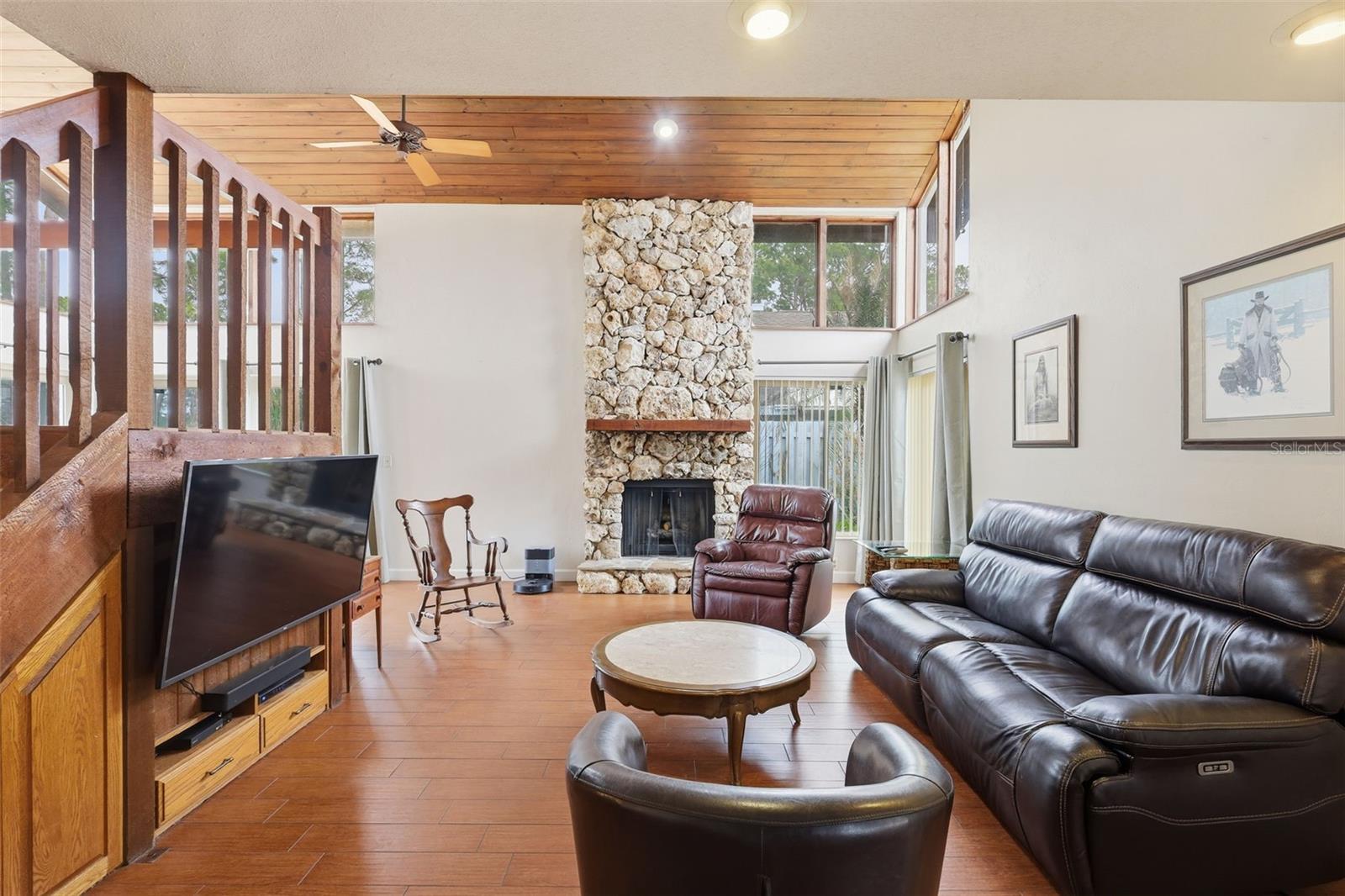 LOCATION, LOCATION, LOCATION! This spacious 4 Bedroom, 3 Bath two-story home is perfectly situated in the desirable Indigo Lakes subdivision — just 3 minutes to the Daytona International Speedway, 5 minutes to Daytona International Airport and Embry-Riddle Aeronautical University, 10 minutes to the beach, and close to I-95 and I-4 for an easy commute to Orlando or Jacksonville. Enjoy unbeatable convenience to shopping and dining, including the new Costco, Best Buy, and many popular restaurants. This well-maintained home features two Primary Suites — one upstairs and one downstairs — ideal for multi-generational living or guests. The remodeled kitchen is a chef’s dream with granite countertops, tons of cabinetry, stainless steel appliances, including a 4-door refrigerator, double oven, smooth-top range, and overhead microwave, plus a Butler’s pantry with extra counter space and storage. The bright and airy Sunroom/Dining Room overlooks the backyard and opens to the back porch — perfect for entertaining. The Living Room showcases a stunning wood-burning fireplace with floor-to-ceiling Coquina rock (currently equipped with gas logs but can be converted back to wood).Downstairs offers hurricane impact windows and sliders, wood-look ceramic tile flooring, and a private primary bath has a step-in shower. Upstairs features Green Safe bamboo flooring, three bedrooms and two full baths, including a guest bath with a jetted tub and shower. Additional highlights include: New Roof (2019) New Hot Water Heater & Electrical Panel 2-Car Garage with pull-down attic access Covered 13x10 front entry with additional storage room If you’re looking for a home that checks every box for location, comfort, entertaining, and commuting, this one truly has it all. A rare opportunity in one of Daytona’s most convenient communities! Very reasonable HOA fee includes lawn care. Golf Course is privately owned and is currently not operating.