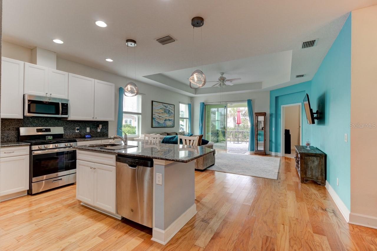 Welcome to your beautiful Caicos villa in the heart of Latitude Margaritaville! Your bright, beautiful end unit boasts LOTS of extra green space & buffered landscaping. These features, along w/the private entry & huge foyer, combine to give you a true sense of single family living--with some distance from other homes. This Caicos villa floorplan also boasts the extremely rare & unique distinction of FULL-SIZED windows in the great room, providing you with an abundance of natural light and tropical breezes. The 2 bedrooms, 2 full baths, den/flex space, & 2-car-garage offer a perfect blend of luxury, comfort, and convenience. Your chef's kitchen will make any culinary enthusiast's heart skip a beat. With a GAS STOVE, sleek, modern countertops, 42'' custom white cabinetry, Stainless Steel appliances, and a spacious kitchen island, your kitchen and dining area are perfect for preparing delicious meals and entertaining guests. The cozy den/office with French doors is ideal for those who work from home, or a quiet nook for reading & sipping a drink. The primary en-suite boasts a huge walk-in closet and a luxurious bathroom, complete with an upgraded, trendy seamless shower and glamorous listello detail. Your additional bedroom offers plenty of light and space for family or guests, ensuring everyone feels right at home. Outside your beautiful end unit, you'll find additional grassy areas, providing even more gathering areas and space. The huge, extended and screened lanai is the perfect spot to relax and enjoy the beautiful Florida sunsets and breezes, while the attached two-car garage provides convenient parking on resilient, vinyl tile flooring. Your beautiful new home is part of a resort-like community that offers an array of amenities to enhance your active 55-and-better lifestyle. Take a short walk to the world-class Margaritaville Amenities and Town Center, where you can indulge in free live music, and have access to craft and meeting rooms with a host of clubs and activities. Stay active and healthy within the state-of-the-art fitness center, pickleball, tennis, and bocce ball courts. The community also features a pottery studio, wood shop, and a Barkaritaville Dog Park & Pet Spa, ensuring every member of your family is well taken care of. Take a dip in one of the four heated pools, or soak up the sun at the private beach club, accessible via a free shuttle service. Don't miss the opportunity to own this beautiful, airy, unique and classy Caicos villa surrounded by extra green space and a vibrant community. With its extended, screened lanai and proximity to entertainment and events, this property truly offers the best of Daytona Beach area living. *Disclaimer: Information deemed to be reliable but not guaranteed, and should be independently verified.