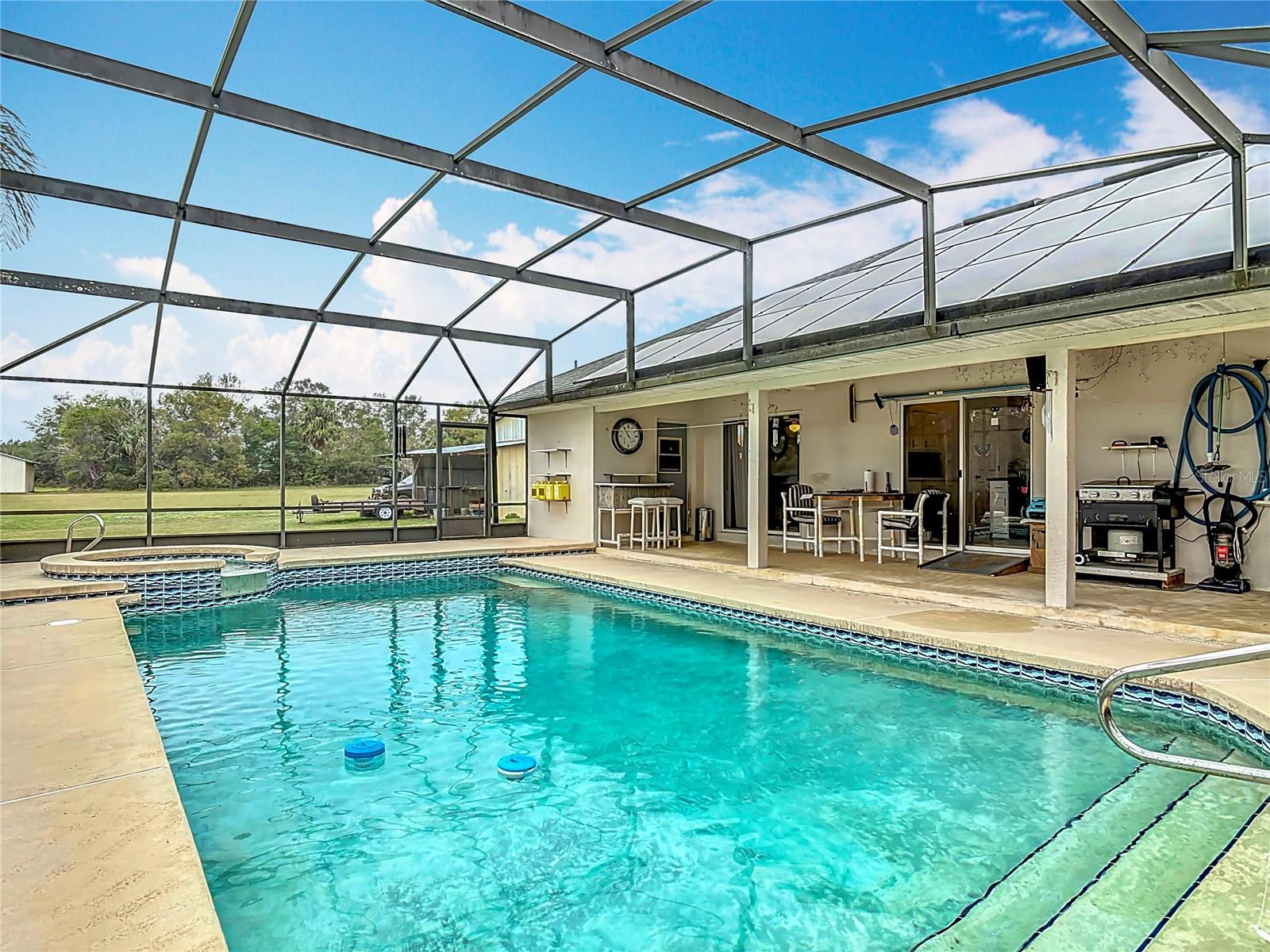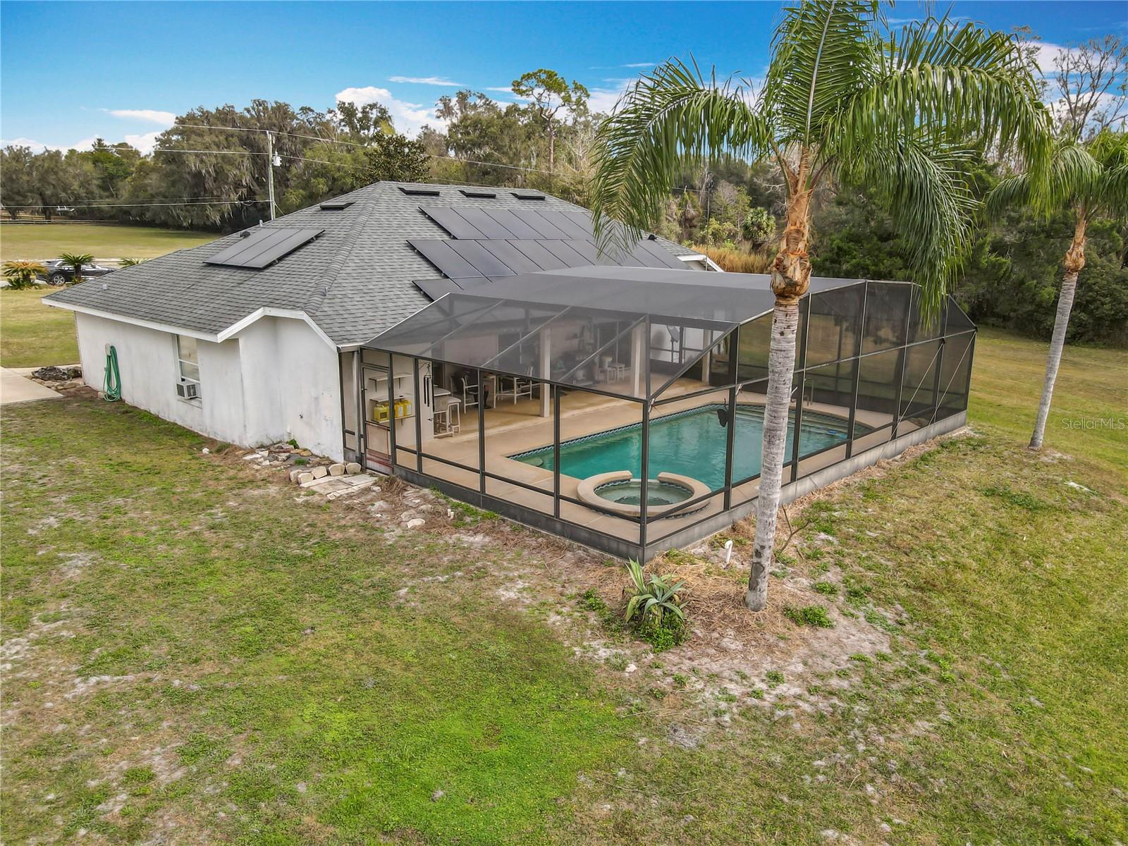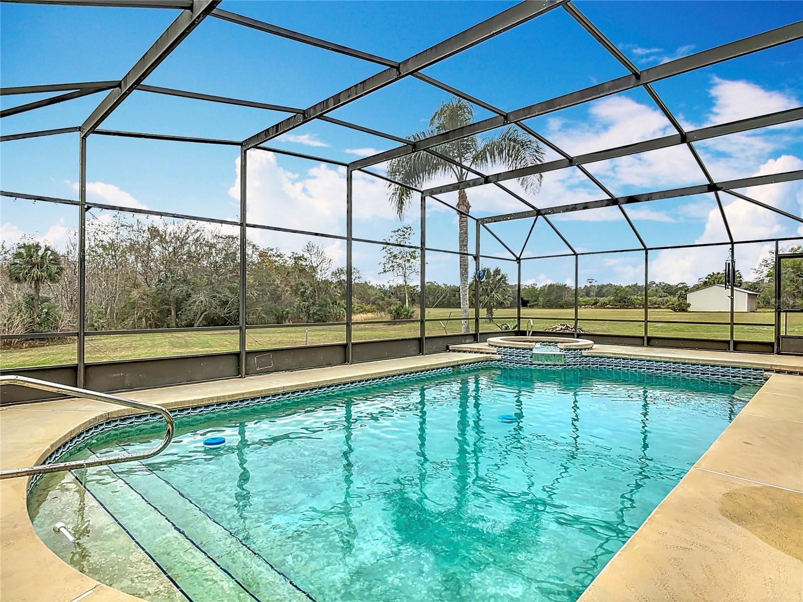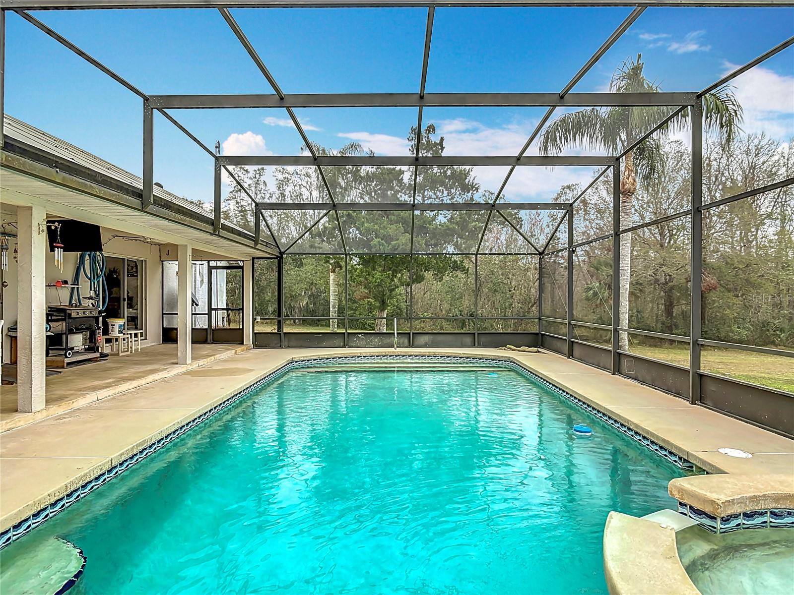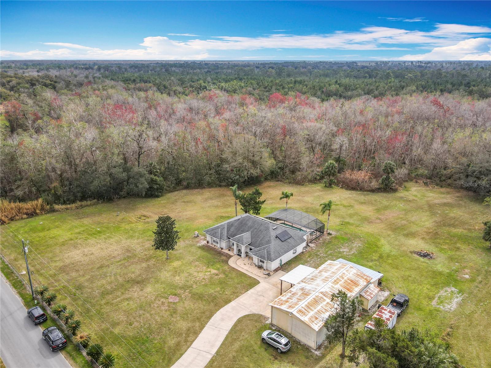Massive price reduction on this beautifully maintained 2-bed, 2-bath home set on 19.3 tranquil acres in De Leon Springs—your private oasis of cleared pastures, lush woods, scenic wetlands, and a border along Caraway Lake, just minutes from Lake Woodruff National Wildlife Refuge. Move right in and enjoy open-concept living with updated vinyl plank and carpet flooring, a 2018 roof and HVAC, fully paid solar panels, a new solar-assisted pool filtration system, private well and septic, water softener, security cameras with driveway alarm, plus a 40×20 custom metal carport perfect for RVs, boats, or a workshop. Ideal as a secluded retreat, small-scale agricultural property, or investment (possible conservation-easement tax benefits)—all offers considered; buyer to verify zoning and land use. add to mls **Possible lake access! Per the county, a small walking path or timber boardwalk to the lake may be permitted, as long as it meets environmental guidelines (e.g., no fill, under 6 ft tall, limited clearing under 500 sq ft). Buyer must verify all use and restrictions directly with Volusia County.