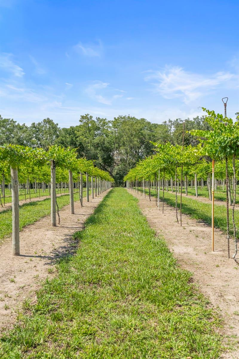 TWO PARCELS – OVER 20 ACRES – INCOME-PRODUCING GRAPE FARM WITH RESIDENCE, RETAIL SHOP & AGRICULTURAL EXEMPTION A rare opportunity to own land, residence and ESTABLISHED YOU-PICK BUSINESS AND VINYARD in De Leon Springs—1056 & 980 Reynolds Rd—offering residential comfort, active farming, and retail potential in one unique package. ----1056 REYNOLDS RD – 7.25 Acres (Set Back from Road)----: Privately tucked away from the street, this updated ranch-style home features 4 bedrooms and 4 bathrooms, including a fully FINISHED BASEMENT with two bedrooms, a bathroom, and a living room. Upstairs offers a spacious living room with high ceilings and a classic wood-burning BRICK FIREPLACE, two bedrooms, two bathrooms, kitchen, dining area, and laundry. Step outside to a wood deck overlooking a 9.5-ft deep inground POOL. The property includes multiple outbuildings—a POLE BARN, DIESEL GENERATOR, WORKSHOP, diesel generator shed—and a detached garage with its own bathroom and a finished MAN CAVE WITH BAR. The lot is oversized, level, and fully fenced, with a dedicated dog run. The house has double-pane insulated windows for energy efficiency. Built in 1973, the home has been modernized over the years while maintaining its rural charm. ----980 REYNOLDS RD – 13.18 Acres (Frontage on Reynolds Rd)----: Positioned with direct street frontage, this parcel operates as the public-facing side of the grape farm, complete with a nostalgic retail and tasting shop where customers can check out after picking grapes, and enjoy home-made grape jelly and popsicles. A large pole barn, workshop, and carport provide ample storage and workspace. Approximately five acres are fenced and used for cattle, supporting the agricultural exemption. The entire lot is high and dry (not in a flood zone) and fully fenced for security. COMBINED PROPERTY FEATURES: ** Total of 20.43 acres (7.25 + 13.18) ** Two parcels sold together—live on one, operate on the other ** Fully fenced, gated, and agriculturally exempt ** Updated 4BR/4BA home with pool, fireplace, and basement ** Income-producing grape farm with retail/tasting operation ** Multiple barns, sheds, workshops, and storage buildings ** Private living with road-front visibility for business ** Zoned for agricultural use and farm animals and hobby farming This is a versatile and truly special offering—ideal for anyone seeking space, privacy, and business potential in a peaceful rural setting.