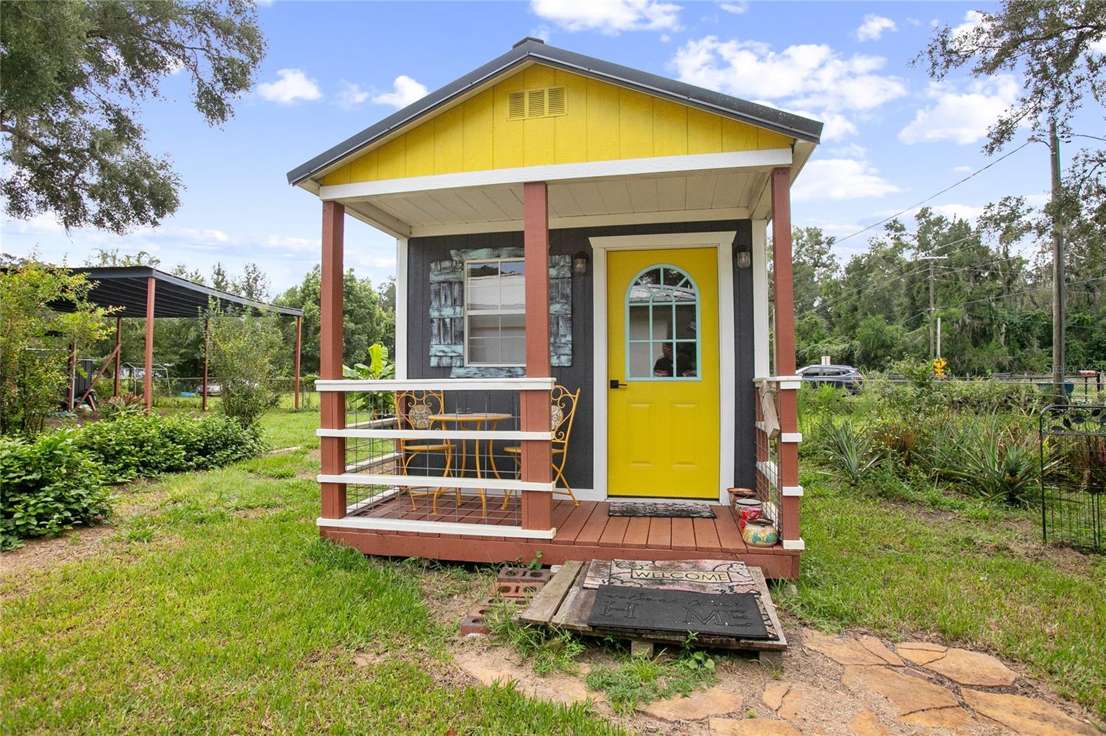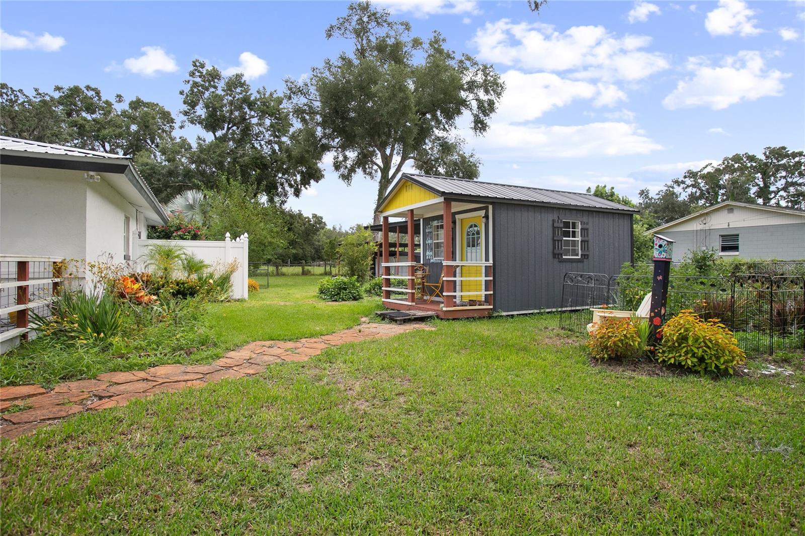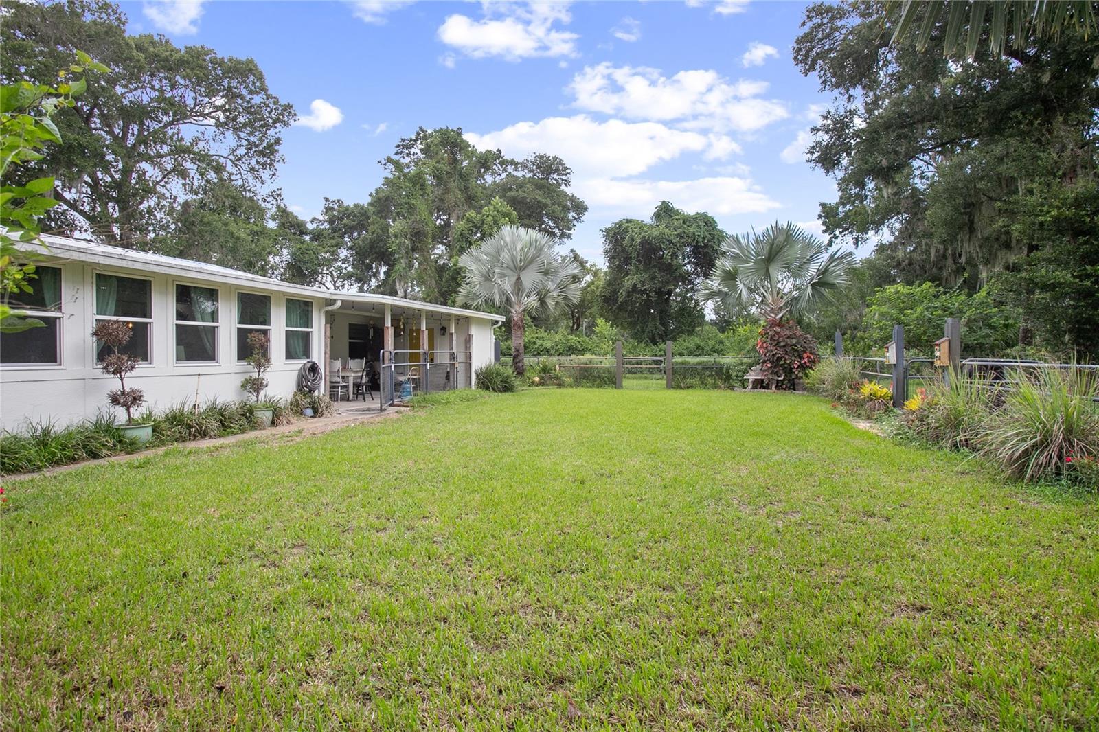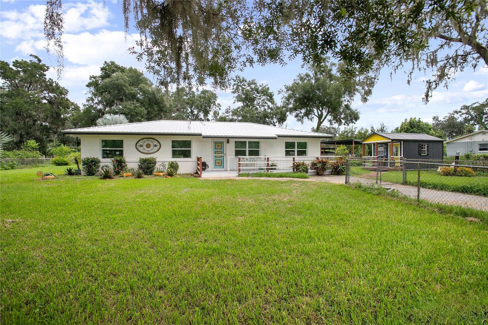 Welcome to your peaceful country escape! This beautifully remodeled 3-bedroom, 3-bathroom farmhouse blends classic charm with modern comforts on just under three-quarters of an acre. Step inside to find a warm and open layout, featuring updated finishes throughout and a cozy bonus room/den, and two master suites. The fully fenced yard offers plenty of room to roam, garden, or simply enjoy the outdoors. You'll also find a detached carport with extra storage space, plus a versatile studio complete with working plumbing and a window unit for A/C—great as a guest space, art studio, or workshop. Whether you're entertaining, relaxing, or working from home, this move-in-ready home offers the ideal balance of privacy, comfort, and style. The entire house went under a full rehab in 2021. Some improvements are new Carrier AC and handler, All new duct work in attic, New Blossman Wifi Propane Tank, New gas A/O Water Heater, all new ZLine and LG kitchen appliances, 14 new impact windows with some being tinted and having remote window shades, new water softener system, all new electrical outlets and toggles throughout, all new drywall throughout, ceilings re-textured and painted, new Barnwood flooring, all new baseboards, complete re-pipe, exterior hookup for a generator, 50 amp hookup in carport with RV parking, top of the line ceramic and tile in the bathrooms, new power flush toilets, new glass enclosures for showers, a new custom tub, specialty faucets and cabinets in all bathrooms, rain shower heads in all bathrooms, completely new gourmet kitchen with custom cabinets with glass panel doors and copper handles, new hammered copper sink, new garbage disposal, Edgestart Beverage/Wine Fridge, recessed lighting throughout, new LED ceiling light/fan fixtures. As an added bonus there is a " Tiny House" that has been drywalled, textured and painted, has a cedar wall, electrical, plumbing, and AC!! Exterior has a complete irrigation system with drip lines, a metal perimeter fence, a vinyl privacy fence, a goat fence, lighting at base of fence line, all exterior lighting replaced, all wood/ decks are made with pressure treated wood, new SOD, 6 inch raised flower beds, pineapples, Rose Tree, Agave, Palms, Rosemary, 2 Mulberry Trees and 2 Pomegranate Trees. *All info to be verified by buyer(s)*