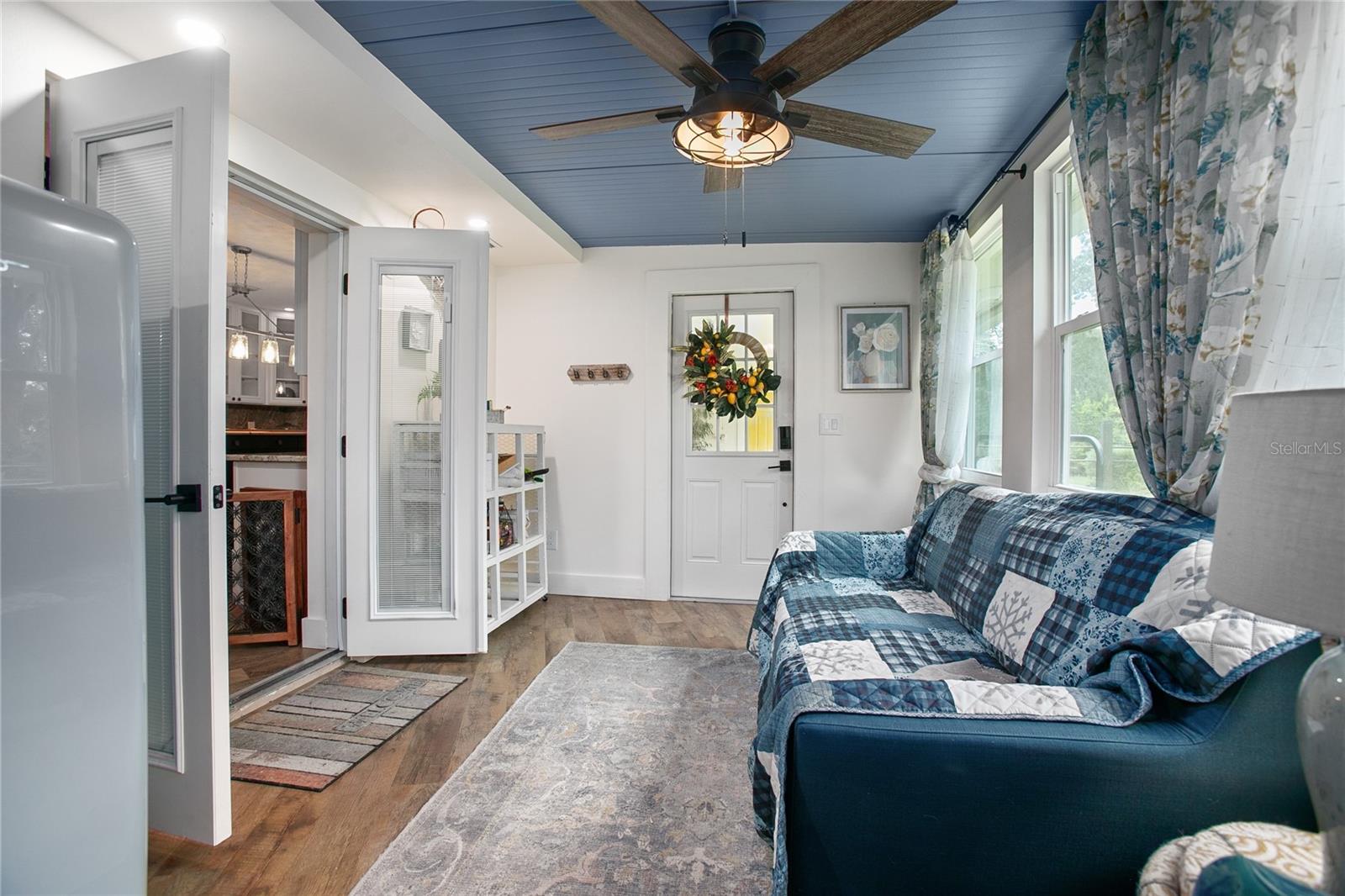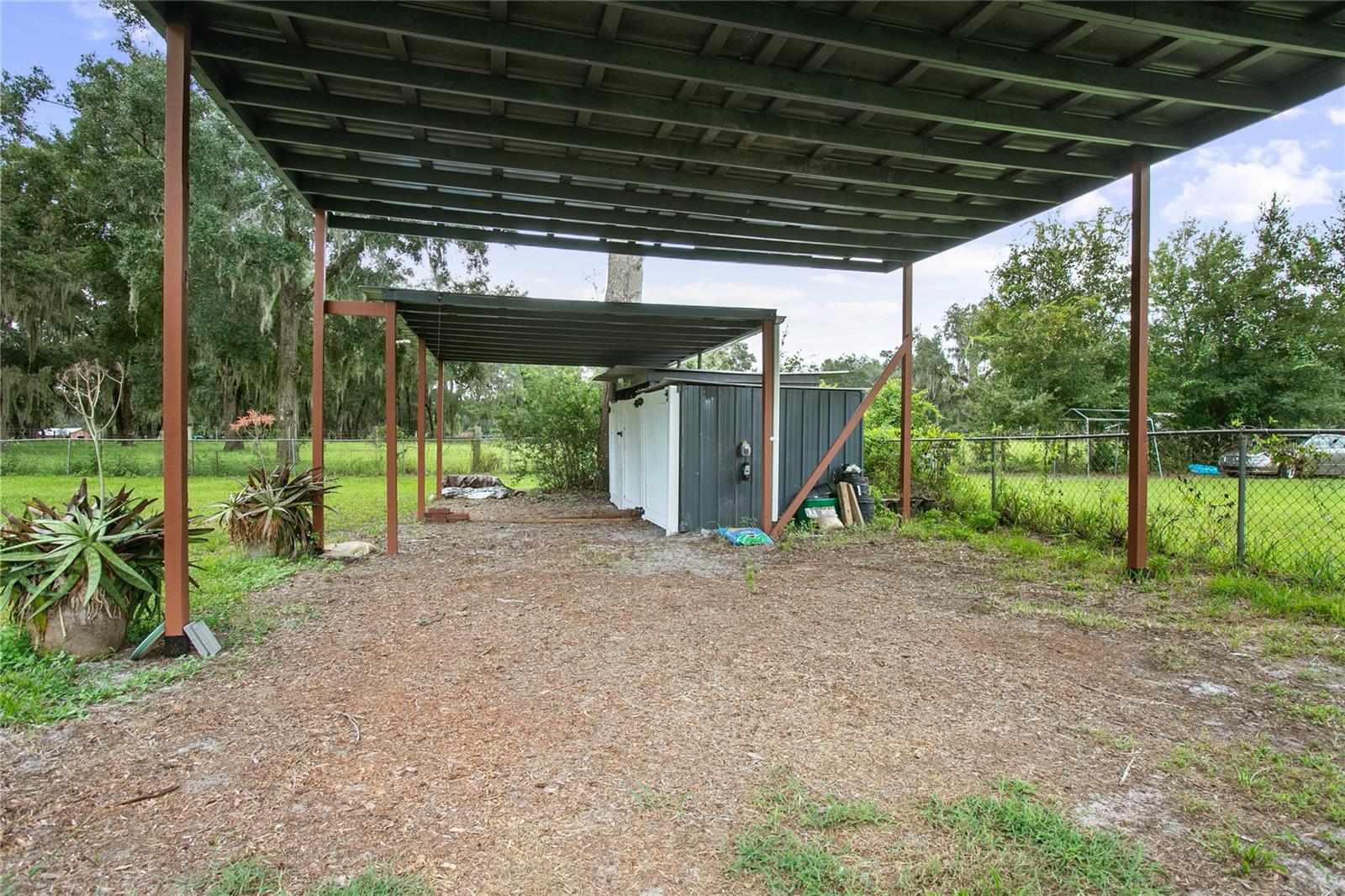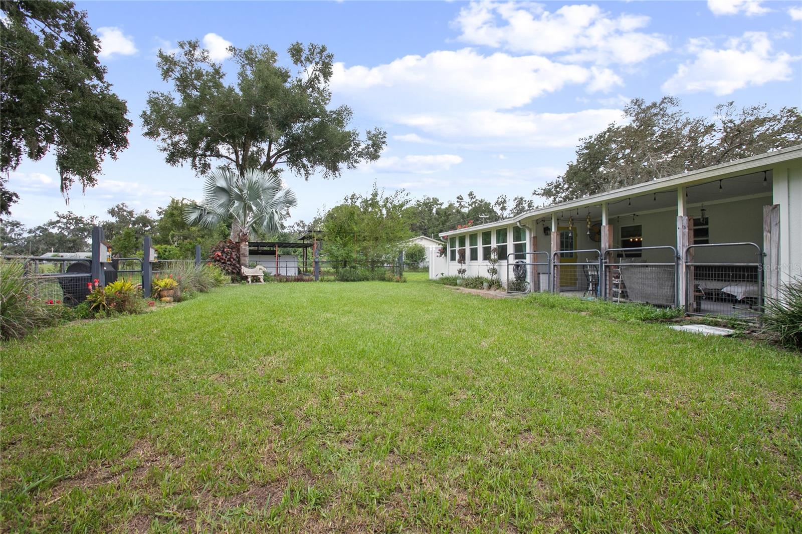 Welcome to your peaceful country escape! This beautifully remodeled 3-bedroom, 3-bathroom farmhouse blends classic charm with modern comforts on just under three-quarters of an acre. Step inside to find a warm and open layout, featuring updated finishes throughout and a cozy bonus room/den, and two master suites. The fully fenced yard offers plenty of room to roam, garden, or simply enjoy the outdoors. You'll also find a detached carport with extra storage space, plus a versatile studio complete with working plumbing and a window unit for A/C—great as a guest space, art studio, or workshop. Whether you're entertaining, relaxing, or working from home, this move-in-ready home offers the ideal balance of privacy, comfort, and style. The entire house went under a full rehab in 2021. Some improvements are new Carrier AC and handler, All new duct work in attic, New Blossman Wifi Propane Tank, New gas A/O Water Heater, all new ZLine and LG kitchen appliances, 14 new impact windows with some being tinted and having remote window shades, new water softener system, all new electrical outlets and toggles throughout, all new drywall throughout, ceilings re-textured and painted, new Barnwood flooring, all new baseboards, complete re-pipe, exterior hookup for a generator, 50 amp hookup in carport with RV parking, top of the line ceramic and tile in the bathrooms, new power flush toilets, new glass enclosures for showers, a new custom tub, specialty faucets and cabinets in all bathrooms, rain shower heads in all bathrooms, completely new gourmet kitchen with custom cabinets with glass panel doors and copper handles, new hammered copper sink, new garbage disposal, Edgestart Beverage/Wine Fridge, recessed lighting throughout, new LED ceiling light/fan fixtures. As an added bonus there is a " Tiny House" that has been drywalled, textured and painted, has a cedar wall, electrical, plumbing, and AC!! Exterior has a complete irrigation system with drip lines, a metal perimeter fence, a vinyl privacy fence, a goat fence, lighting at base of fence line, all exterior lighting replaced, all wood/ decks are made with pressure treated wood, new SOD, 6 inch raised flower beds, pineapples, Rose Tree, Agave, Palms, Rosemary, 2 Mulberry Trees and 2 Pomegranate Trees. *All info to be verified by buyer(s)*