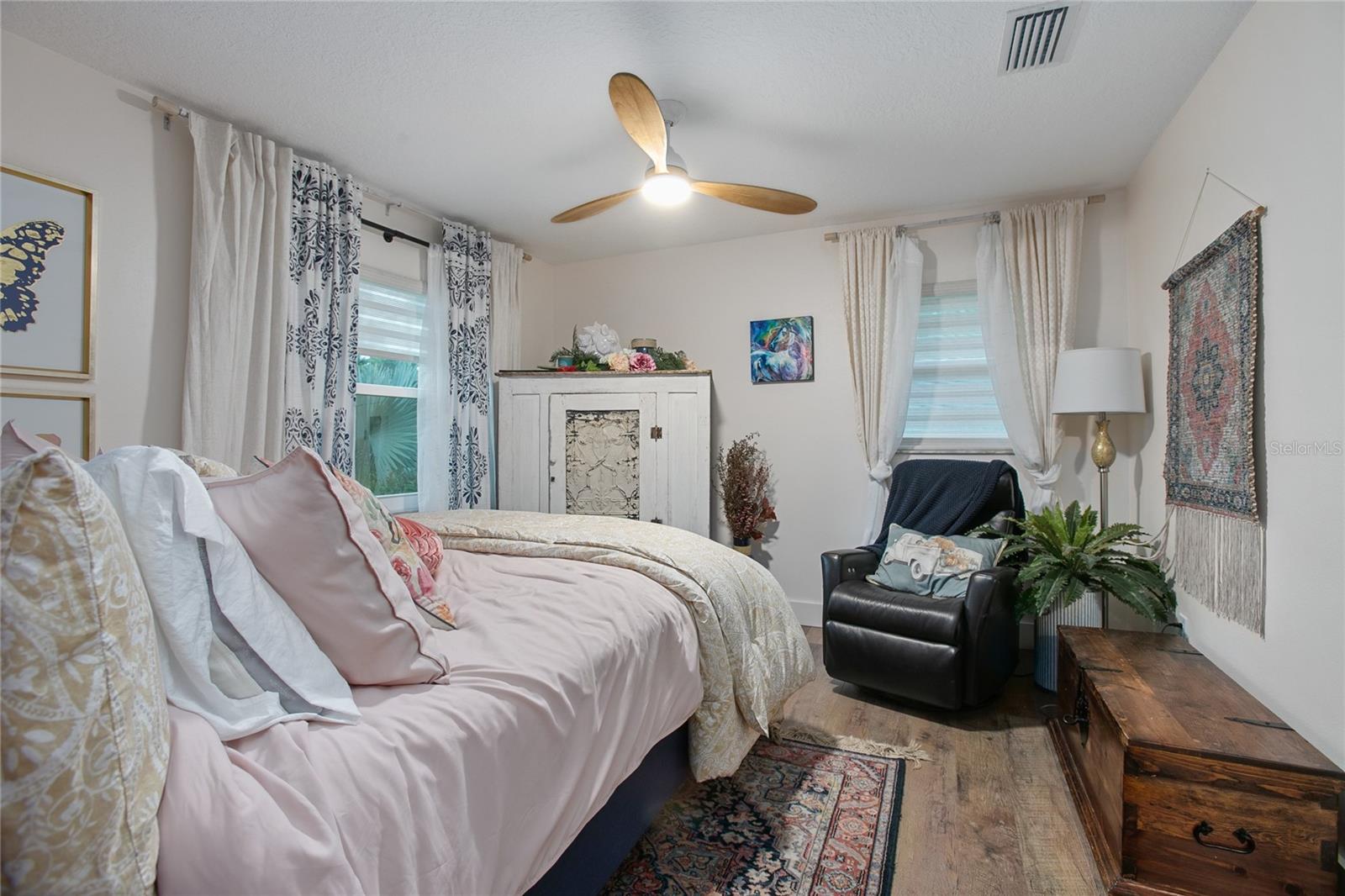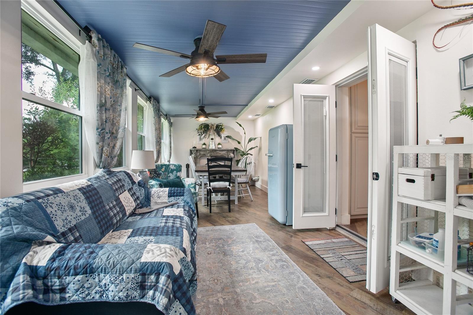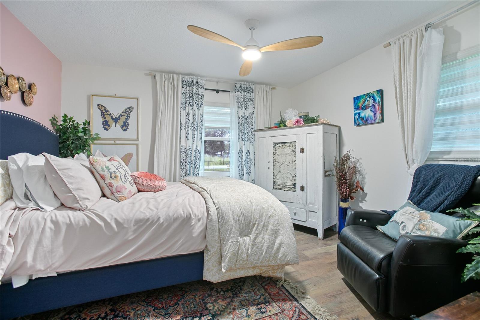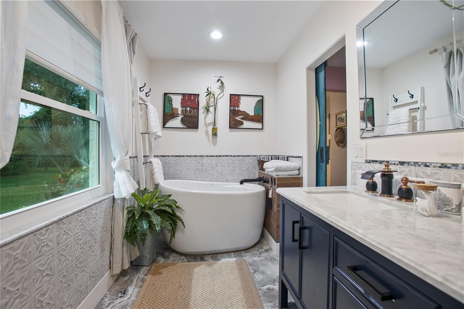 Welcome to your peaceful country escape! This beautifully remodeled 3-bedroom, 3-bathroom farmhouse blends classic charm with modern comforts on just under three-quarters of an acre. Step inside to find a warm and open layout, featuring updated finishes throughout and a cozy bonus room/den, and two master suites. The fully fenced yard offers plenty of room to roam, garden, or simply enjoy the outdoors. You'll also find a detached carport with extra storage space, plus a versatile studio complete with working plumbing and a window unit for A/C—great as a guest space, art studio, or workshop. Whether you're entertaining, relaxing, or working from home, this move-in-ready home offers the ideal balance of privacy, comfort, and style. The entire house went under a full rehab in 2021. Some improvements are new Carrier AC and handler, All new duct work in attic, New Blossman Wifi Propane Tank, New gas A/O Water Heater, all new ZLine and LG kitchen appliances, 14 new impact windows with some being tinted and having remote window shades, new water softener system, all new electrical outlets and toggles throughout, all new drywall throughout, ceilings re-textured and painted, new Barnwood flooring, all new baseboards, complete re-pipe, exterior hookup for a generator, 50 amp hookup in carport with RV parking, top of the line ceramic and tile in the bathrooms, new power flush toilets, new glass enclosures for showers, a new custom tub, specialty faucets and cabinets in all bathrooms, rain shower heads in all bathrooms, completely new gourmet kitchen with custom cabinets with glass panel doors and copper handles, new hammered copper sink, new garbage disposal, Edgestart Beverage/Wine Fridge, recessed lighting throughout, new LED ceiling light/fan fixtures. As an added bonus there is a " Tiny House" that has been drywalled, textured and painted, has a cedar wall, electrical, plumbing, and AC!! Exterior has a complete irrigation system with drip lines, a metal perimeter fence, a vinyl privacy fence, a goat fence, lighting at base of fence line, all exterior lighting replaced, all wood/ decks are made with pressure treated wood, new SOD, 6 inch raised flower beds, pineapples, Rose Tree, Agave, Palms, Rosemary, 2 Mulberry Trees and 2 Pomegranate Trees. *All info to be verified by buyer(s)*