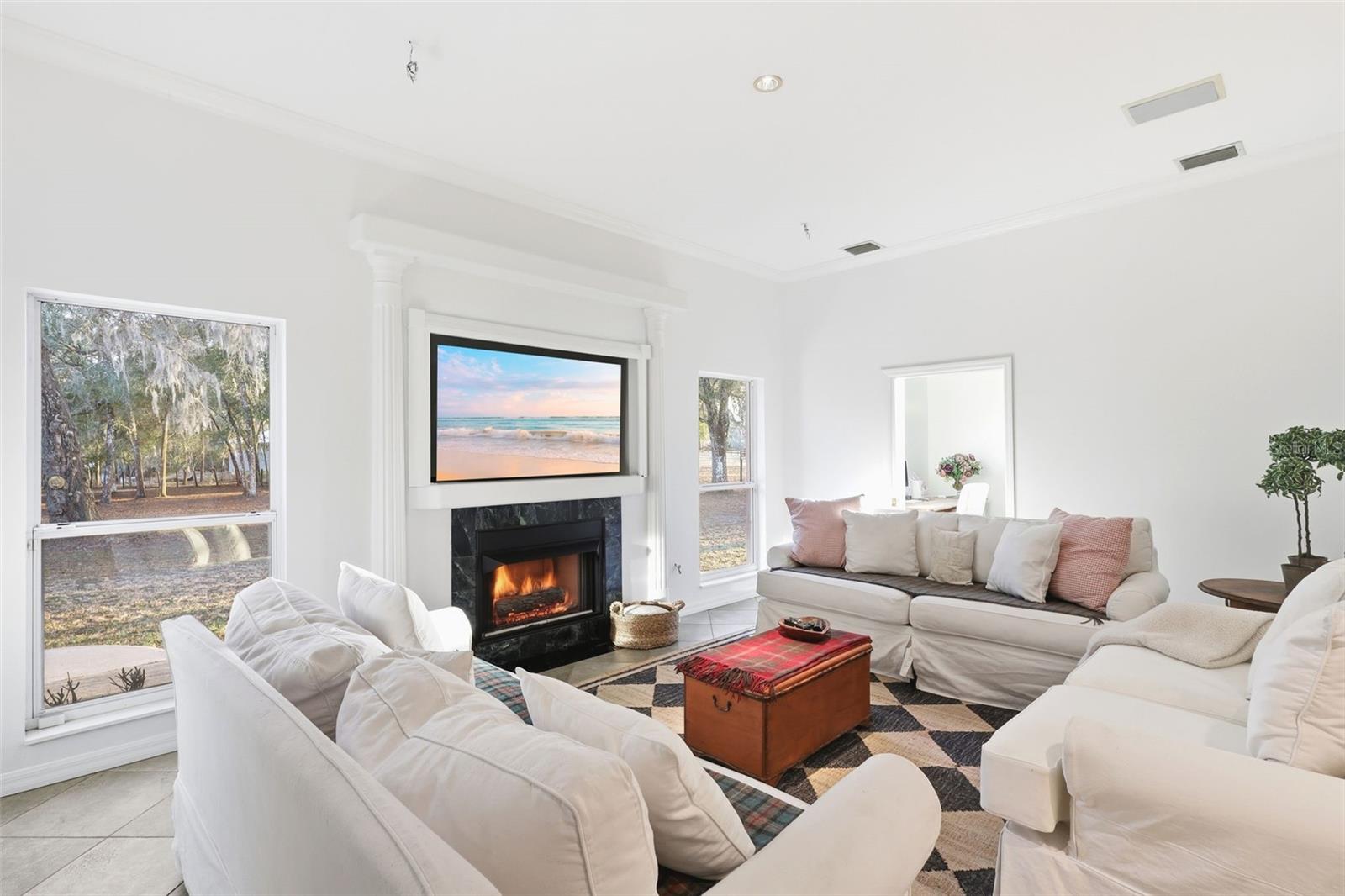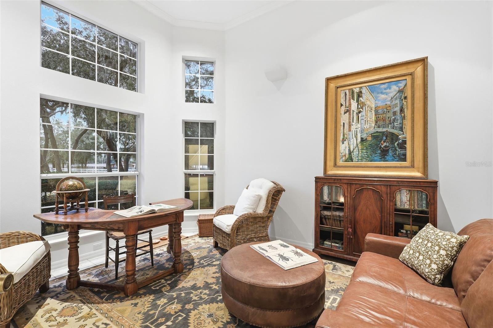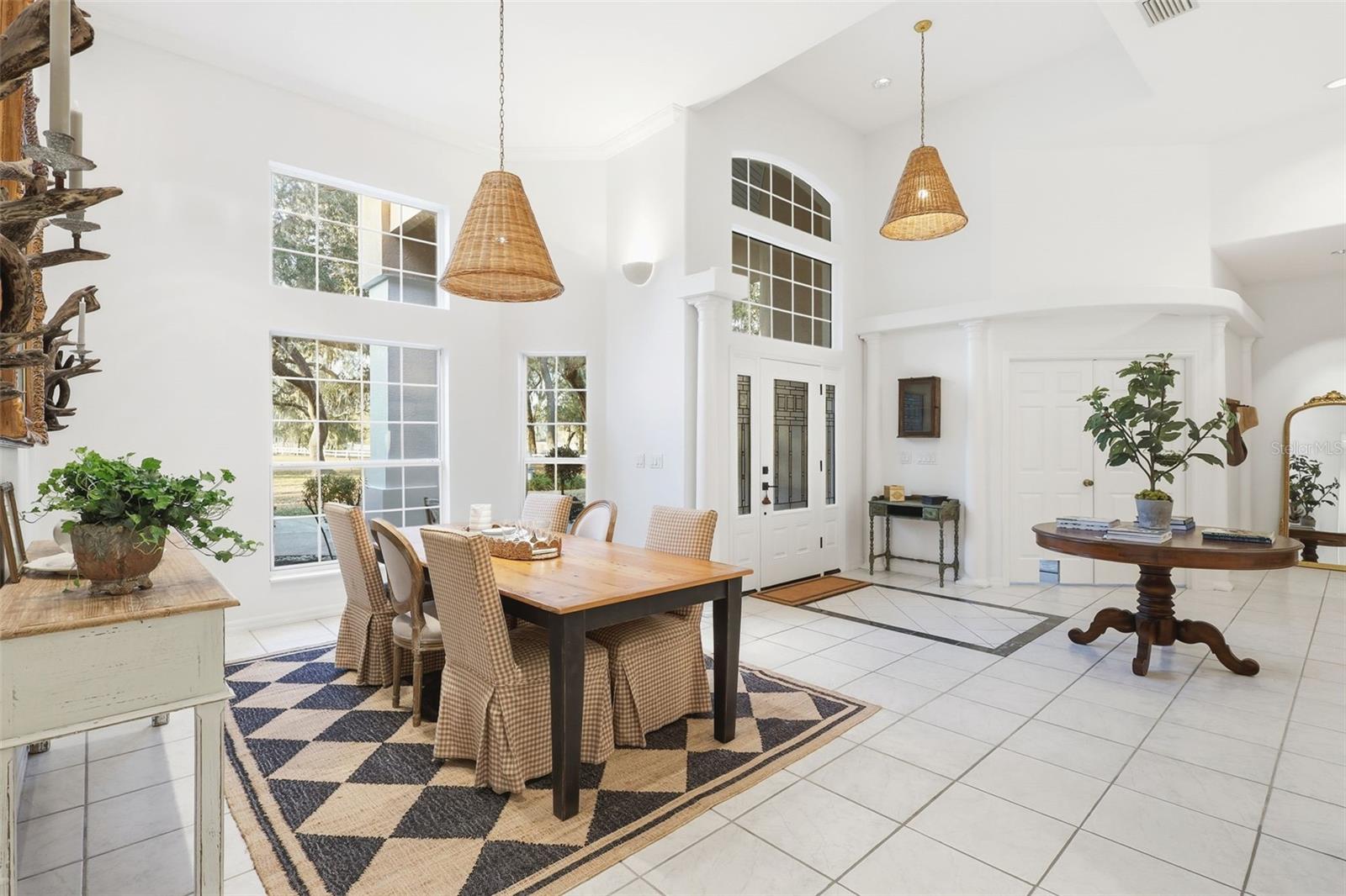 Prepare to be impressed by this custom-built lakefront retreat set on 5 oak-studded acres with peaceful views across private Lake Clifton. With 3,364 square feet of heated living space, this home offers 4 bedrooms, 3 full baths, a dedicated office, and a generous bonus room that could easily become additional bedrooms. The bonus room was even pre-plumbed for a future full bath, making it ideal for creating a true guest suite. Inside, the layout is bright and open with a desirable split-bedroom plan and dramatic ceiling heights ranging from 9’10” to 23’ in the foyer. Tile flooring runs throughout the main level, while wood plank flooring adds warmth upstairs. The kitchen overlooks the great room, where a gas fireplace anchors the space—perfect for gathering, entertaining, and everyday living. Relaxation is built in: one bathroom includes a cedar-lined sauna for four, accessible from the bath or the back porch. Enjoy Florida living year-round with a 14x21 screened porch, plus an upstairs balcony with sliding doors and gorgeous lake views. The primary suite is designed for comfort and practicality with spacious walk-in closets, including one constructed as a safe room with concrete block walls, reinforced ceiling, and a steel door. Outside, you will appreciate the true 3-car side-entry garage with three separate doors, abundant parking, and a paved driveway leading all the way to the street. Major updates bring peace of mind, including a newer architectural shingle roof, two replaced water heaters, and a new septic drain field within the last three years. Additional features include an emergency generator transfer switch, whole-house vacuum, 4-inch well with water treatment, and hurricane shutters stored in a 10x12 detached shed. Follow the path to the water and you will find a 60-foot dock with a 16x10 deck at the end—ready for sunrise coffee, fishing, or an afternoon on the lake. Lake Clifton is approximately 77 acres, and skiing is allowed, giving you the rare combination of privacy and true lake lifestyle. Located in highly desirable DeLeon Springs, this property is just minutes to De Leon Springs State Park, Lake Woodruff National Wildlife Refuge, Downtown DeLand, shopping, dining, and medical facilities. You are also close to the scenic Spring-to-Spring Trail corridor.