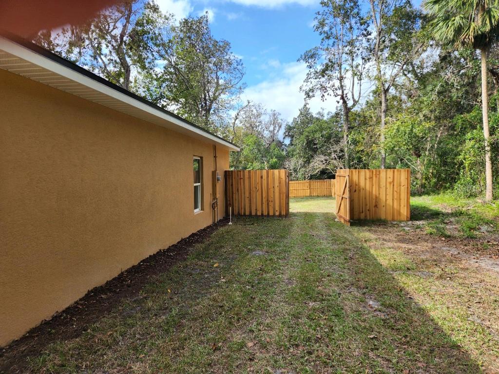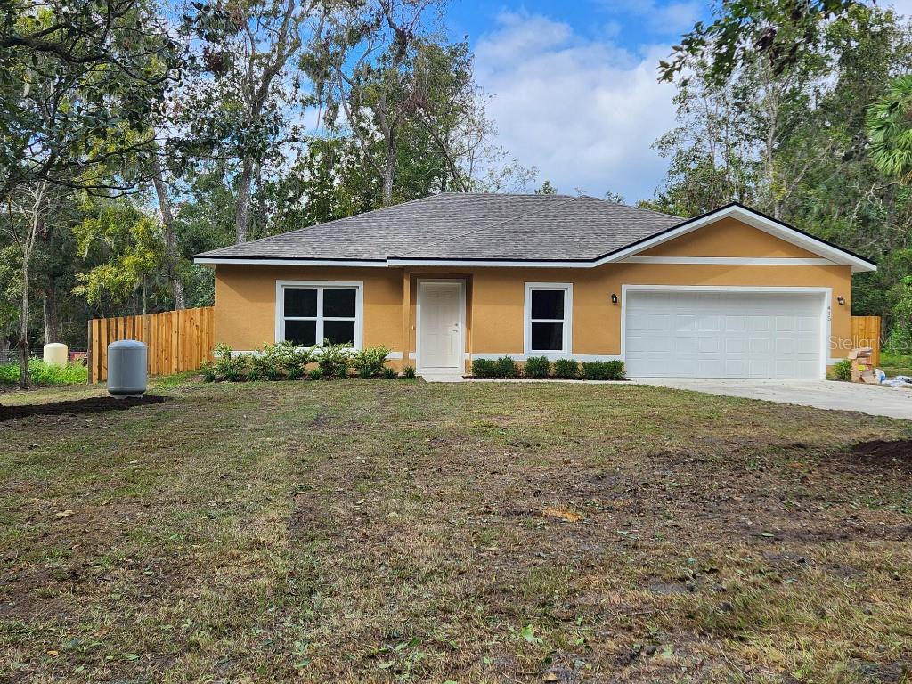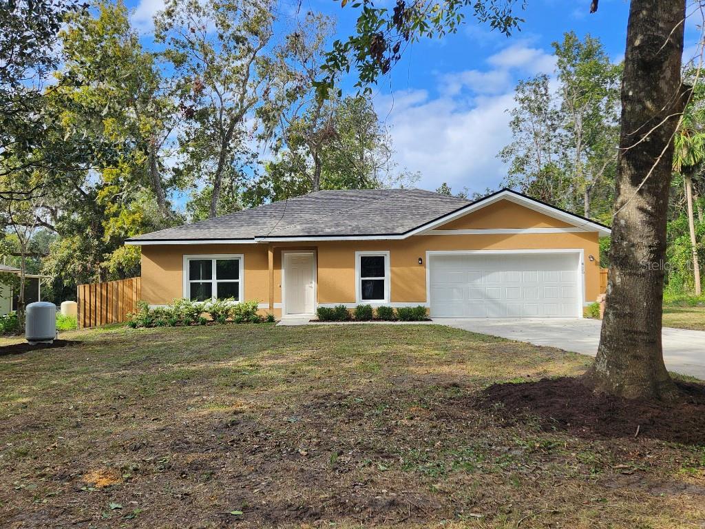 Under Construction. The Ellie Model: 4 bedrooms, 3-FULL bathrooms, 2-car garage. with 1/2- acre lot size and fully privacy 6-foot ht. back yard. Located 2 mins from the famous DeLeon Springs States park, and Chuck Lennon Park. This home is exceptional value, with the separate living mother-in-law suite totally private with its own access door in the rear of the home and direct access to the garage. It has its full walk-in shower and full bathroom. High flat ceiling throughout the home. The Owners suite boost a large bathroom with extra-large shower and double sink. The open living room and kitchen allowing you to be a part of all the gatherings. The kitchen has two areas of pantry one large dbl. doors and a separate open shelving for small appliances and can good or dry food. The utility room is just off the kitchen area with cabinet and countertop space stackable regular washer and dryer space. The other two bedrooms are close accessible to the third full tub/shower room. Each bedroom is large and large closets. This all-block home with full two garage and. Well and septic system without paying the cost of water bills and sewer charge anymore. Specs in Home: * Countertops: 3 CM Granite countertops in kitchen and bathrooms. * Appliance: Stainless Steel Fridge, Range, Microwave, Dishwasher. * Semi-gloss in all bathrooms, Kitchen, and utility rooms. Cleanable Egg shell all others. * Merillat Cabinet 36" uppers Mcdurmon Collins Birch Twilight. * 5-1/4" Wood base throughout home. * Six panel Masonite Interior doors with mostly by-pass closet doors. * Flooring: All vinyl plank flooring throughout entire home. * Mini Pendent Lights over countertop prewired. * 1 wireless remote Garage and 1 wired switch. * Lennox 15 Seer 2.5 Ton system with WIFI Thermostat. * Moen Chrome fixtures all throughout the home. * Insulated Windows tilt outs Low E on all windows. * Architecture 35-year Asphalt Shingles (Weatherwood). * Kwikset Door handles (Delta). * 50-Gal large cap. Hot Water Heater. * 12 x 12 ceramic tile Shower walls in showers and 2" x 2" Tile on floor pan. * Back Yard 6-0" board on board fencing with large gate access.