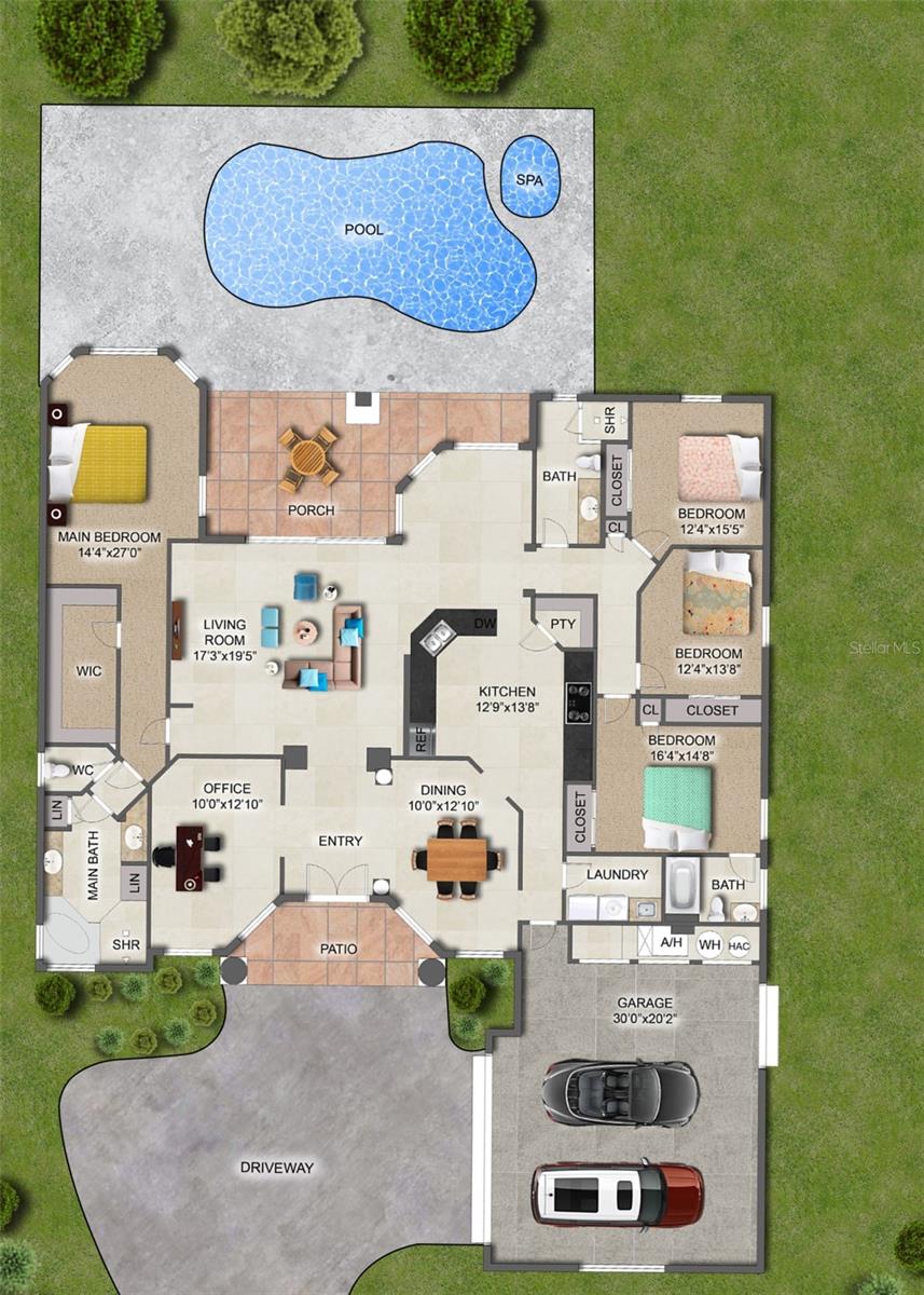 Luxury, Location & a Sunset View to Remember! Dreaming of watching the sun set over the water from your own backyard? This is the one. Located on a serene half-acre lot in the gated community of Hampton Hills Estates. This impeccably maintained 4-bedroom, 3-bath pool home with a side-entry garage and golf cart bay offers refined living at its best—with a stunning pond view that sets the scene for true Florida living. Step through gorgeous updated double entry doors into a grand 14-foot foyer adorned with triple crown molding, 12-foot ceilings, and custom tile flooring throughout the main living areas and baths. Dedicated home office with built-in’s provides a perfect work-from-home location. Plantation shutters grace the windows, adding timeless elegance and privacy. The heart of the home is the beautifully appointed kitchen featuring custom cabinetry, granite countertops, a raised dishwasher, built-in oven, new refrigerator, electric cooktop, and a spacious walk-in pantry. The cozy dinette offers breathtaking views of the tranquil pond—your perfect morning coffee spot. The expansive great room showcases updated triple sliding doors, custom room-darkening drapes, and a built-in surround sound system—ideal for immersive movie nights or entertaining in style. The luxurious master suite wing includes an oversized custom walk-in closet and a spa-inspired bath with a jetted soaking tub and hydro-jet walk-in shower. The other three generous bedrooms all have custom closet systems. Step outside to your personal oasis: an extra-deep covered lanai, an easy-care epoxy finished pool deck, a resurfaced saltwater pool with solar heating, and an app-controlled spa heater for year-round relaxation. The updated wet bar makes outdoor entertaining effortless. Every detail has been thoughtfully updated: 2021 roof and gutters, 2018 HVAC system with 3-stage zoned controls, wireless thermostats, UV light & ozone filtration, Ring doorbell, ceiling surround sound, and epoxy finished garage floor with updated door opener, new irrigation controller manages the beautifully refreshed landscaping package for curb appeal that pops! Set at the end of a quiet cul-de-sac, in gated Hampton Hills Estates is part of the Debary Country Club master-planned community which offers nightly security patrols, video surveillance, and walkable sidewalks throughout. Conveniently located near I-4, shopping, schools, medical centers, the SunRail station, golf cart friendly DeBary and the Spring-to-Spring Trail—you’ll have everything you need just minutes away. This home is loaded with professional-grade updates, premium features, and a lifestyle that’s hard to match. Homes like this don't last—schedule your private showing today before it’s gone!