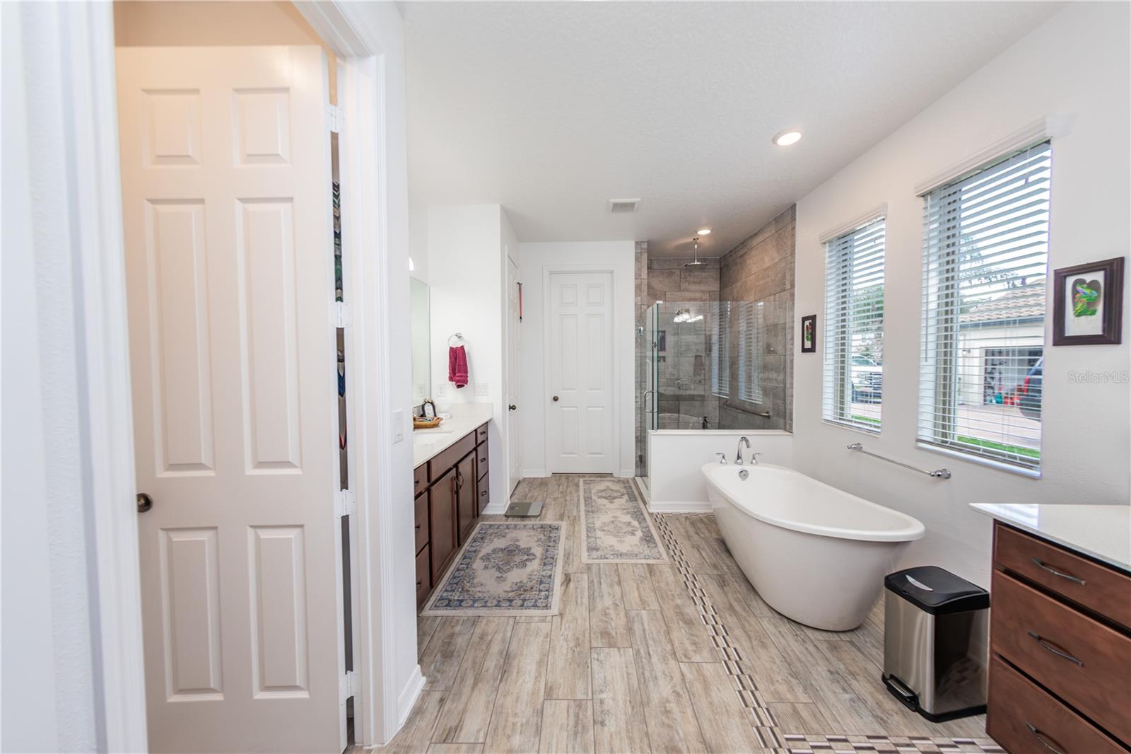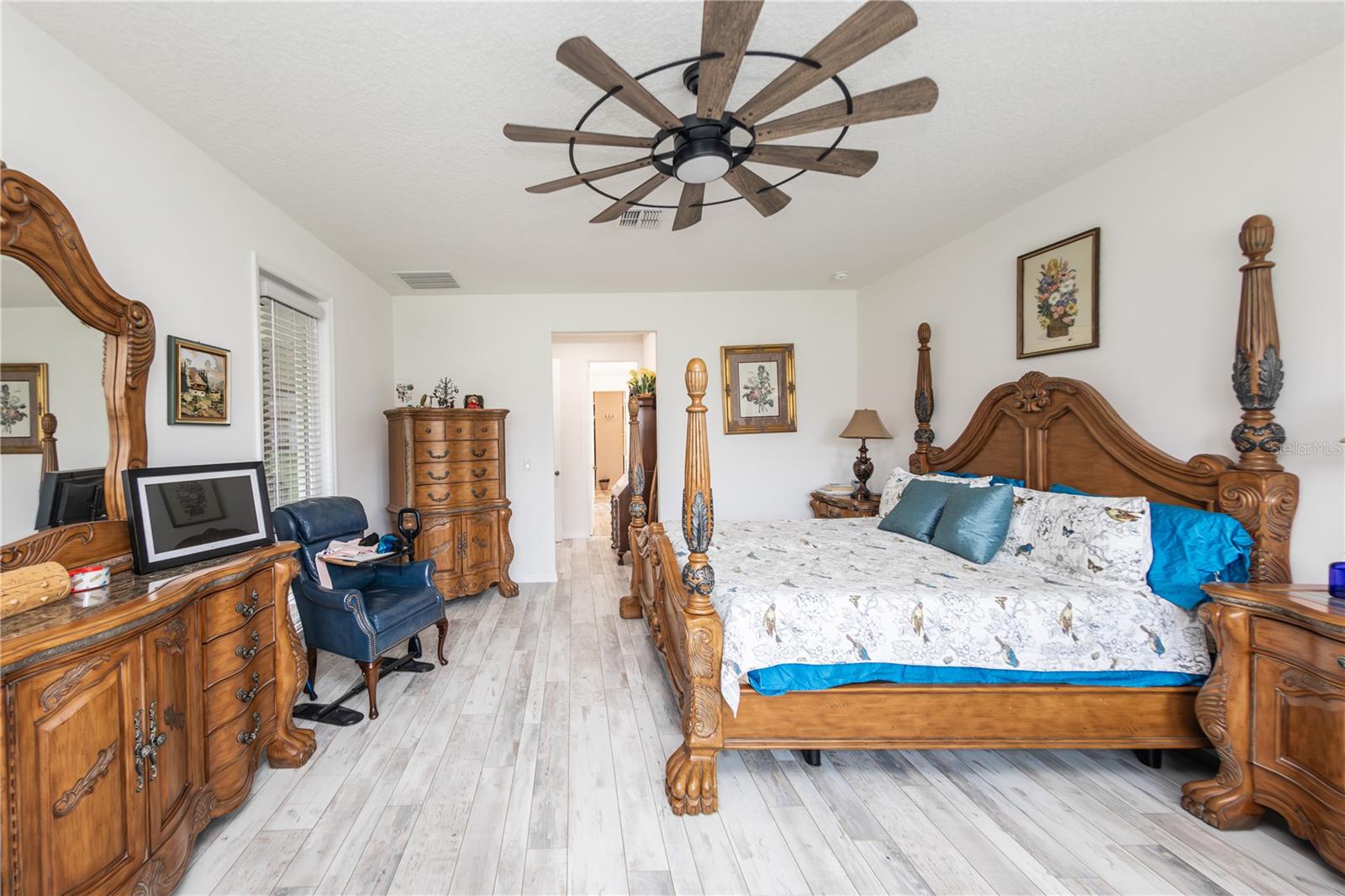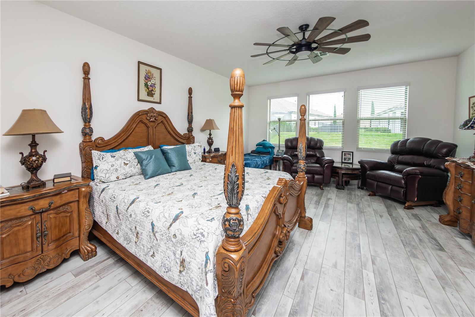 Impeccably maintained and thoughtfully upgraded, this 4-bedroom PLUS office/flex room, 3-bath, single-story home is tucked inside the highly sought-after gated community of Riviera Bella! Step inside to find open living spaces enhanced by wood-look ceramic tile flooring, with upgraded water-resistant laminate in all bedrooms. The gourmet kitchen is a true centerpiece, featuring 42” nutmeg cabinets with crown molding, glass accents, and a built-in wine rack. A double wall oven, gas range, and oversized island make it perfect for both everyday cooking and entertaining. The spacious owner’s suite offers fresh paint, abundant natural light, private patio access, and a spa-inspired bath with dual quartz vanities, two walk-in closets, a free-standing soaking tub, and a luxurious walk-in shower with a rain showerhead. Two bedrooms share a Jack-and-Jill bath with quartz dual vanities, while the fourth bedroom enjoys its own upgraded full bath that also functions as a future pool bath. Additional highlights include sliders opening to the covered patio with NEW electric curtains, interior laundry room with utility sink & cabinetry, drop zone with extra storage, nearly 900 sq. ft. 3-car garage with climate-controlled office & 220V outlet, NEW ceiling fans throughout. Exterior features are equally impressive, with a full gutter system & French drains, water softener, soffit outlets, paver driveway and walkway, fully fenced backyard, gas pre-plumb for summer kitchen, and dedicated irrigation well. Community amenities include 24-hour virtual guard security, resort-style pool, clubhouse with media and fitness center, playgrounds, splash pad, trails, and private boat ramp access to the St. John’s River. Conveniently located near the SunRail station with quick access to I-4. This home truly has it all — schedule your private showing today! Home may be under audio and visual surveillance.