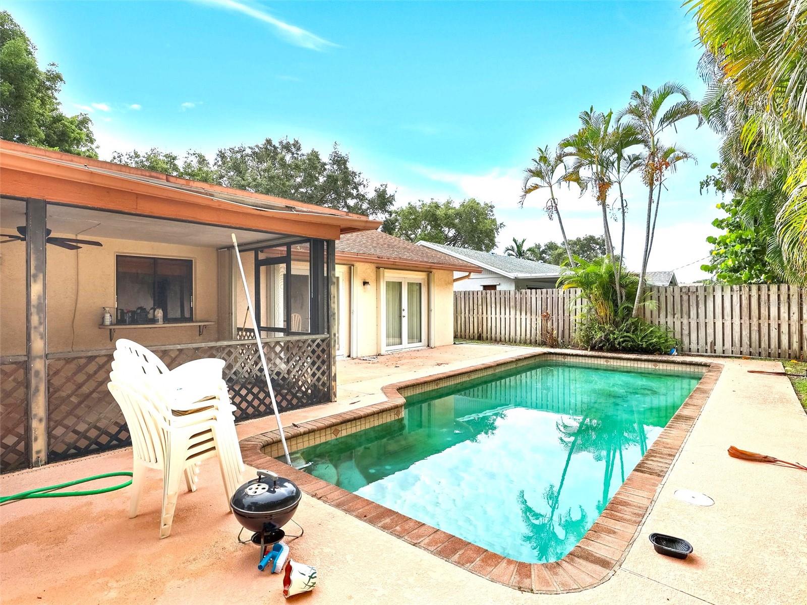 Don't miss this opportunity to own this Single Family Pool Home in the highly desirable Deerfield Ridge/Cove area, East of US1! This split bedroom floor plan has tile throughout the living and dining areas. Your large master bedroom with walk-in closet and en-suite bathroom has a double sink vanity and new skylight. The master bedroom also has french doors leading to the pool and backyard. On the opposite side of the home are the two guest bedrooms separated by the guest bathroom with tub/shower combo. Other features include your indoor laundry/utility room with newer dryer and entrance to the oversized 2-car garage. There are 3 sets of french doors to the back yard pool area, one from the dining living room, and one from the kitchen dining area which takes you to your fully screened in patio. The 8,000 sq ft lot and fenced backyard has extra yard space on the north side of the home for your boat or trailer parking. Home has been completely wired for an Alarm system ready for new owner connection. For added security and convenience the home includes Accordion Hurricane Shutters for all windows and doors as well as the entire screened in patio. Pool equipment and pump replaced in 2020, AC replaced in 2019. Only 2 miles to Deerfield Beach and Fishing Pier, and walking distance to Target, Sprouts and Grocery Stores. Located in Broward County and just south of Palm Beach County Line, and 2 miles to Interstate 95. This quiet community has NO HOA! Make this your dream home with your own touches and desired updates in this pristine location and highly desired neighborhood!