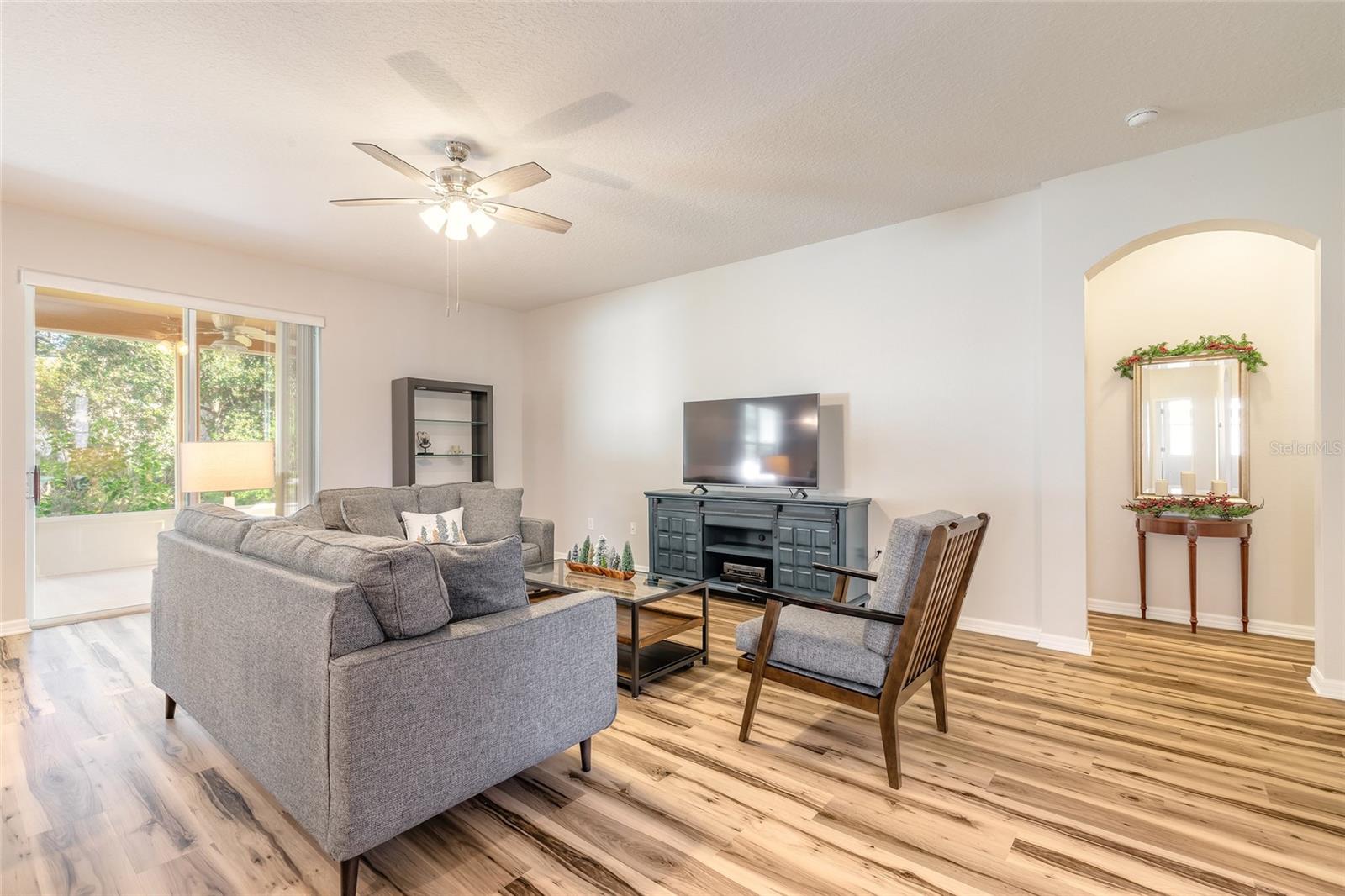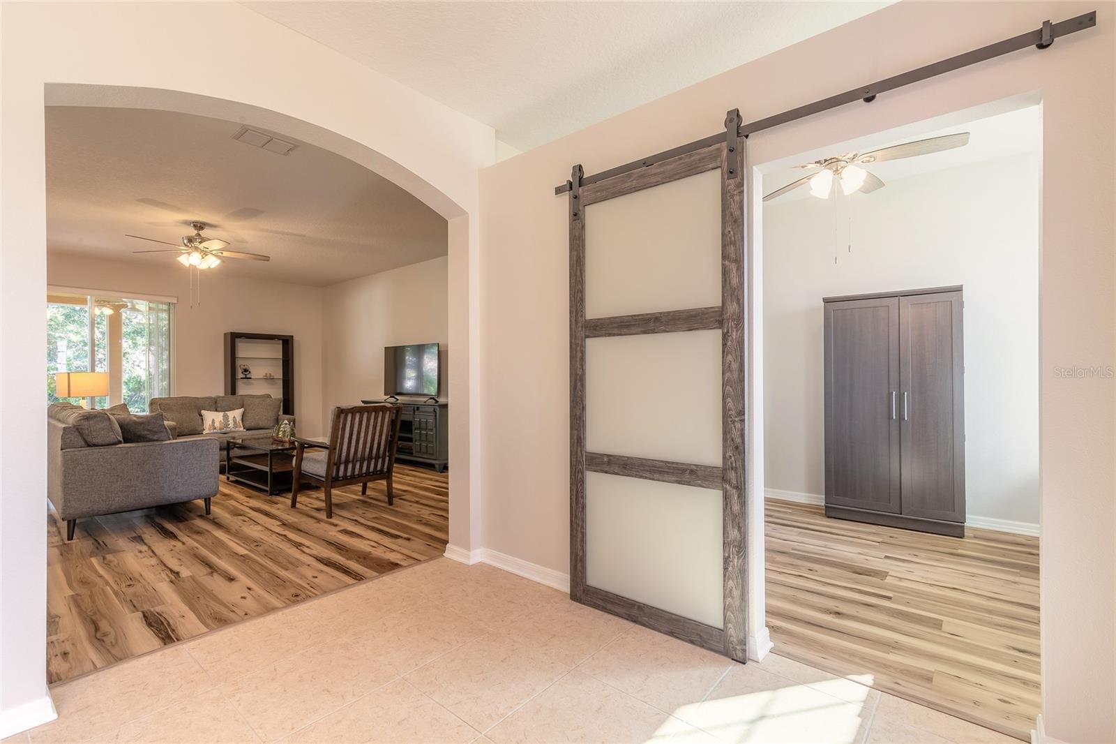 Under contract-accepting backup offers. MOTIVATED SELLERS! This stunning 3-bedroom, 2-bath home has been thoughtfully updated and is completely move-in ready. Recent updates include new Fridge, Dishwasher, Washer/Dryer, Laminate flooring throughout, Light fixtures, and Ceiling fans. A recently enclosed area with a barn door offers enhanced privacy and flexible use, perfect for a home office, den, or multi-purpose room. The open floor plan offers a seamless flow between the kitchen, dining, and living areas, perfect for both relaxing and entertaining. The spacious kitchen features granite countertops, stainless steel appliances, a breakfast bar, and a sunny dinette. The main suite is a true retreat, with coffered ceilings, double closets, and a private bathroom with dual sinks and a walk-in shower. Step outside to enjoy the screened-in back porch perfect for outdoor living. Roof 2013, AC 2013, HWH 2013, Located within a few miles of the heart of DeLand, a city known for its historic charm. This home offers convenient access to shopping, dining, schools, hospitals, I-4, and the new Sun rail System running out of the DeLand Amtrak Station. You'll love the short drive to Daytona Beach, downtown Orlando, and world-famous attractions. Schedule your private showing today! All information is deemed reliable but not guaranteed. Buyers are encouraged to verify all details.