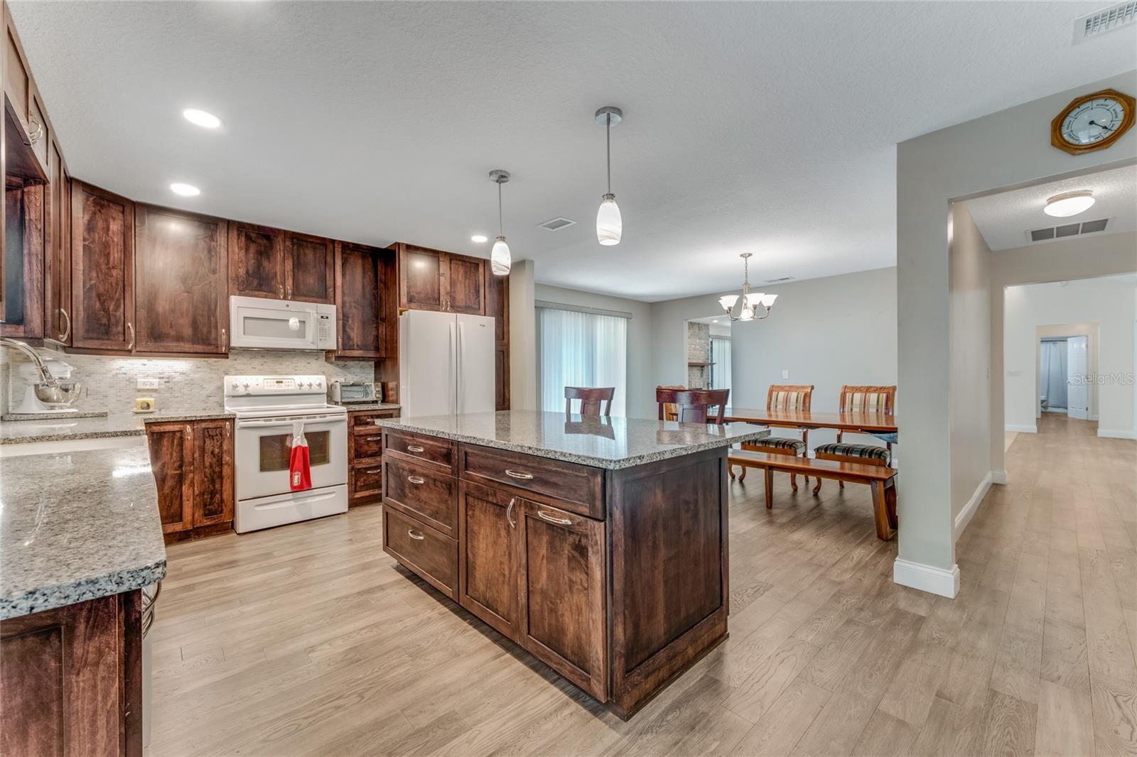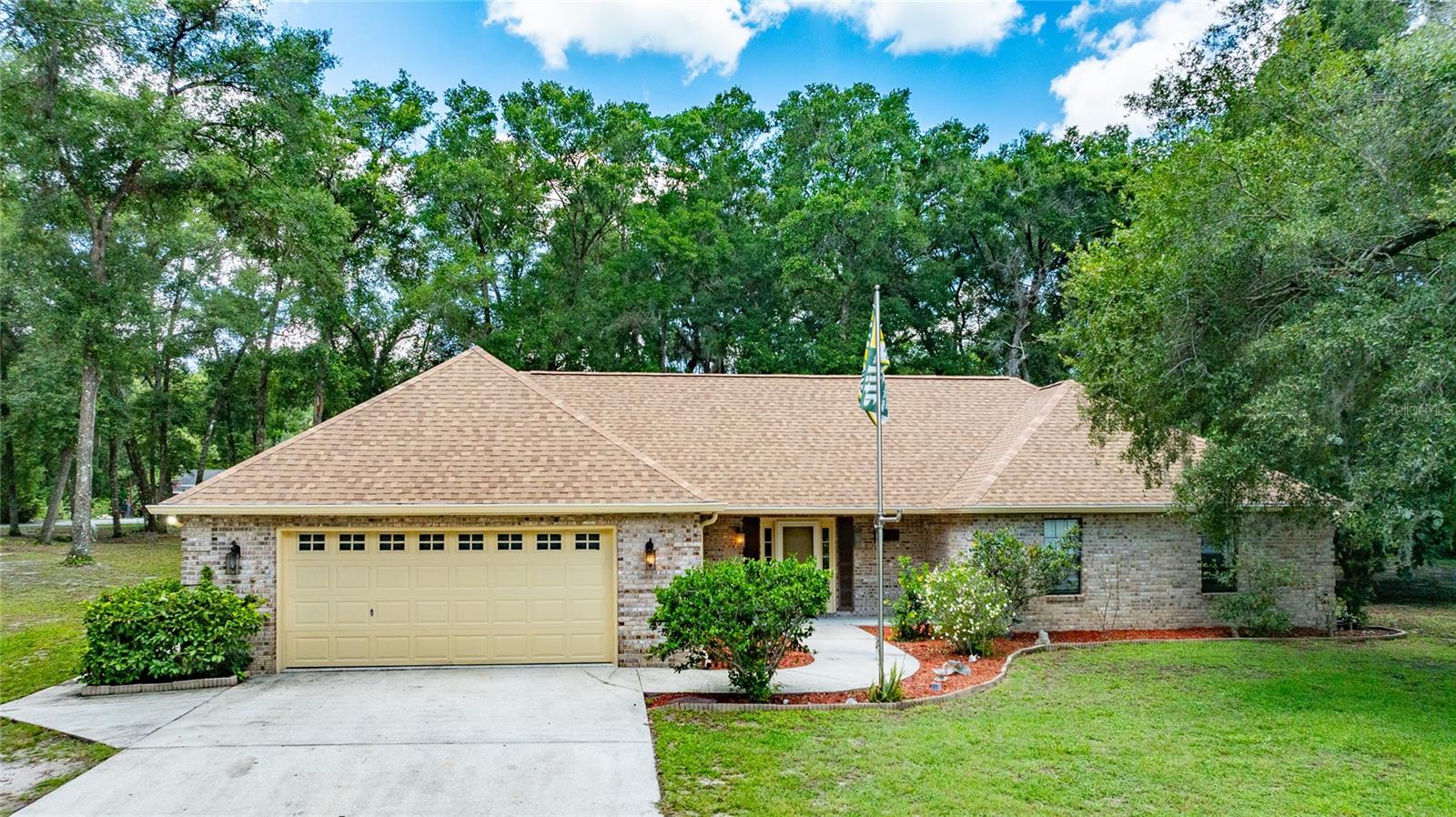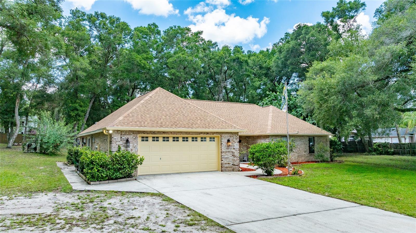 One or more photo(s) has been virtually staged. Acreage, Freedom & Character – This Brick Ranch Offers More Than Just a Home Set on a peaceful and private 1.29-acre homesite, this thoughtfully maintained 3-bedroom, 2-bath brick ranch delivers the kind of lifestyle many buyers are searching for—space, flexibility, and a true sense of home with no HOA or CDD fees. Inside, you’ll find an open and inviting layout filled with natural light. The vaulted ceiling and wood-burning fireplace create a warm and welcoming focal point, while multiple sliding glass doors connect seamlessly to the expansive backyard—perfect for quiet mornings, weekend gatherings, or future outdoor projects. The custom kitchen is as functional as it is beautiful, featuring rich wood cabinetry, granite counters, farmhouse sink, large island with seating, and a full appliance package. The dining area accommodates large gatherings and offers direct access to the back patio. All bedrooms are located on one side of the home, including a generous primary suite with a walk-in closet and private patio access. The ensuite bath showcases a glass vessel sink, updated lighting, and custom cabinetry. Two secondary bedrooms and a full hall bath offer comfort and convenience for family or guests. Beyond the home itself, the property offers: New roof (2025) Oversized 2-car garage with workspace and utility sink 30’ x 20’ powered workshop – perfect for hobbyists, tinkerers, or small business owners Indoor laundry room Plenty of open yard space for gardens, play, pets, or future plans All of this is tucked into a quiet residential area known for its mature trees, friendly neighbors, and small-town charm. Just minutes away, you’ll find local shops, scenic parks, art and music venues, and weekend farmers markets—plus easy access to some of Florida’s most beautiful natural springs and trails. Buyer Bonus: Ask how you can get up to 1% back at closing with our preferred lender! Homes with this much land, character, and flexibility are rare—schedule your private showing today and come see what makes this property so special.