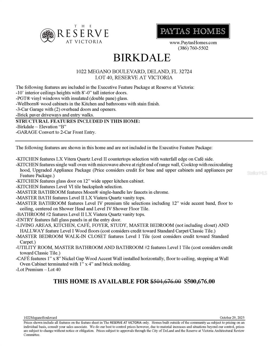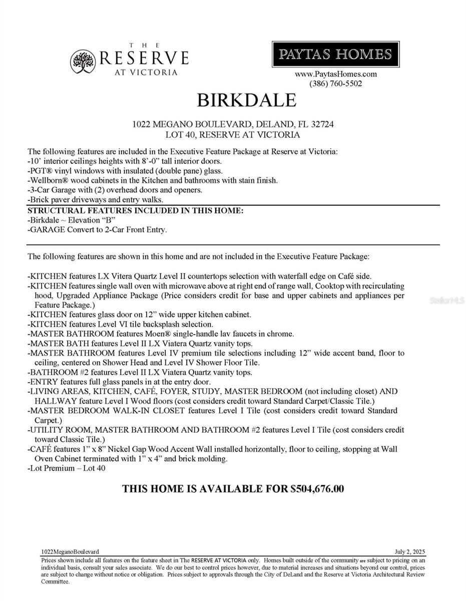 Under Construction. This New Paytas Home is located in The Reserve at Victoria, a Paytas Community in DeLand. This home includes a 2-Car Front Entry Garage, Premium LX Vitera Quartz countertops in Kitchen with waterfall edge and upgraded backsplash tile, Single wall oven with microwave above at right end of range wall, cooktop with recirculating hood, Upgraded Kitchen Appliance Package, Cafe wall features 1"x8" Nickle Gap Accent Wall and brick molding, Solid Wood Wellborn Cabinets with glass doors in 12" upper cabinets , Suntunnels, Upgraded Wood Floors throughout Main Living Areas, Large Study, LX Vitera Quartz countertops in Bathrooms, Master Bath features premium tile selections including 12" wide accent band, floor to ceiling, and so much more! The Amenity Center is now open for Residents Only to enjoy the Resort Style Pool, Pickleball Courts, Playground, Fitness Center, Gathering Room and Outdoor Social Area! *Broker has business affiliation with Seller.