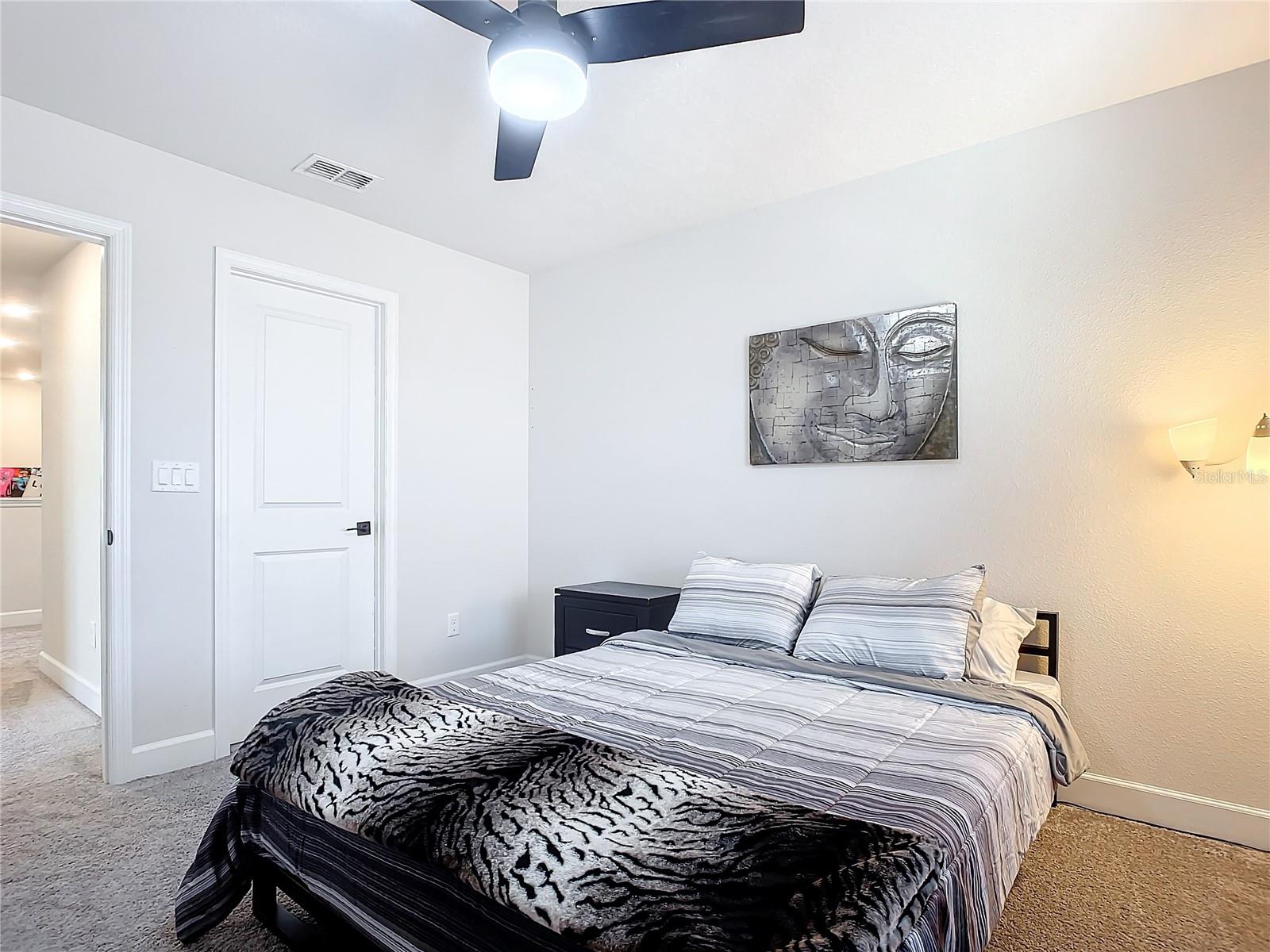 Stunning 5 bedroom home on quiet cul-du-sac in Deland. This is one of Richmond Homes largest floor-plans - the Moonstone. Boasting an open floor plan on the main floor with a custom built entertainment center with wired surround sound in the living room, Built in Dog cages for 2 small dogs. The kitchen has New upgraded GE profile stainless appliances, quartz countertops and large island.A Barn Door Pantry The first floor also has a flex/office that with the addition of a closet and door could be a downstairs 6th bedroom and full bathroom. You must check out the Harry Potter Closet a space with endless possibilities. On the second floor you will find the “pièce de résistance” the spacious master with ensuite bath and huge walk in closet with custom built-ins. Along with the master you will find 4 additional bedrooms and another full bath on the second floor. Beautifully landscaped with lighting and your very own palm tree. The back yard has a large covered patio and is fully fenced with room for a pool. Located only 2 1/2 miles to Historic Downtown Deland and Stetson University. 3 1/2 miles to the beautiful St. John’s River and 30 minutes away from the most famous beaches in Daytona Beach. Why wait for a new build this one is less than 2 years old!