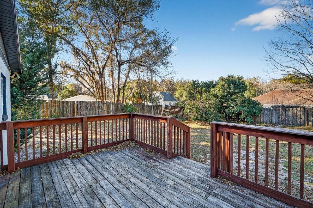 Move-in ready, energy-efficient, and built for peace of mind. This beautiful 4-bedroom, 2.5-bath block home in DeLand offers a new roof installed in 2023, a brand-new HVAC system, and solar panels that are paid in full, helping keep utility costs low from day one. Tucked away in a quiet no-HOA neighborhood, the home sits high and dry while still being just minutes from Stetson University, historic downtown DeLand, and major highways for easy commuting. Inside, you’ll find tile flooring throughout and a well-designed layout with two en-suite bedrooms. The spacious primary suite features a jetted tub, creating a relaxing space to unwind. Outside, the fully fenced yard provides plenty of room to enjoy Florida living, complete with a backyard deck, screened side porch, and a large shed for extra storage. Comfortable, convenient, and easy to love, this home is ready for its next chapter.