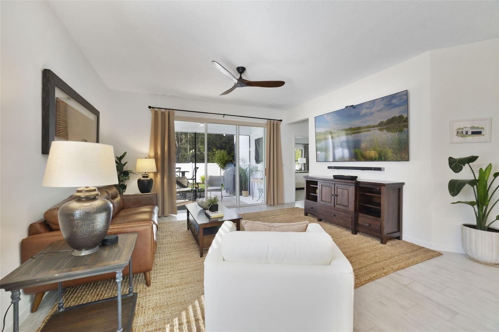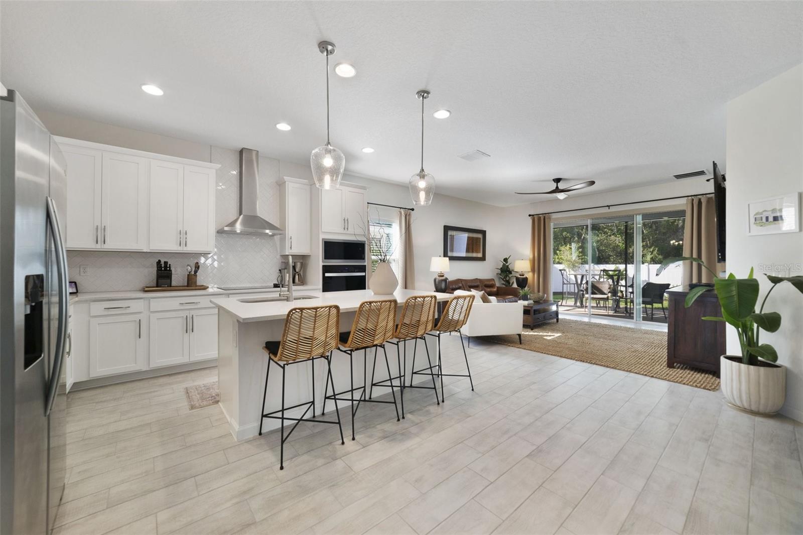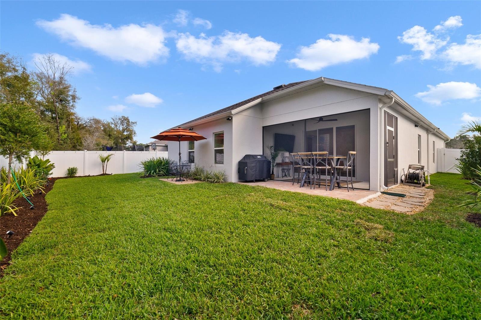 Feels like new 2023 BUILT HOME with POND & CONSERVATION VIEWS, spacious floor plan with a FLEX ROOM, UPGRADED OWNER’S SUITE, SEAMLESS INDOOR/OUTDOOR LIVING, modern updates and a prime location - WELCOME HOME! This Poinciana model by Dream Finders Homes offers curb appeal in the paver driveway and sculpted landscaping and a layout that flows from the front door to the back. Off the foyer you have a flex space perfect for formal living or dining for those who like a separate entertaining space, a guest bedroom ideal for a home office and your laundry room. Follow the natural flow into the beautiful open kitchen, a modern ‘cafe’ for casual dining or additional sitting area and a generous great room with 8’ sliding glass doors that access a SCREENED LANAI, paver patio and fully fenced backyard beyond. There are two more bedrooms off a central hallway with a full guest bath and the owner’s suite is tucked away off the back of the home for added privacy. A tranquil space, your en-suite delivers DUAL WALK-IN CLOSETS, and a luxurious en-suite bath. Part of the Dream Series collection with stylish design elements while still leaving plenty of room for personalization in a serene and natural setting. Residents of Lakewood Park have access to community amenities that include a CLUBHOUSE, POOL with covered seating area and playground. You are just minutes from I-4 for easy access to shopping, restaurants, Downtown Deland and the beaches. Why wait for a new build when this home is ready now with versatile space for room to grow - call today to schedule your tour!