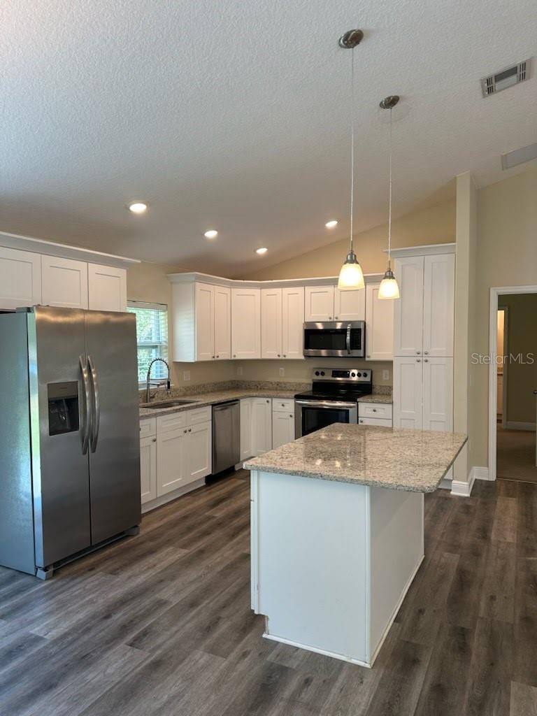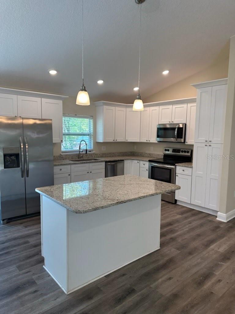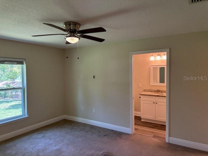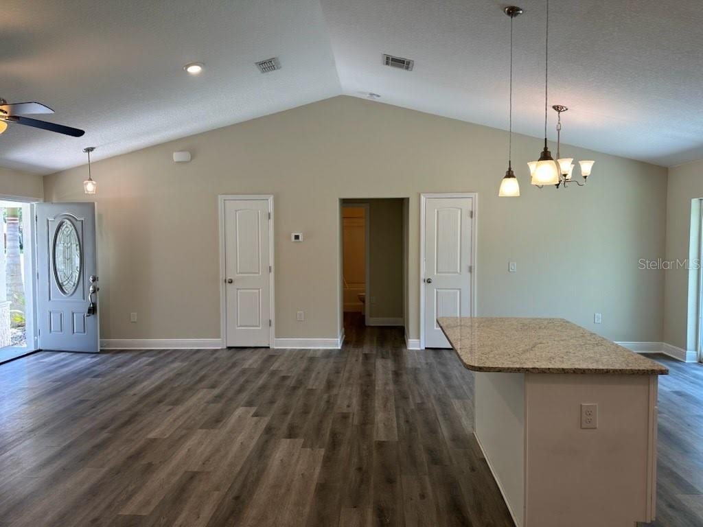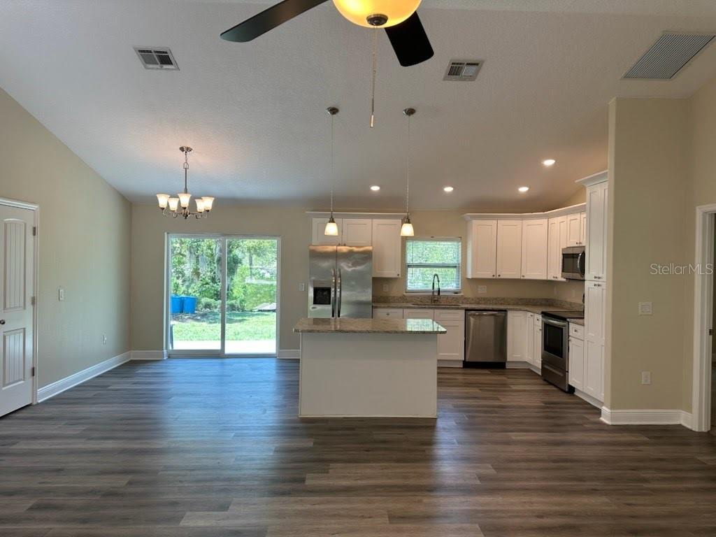 This beautiful, newer construction DeLand home features many upgrades! The oversized kitchen includes stainless steel appliances, stunning granite countertops, modern white shaker cabinets and a center island with breakfast bar. The 3 bedroom 2 bathroom split floor plan features a primary bedroom that includes walk-in closet, en-suite bathroom with dual sinks, and luxury tile walk-in shower. The spacious great-room boasts vaulted ceilings and open floor plan, great for entertaining family and friends. Meanwhile, the expansive backyard is a blank canvas for you to create your own little paradise. Other upgraded amenities include radiant barrier roof, solar powered attic fan, "Low-E" windows and slider, painted garage floor, garage door opener with battery backup and more! Close proximity to I-4, and just a few minutes to DeLand Mainstreet shops, restaurants and other entertainment venues as well as the beautiful Stetson University campus.