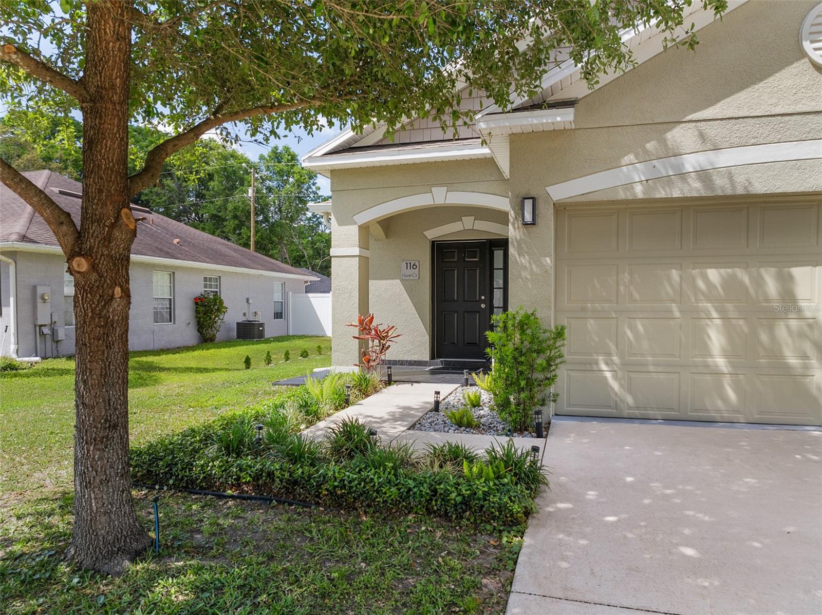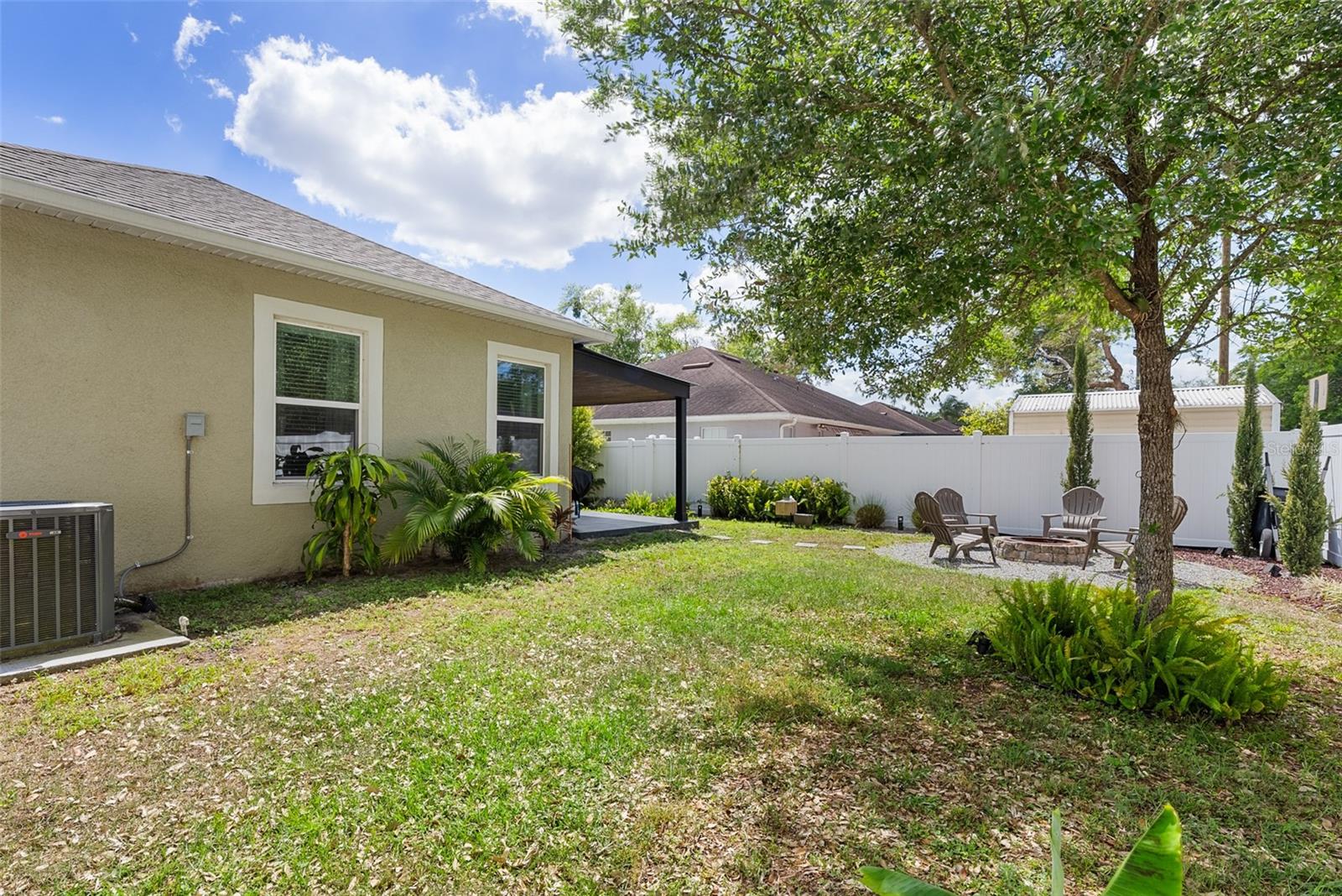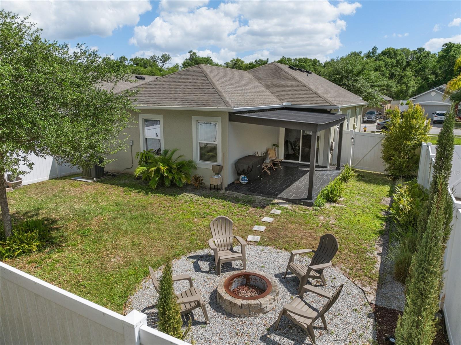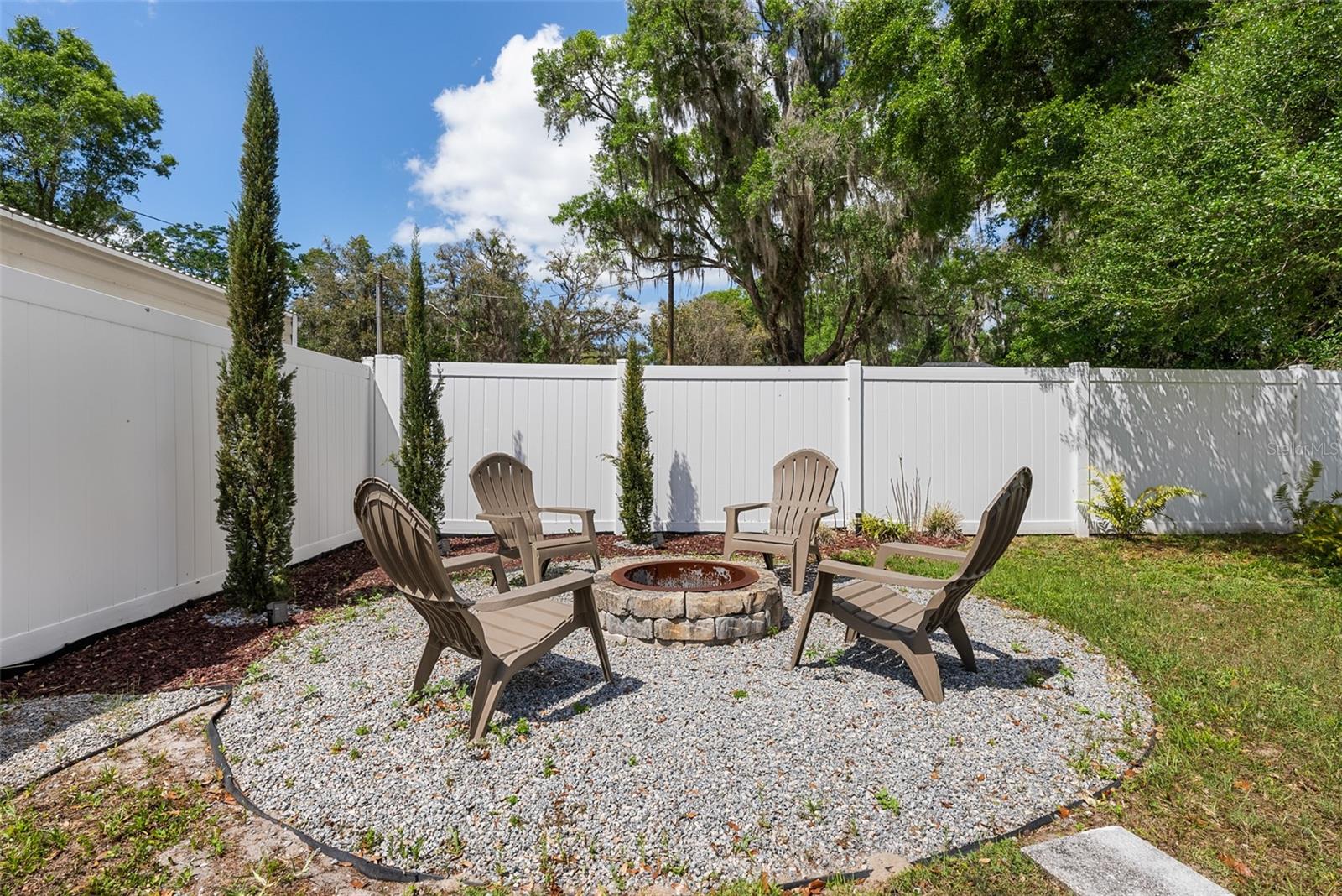 One or more photo(s) has been virtually staged. Move Right In! This home is so well maintained you will feel like you are walking into a brand-new model home. Multiple upgrades have been done in recent years, including a 2-year-old $11,000 patio with gorgeous ceramic tile that matches the oversized porch on the front of the home. The backyard also has a built-in fire pit for entertaining or just hanging out with family. The yard has a vinyl fence for added privacy and the property has been meticulously landscaped and has no rear- facing neighbors. The interior has multiple upgrades as well, including a beautiful hand-crafted accent wall in the living room, stainless steel appliances, upgraded backsplash and hand-crafted design pattern under the kitchen island. Other features include granite countertops, modern fixtures, recessed lighting and ceiling fans. The location is ten minutes from Stetson University, shopping, restaurants, Downtown Deland, and a public park with tennis courts is down the road! Approximately 2 miles from 17-92/Woodland Blvd. The home is located on a street with streetlights, sidewalks on both sides and a cul de sac at the end. The garage also has an attic and upgraded epoxy type floors. HOA only 250.00 a YEAR! Less than 21.00 a month! Don't overlook this home. You will be pleasantly surprised!