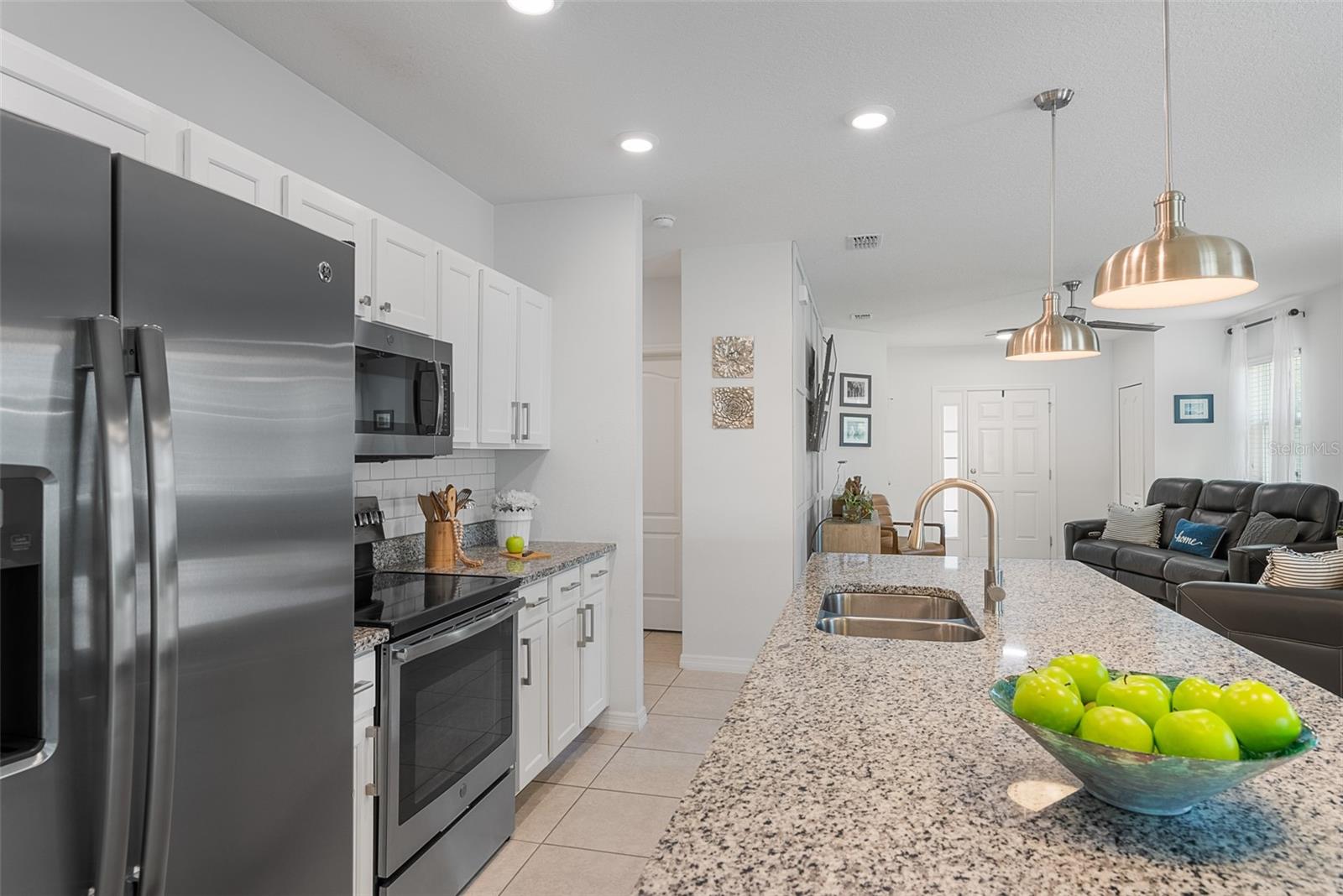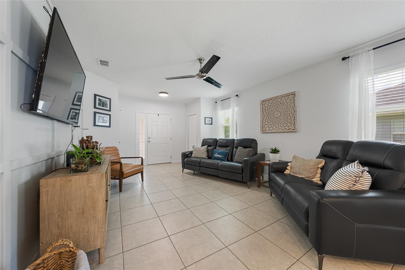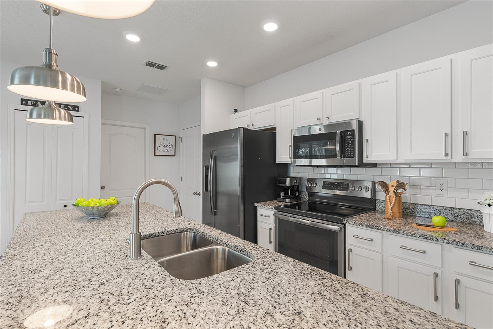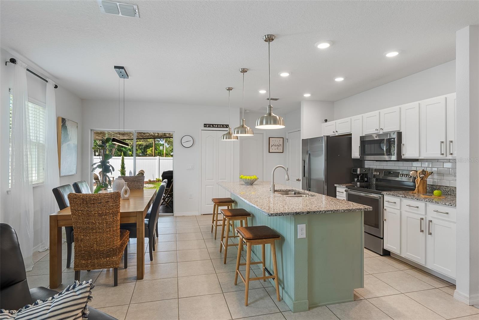 One or more photo(s) has been virtually staged. Move Right In! This home is so well maintained you will feel like you are walking into a brand-new model home. Multiple upgrades have been done in recent years, including a 2-year-old $11,000 patio with gorgeous ceramic tile that matches the oversized porch on the front of the home. The backyard also has a built-in fire pit for entertaining or just hanging out with family. The yard has a vinyl fence for added privacy and the property has been meticulously landscaped and has no rear- facing neighbors. The interior has multiple upgrades as well, including a beautiful hand-crafted accent wall in the living room, stainless steel appliances, upgraded backsplash and hand-crafted design pattern under the kitchen island. Other features include granite countertops, modern fixtures, recessed lighting and ceiling fans. The location is ten minutes from Stetson University, shopping, restaurants, Downtown Deland, and a public park with tennis courts is down the road! Approximately 2 miles from 17-92/Woodland Blvd. The home is located on a street with streetlights, sidewalks on both sides and a cul de sac at the end. The garage also has an attic and upgraded epoxy type floors. HOA only 250.00 a YEAR! Less than 21.00 a month! Don't overlook this home. You will be pleasantly surprised!