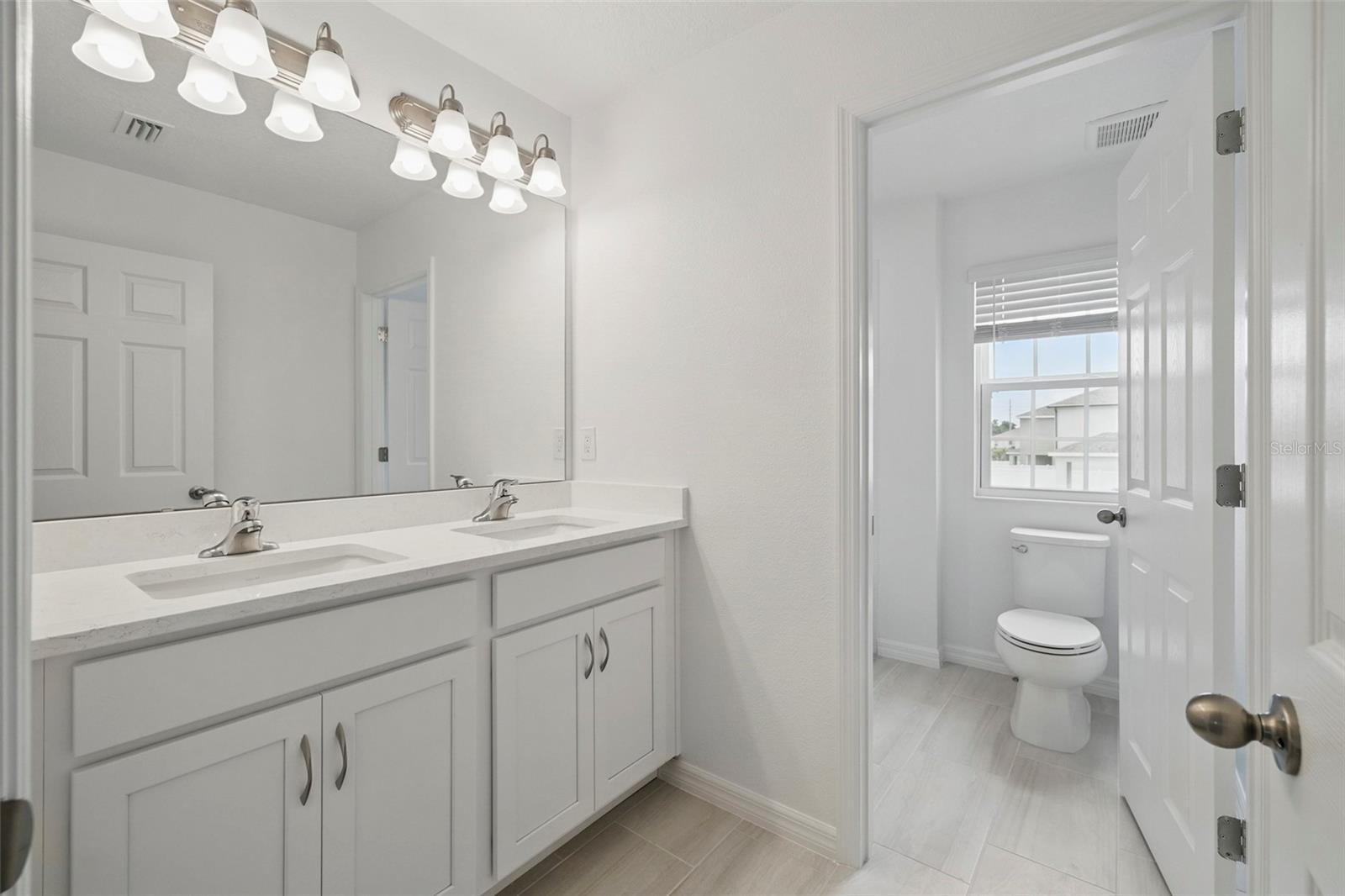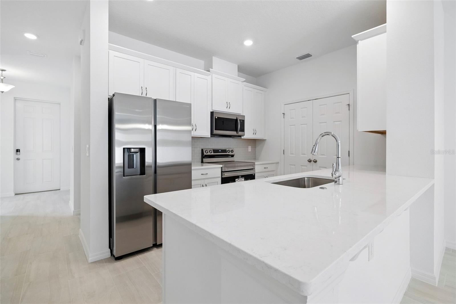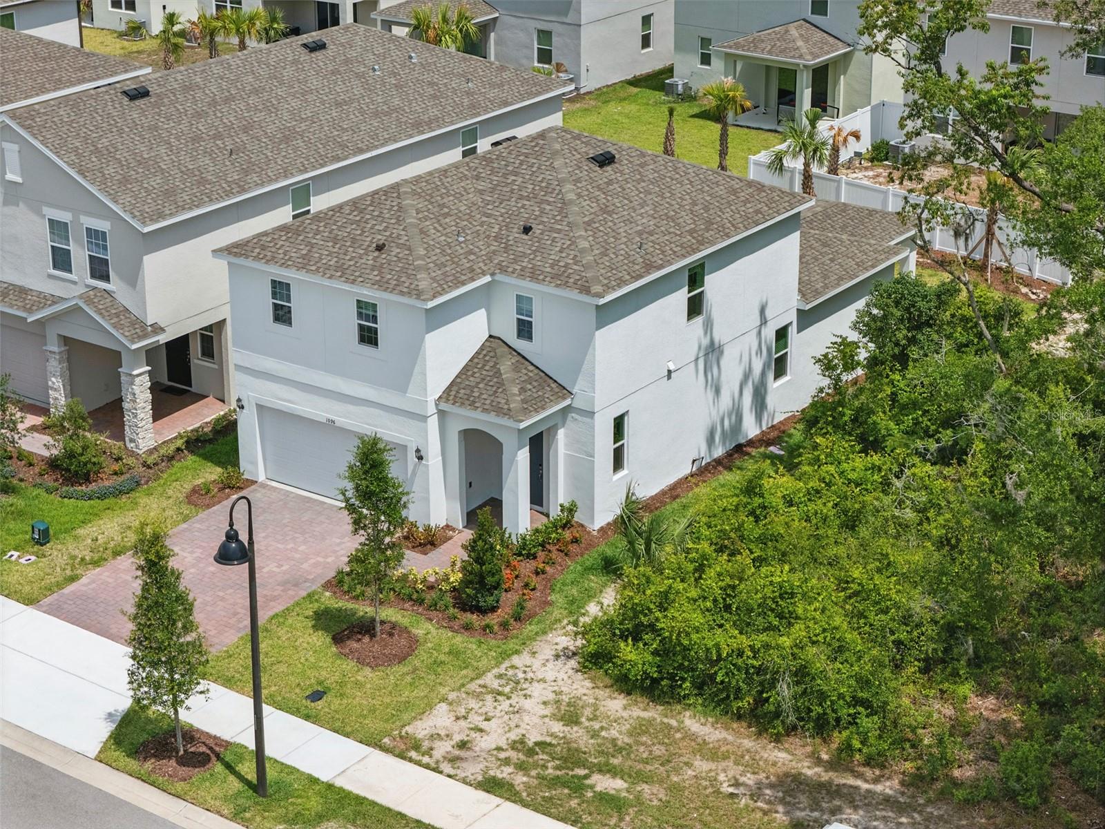Step into the beautifully designed Gasparilla plan - a unique 4-bedroom, 2.5-bath home offering 2,182 square feet of comfortable living space and a 2-car garage. This thoughtful layout features the primary bedroom on the first floor, providing added privacy and convenience. Enjoy elegant upgrades throughout, including tile flooring on the main level, 42" kitchen cabinets, quartz countertops, and stainless steel appliances included. Nestled beside a serene area of lush, HOA-maintained trees, this home offers both beauty and tranquility right outside your door. Don’t miss your chance to own this special home in a stunning natural setting!