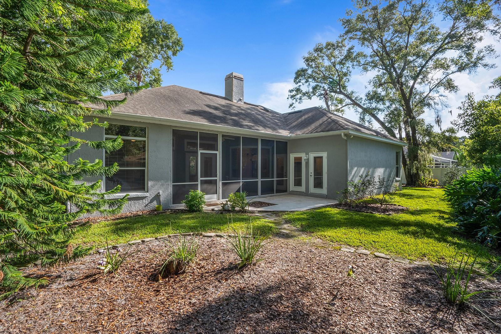One or more photo(s) has been virtually staged. Nestled in the highly sought-after Cross Creek neighborhood of DeLand, this stunning three-bedroom, two-bath home has been beautifully reimagined for today’s modern lifestyle. From the moment you arrive, you’ll appreciate its prime cul-de-sac location, offering peace, privacy, and minimal through-traffic all set on a spacious one-third acre lot perfect for outdoor living. Step inside and fall in love with the warmth of rich wood flooring that flows seamlessly throughout the home. The open-concept kitchen is a true showstopper, featuring shaker-style cabinetry, open shelving, gleaming quartz countertops, and a stylish island with seating is perfect for morning coffee or casual dining. A tray ceiling adds architectural flair, while the electric cooktop and wall oven/microwave combo make both everyday meals and entertaining a joy. The split-bedroom floor plan provides comfort and privacy, with the primary suite tucked away on the western side and two additional bedrooms on the opposite end. At the heart of the home, a two-sided wood-burning fireplace, framed in beautiful stone, connects the dining area and kitchen, creating an inviting ambiance for gatherings or cozy nights in. Outside, enjoy the screened rear patio overlooking a lush, maturely landscaped backyard that is the perfect blank canvas for your dream outdoor retreat. The side-entry two-car garage and extended driveway provide plenty of parking for guests and family alike. Recent upgrades bring peace of mind with a NEW water heater (Sept 2025) and NEW HVAC system (Oct 2025). Sellers are offering a new roof prior to closing or a credit at closing allowing buyer to choose the color. All this, just a four minute drive to AdventHealth Hospital and an eight minute drive to historic downtown DeLand, where charming shops, restaurants, and the renowned Stetson University await.
