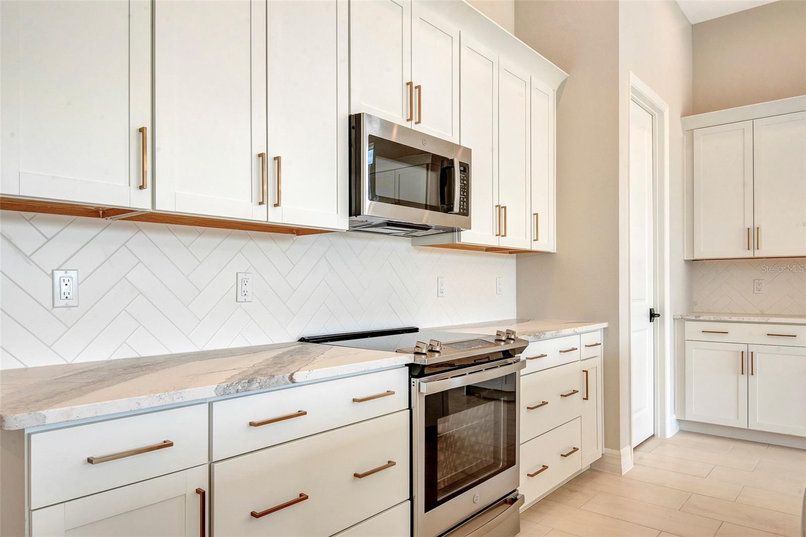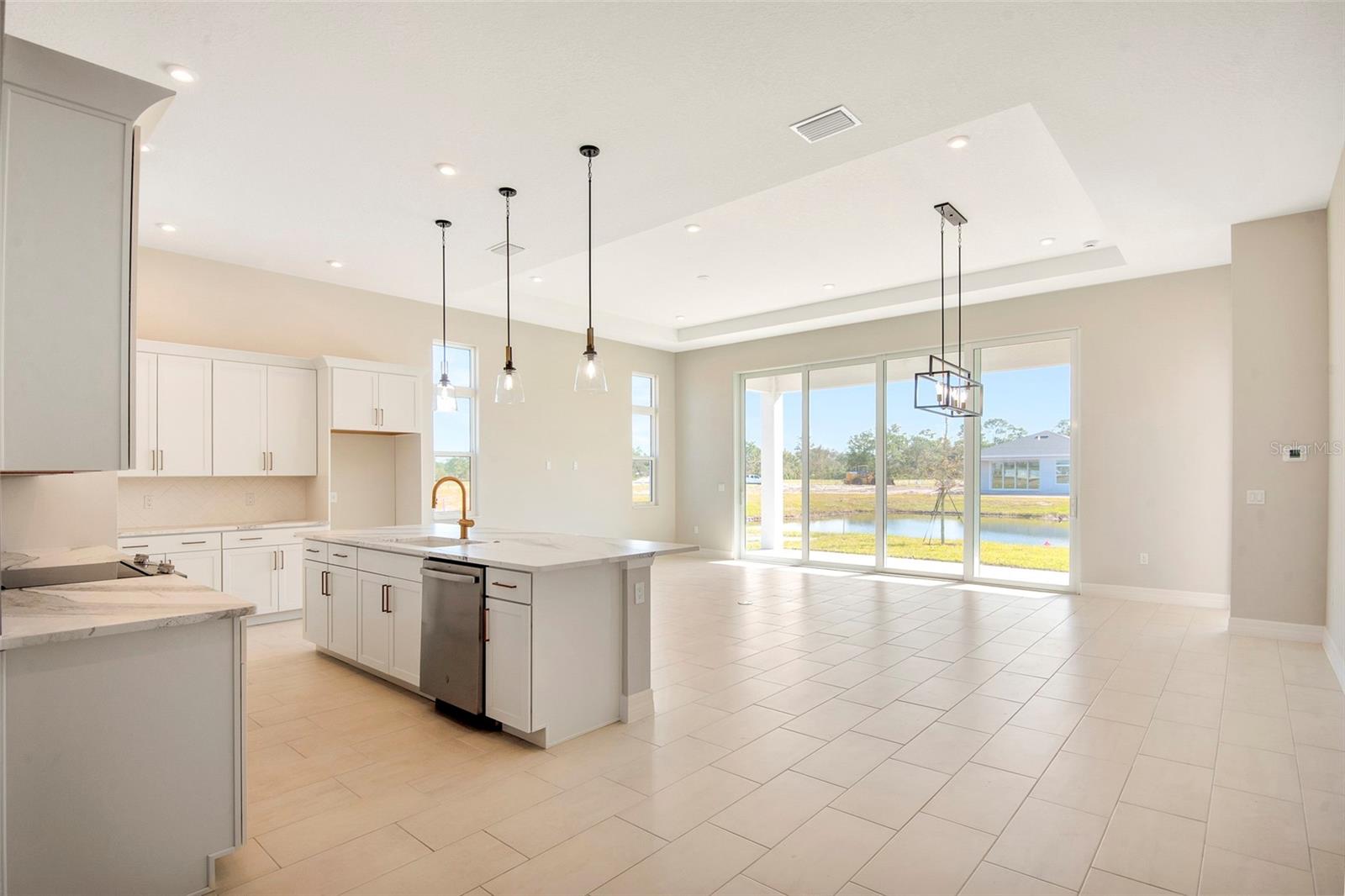 ***NEW CONSTRUCTION***Stunning 4-bedroom, 3-bath home with a 3-car garage, set on a desirable water-backed homesite. This open-concept design showcases a spacious family room and a gourmet kitchen featuring a slide-in range with integrated griddle, luxury 3cm veined quartz countertops, herringbone tile backsplash, upgraded cabinetry with crown molding, pot-and-pan storage drawers, and a 24” deep cabinet above the refrigerator with side panels. The Owner’s Suite offers laminate wood plank flooring and a spa-like bath with frameless shower enclosure, quartz countertops, and tile-to-ceiling in the shower. All baths feature frameless glass and floor-to-ceiling tile, creating a sleek, modern finish. Designer details include a glass front door, and washable flat interior paint for style and easy care. With its blend of luxury design selections, functional storage, and a prime coastal-inspired location, this home delivers both elegance and everyday comfort.