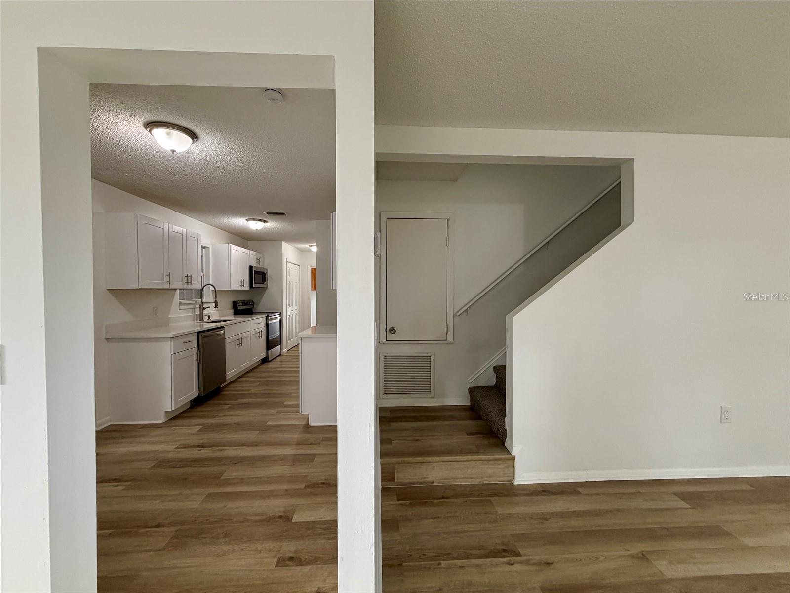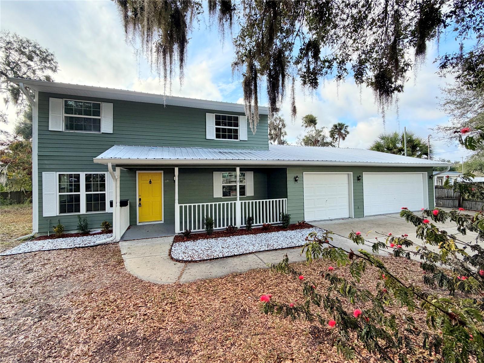 Beautifully renovated and ideally located just minutes from Stetson University and within walking distance to Earl Brown Park, this DeLand home offers an unbeatable combination of space, upgrades, and versatility. Situated on a rare ½-acre lot, the property features a welcoming front porch and a spacious rear porch, perfect for relaxing or entertaining. A large 3-car garage provides ample room for parking, storage, or hobby use, while the metal roof adds durability and long-term value. Inside, the home has been thoughtfully updated with new luxury vinyl plank flooring throughout the main living areas and new carpet on the upper level. The kitchen features brand-new cabinets and elegant quartz countertops, creating a modern and functional space for everyday living and entertaining. The home has also been refreshed with new interior and exterior paint, giving it a clean, contemporary look. A versatile utility room with built-in cabinets provides the perfect space for a home office, workshop, or studio. With plenty of land for parking, outdoor living, gardening, or future expansion, this property is ideal for both homeowners and investors alike. Conveniently located near downtown DeLand, Stetson University, parks, shopping, and major roadways.