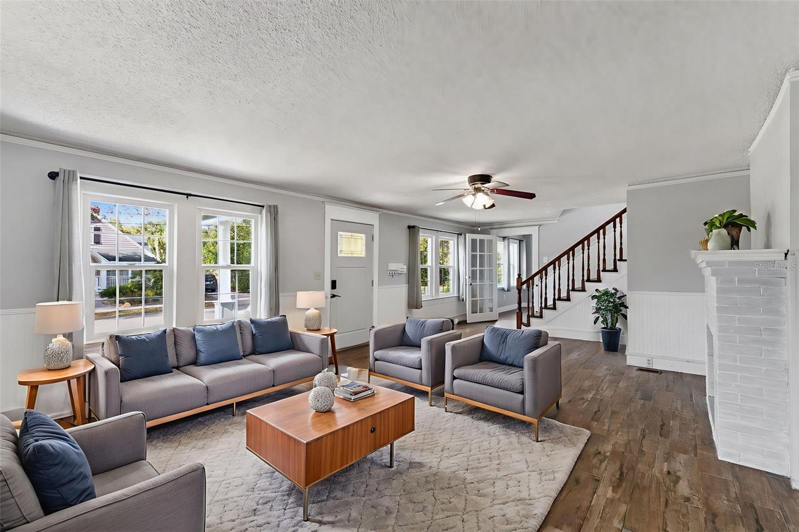 One or more photo(s) has been virtually staged. Welcome to a piece of DeLand’s storybook past where century-old character meets everyday living in one of Central Florida’s most walkable and beloved neighborhoods. Located just blocks from historic Stetson University and minutes from downtown DeLand’s shops, restaurants, and events, this spacious 5-bed, 3-bath home invites you to be part of its next chapter. Originally built in 1920, this gracious home stands proud with a classic front porch that defines small town charm. Over the years, the home has been thoughtfully expanded to enhance both comfort and function, including the addition of a private primary suite, a dedicated downstairs laundry space, and an additional bathroom that allows the layout to live larger and more comfortably than many homes of its era. Step inside and feel the warmth of an older home that has evolved with time. Abundant natural light, subtle modern updates, and timeless architectural details create a welcoming atmosphere that simply cannot be replicated in new construction. At the heart of the home, character takes center stage. A cozy living room anchored by an original Chicago brick fireplace, a bright kitchen framed by a wall of windows with gas cooking, and flexible living areas across multiple levels offer space that adapts to your lifestyle. Whether you need quiet home offices, guest accommodations, creative studios, or game rooms, this home provides the versatility to make it truly your own. Outside, imagine unwinding on the deck overlooking a generous backyard, an ideal setting for gardening, play, or entertaining under the Florida sky. With no HOA, you have the freedom to live comfortably and creatively in a home filled with personality and potential. This is more than a house. It’s a lifestyle rooted in connection, walkability, and history. From strolling to a Hatters game, enjoying weekend brunch downtown, or relaxing on your front porch as the neighborhood comes alive, this home offers a rare opportunity to own a historic DeLand residence that blends timeless charm with meaningful space and modern relevance.
