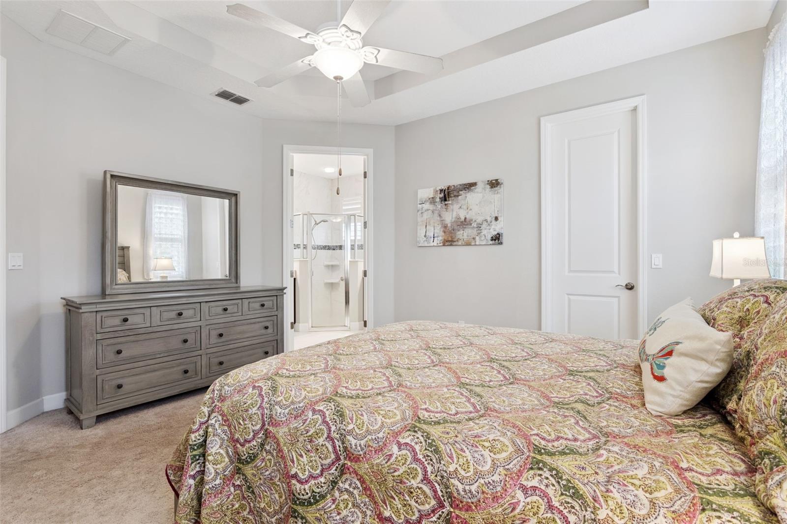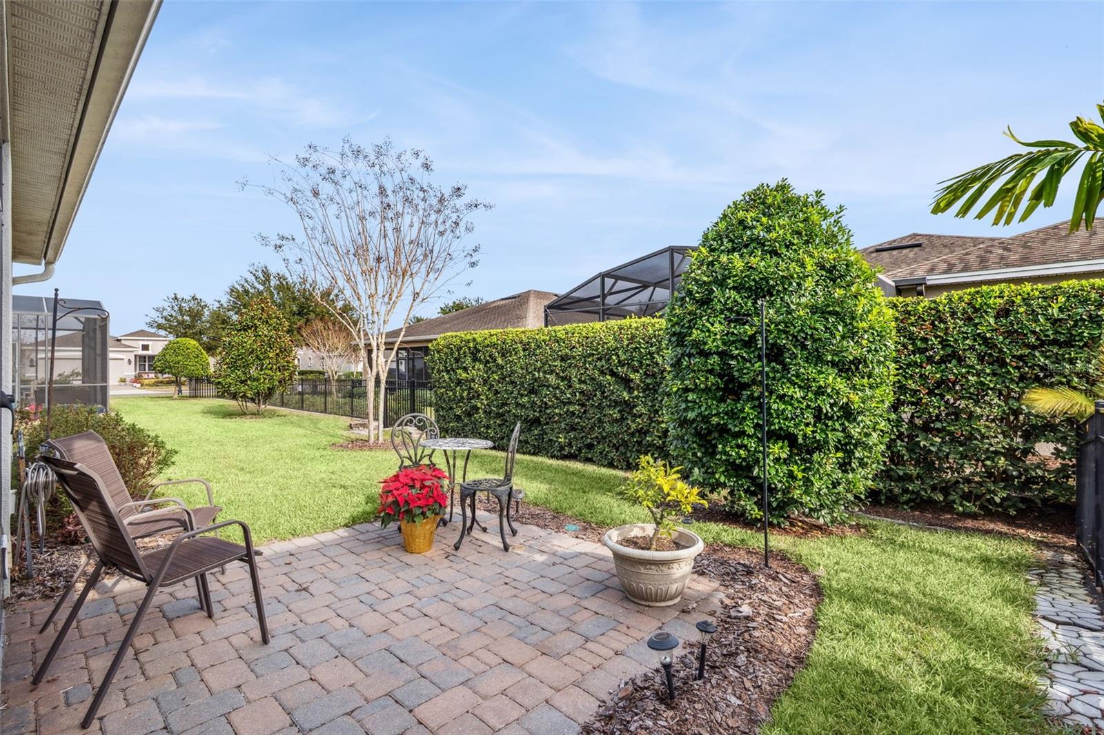 Expect to be impressed with this Azalea floorplan that was built in 2017 with an enclosed lanai, portable a/c system & a brick paver patio within the Cresswind at Victoria Gardens 55+ neighborhood. This Light & Bright home has many upgraded options to accommodate your lifestyle! Features include neutral 18” porcelain tile floors throughout main living area, Silestone countertops in kitchen, leaded glass front entry door, Plantation style shutters, crown molding & recessed lighting. This 2 BD/2 BA plus Den home has a Great Room layout. The 14’ x 12’ kitchen offers 42” White “soft close” wood cabinetry w/ crown molding, under cabinet lighting, tile backsplash, Pull-out drawers, 4-burner natural gas cooktop, wall oven, pendant lighting above breakfast bar, stainless steel appliances and a spacious walk-in pantry. Primary bedroom has 2 walk-in closets with a spacious bathroom, dual raised height vanities & a walk-in shower. You will enjoy relaxing on the enclosed in lanai w/ portable a/c system, rolldown shades, expanded brick paver patio & privacy hedge in the backyard. All appliances stay with the home including the washer & dryer. Victoria Garden residents have access to their own social Private Clubhouse. HOA fee includes lawn care, Spectrum HFC TV & internet and reclaimed water for yard irrigation and access to all community amenities. Community is within 1 mile of I-4 that offers great access to the east coast beaches, Orlando (40 minutes) and 3 International airports within 1 hour.