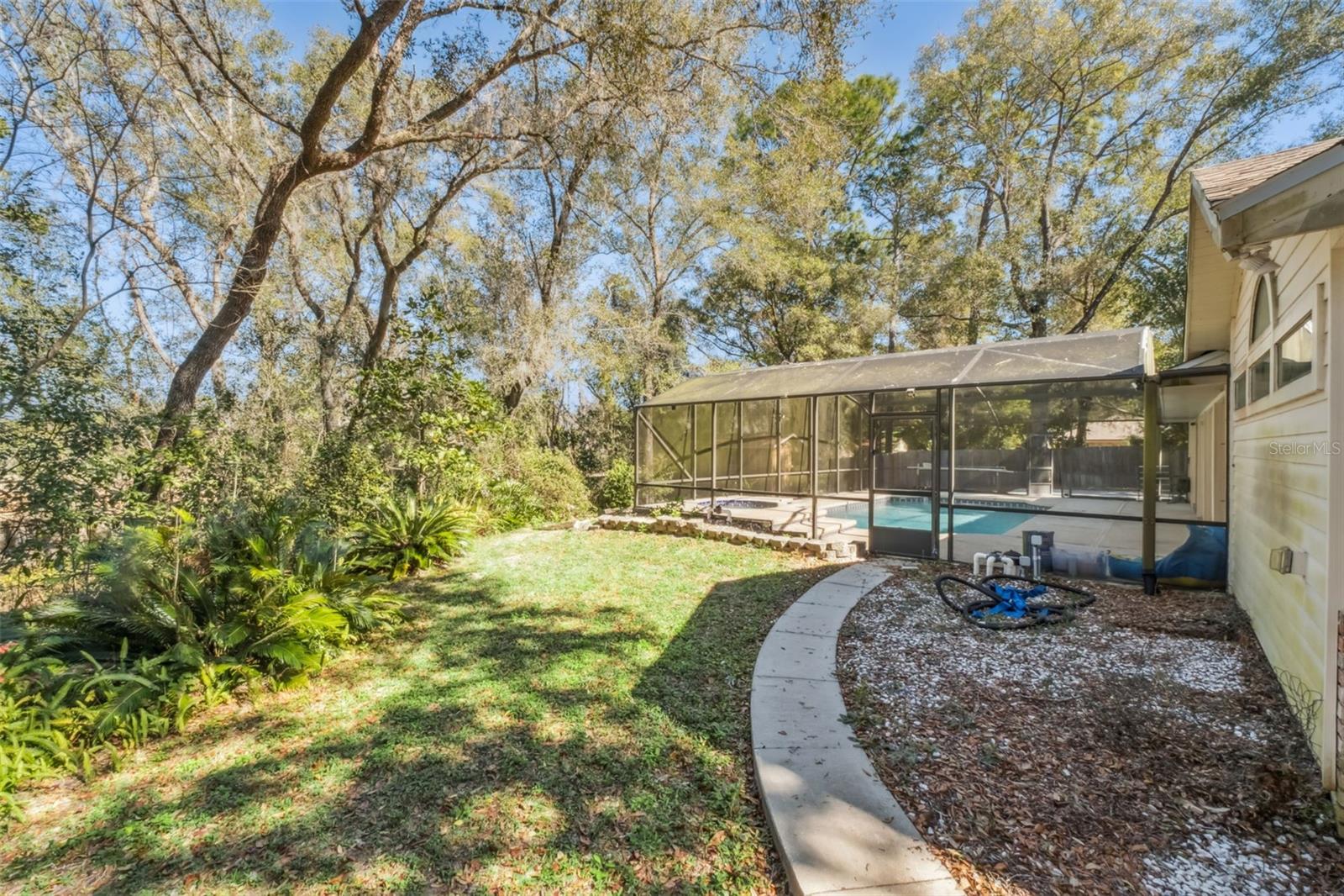 Welcome to this beautifully maintained 4-bedroom, 3.5-bath pool home nestled on over half an acre in the highly desirable Long Leaf Plantation community. Offering 2,690 sq ft of comfortable living space, this residence blends timeless charm with thoughtful updates, creating the perfect retreat for everyday living and entertaining. Step inside to a bright, inviting layout featuring formal living and dining rooms, Spanish tile flooring, and volume ceilings that enhance the home’s spacious feel. The updated kitchen is equipped with a center island, breakfast bar, pantry, and newer appliances—ideal for the home chef. The adjoining family room opens seamlessly to the lanai through wide 3-panel sliders, filling the space with natural light and views of the pool. The primary suite offers privacy and comfort with a walk-in closet, dual-sink vanity, and a dedicated tankless water heater. Three additional bedrooms provide flexibility for family, guests, or a home office. Step outside to your own Florida oasis. The screened, heated saltwater pool and spa—complete with remote controls—create the perfect setting for relaxation. The expansive covered lanai, beautifully landscaped yard, and fully fenced property offer both tranquility and space to entertain. A side-entry 2-car garage, long driveway, and additional parking pad provide ample room for vehicles and storage. Located in a peaceful, established neighborhood just minutes from shopping, dining, and historic Downtown DeLand, this home delivers the ideal blend of privacy, comfort, and convenience.