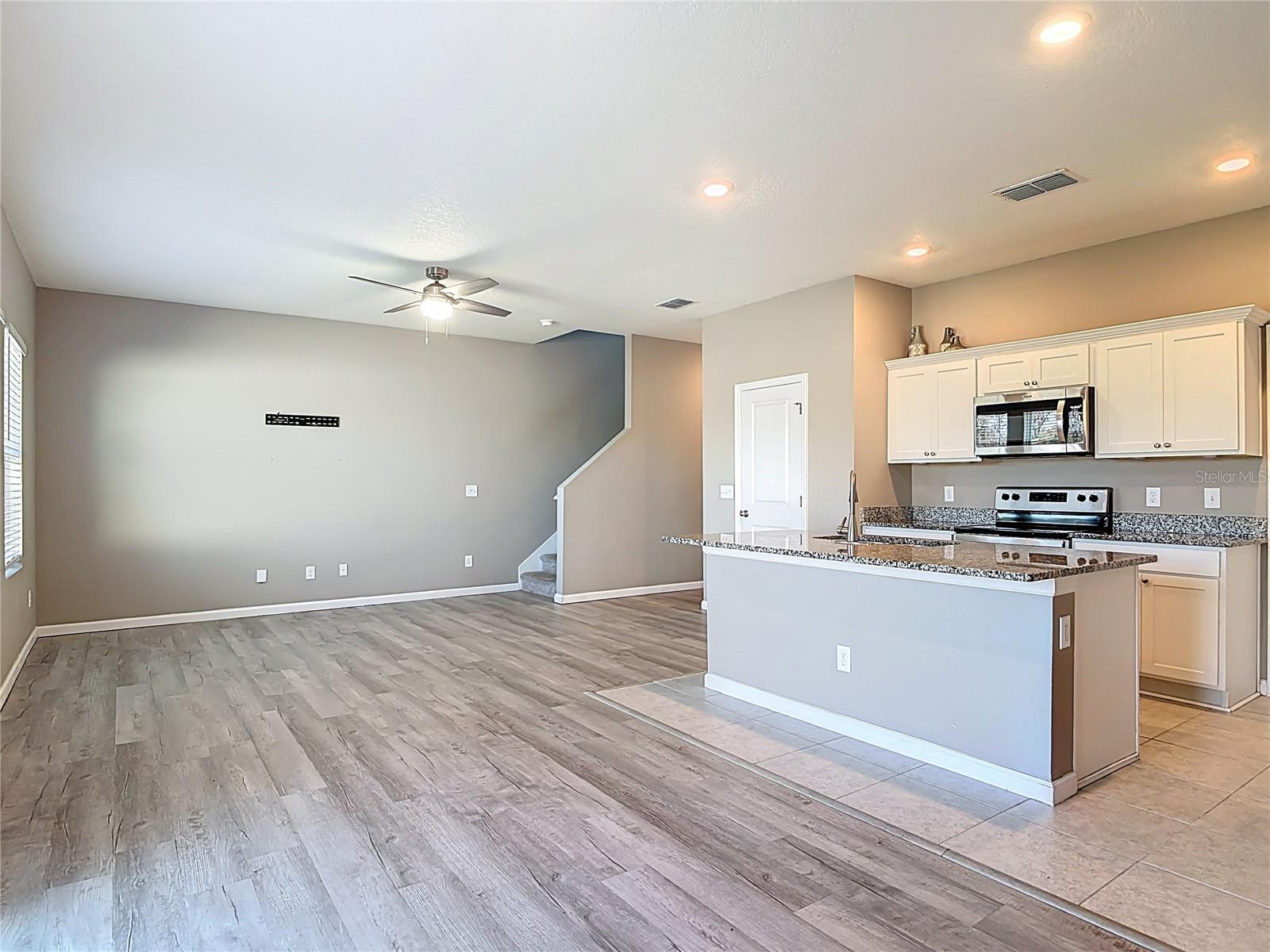 Welcome home to this newer, beautifully designed 3-bedroom, 2-bath two-story residence located in the heart of DeLand’s historic district. Featuring an open floor plan ideal for modern living, this home offers luxury vinyl flooring throughout the main living areas and a bright, spacious kitchen complete with granite countertops, stainless steel appliances, and plenty of prep and storage space. All three bedrooms are thoughtfully laid out, with an upstairs family room that provides the perfect spot for a playroom, media room, or home office. The flat, fully usable backyard is ideal for entertaining, relaxing, or future outdoor enhancements. Additional highlights include a washer and dryer, solar panels for energy efficiency, an irrigation system, and a termite bond for peace of mind. Located in a desirable homeowners community with access to a community pool, this home blends modern comfort with classic DeLand charm—just minutes from downtown shops, dining, and events. Move-in ready and designed for easy Florida living, this one is a must-see.