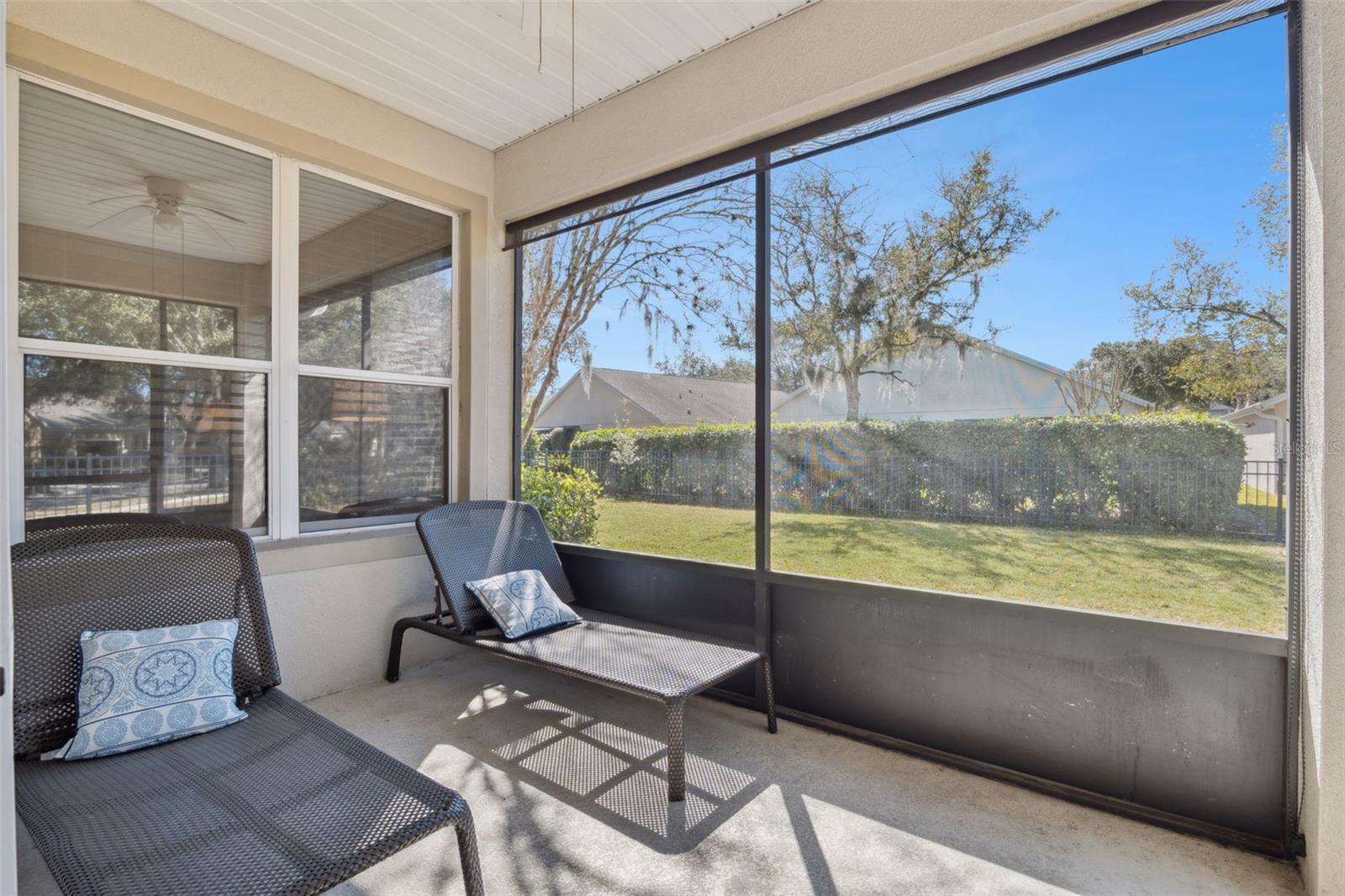 If privacy & affordability is important to you this home is a must see within Victoria Gardens Active 55+ neighborhood! Featuring 3 bedrooms 2 baths with a large fenced in backyard & privacy hedge on a corner homesite. Recent updates include natural gas water heater 26’, A/C condenser & air handler 21’ & Re-roof in 2020. The layout is ideal for an empty nester or someone who is looking to simplify their life and do away with unused living space. Having a 17 x 21 GREAT ROOM provides ample space for furniture and entertaining. It also boasts a 17’ x 11’ kitchen with movable islands to accommodate your lifestyle overlooking the great room and screened enclosed covered patio. This well maintained Light and Bright home features porcelain plank tile and 5” base boards throughout except for bedrooms and laundry. Primary bedroom offers several windows for natural light w/ walk-in closet & organizer. En suite bath has a large glass enclosed walk-in shower & dual sink vanity. Utility room comes with washer & natural gas dryer as well as an electric connection for future flexibility. Gutters are around exterior perimeter. All appliance stay! Victoria Garden residents have access to their own social Private Clubhouse. HOA fee includes lawn care, Spectrum HFC TV & internet and reclaimed water for yard irrigation and access to all community amenities. Community is within 1 mile of I-4 that offers great access to the east coast beaches, Orlando (40 minutes) and 3 International airports within 1 hour.
