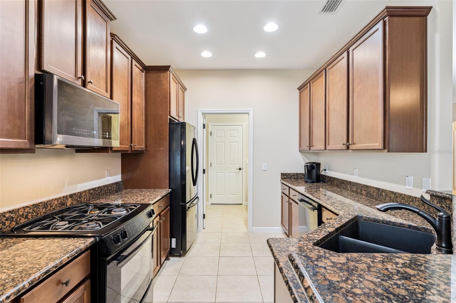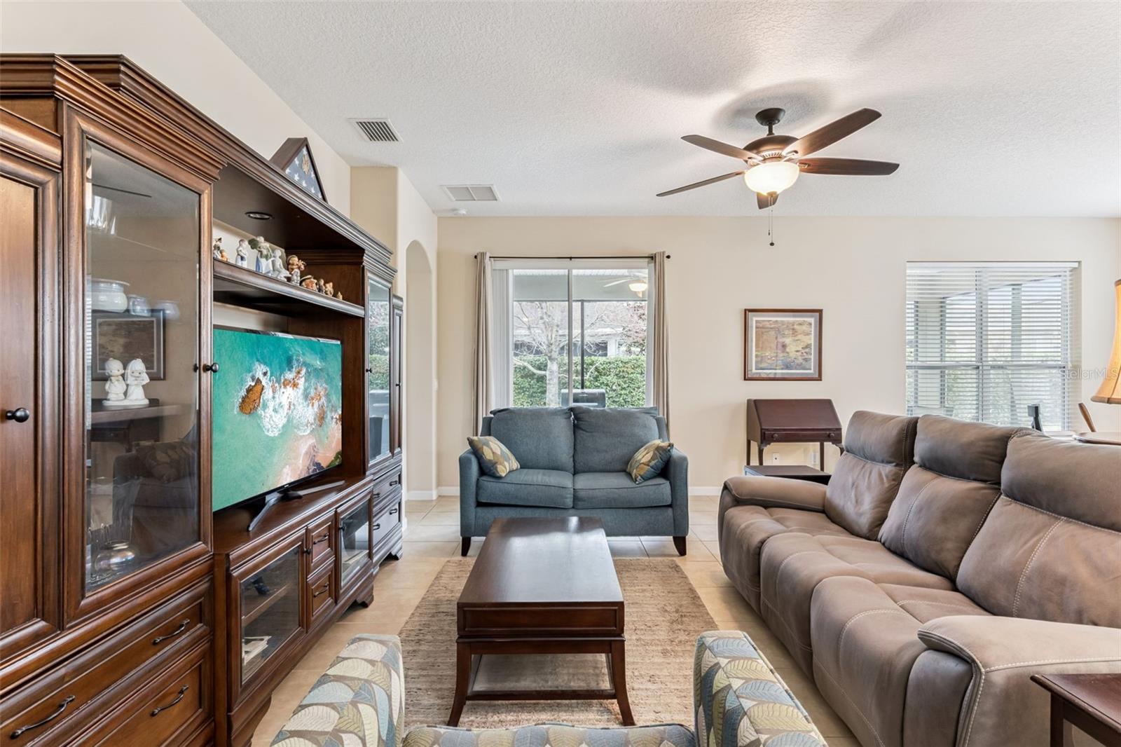 Meticulously maintained 3 BD/2BA Shea built Orchid with a mature privacy hedge in the backyard within the Victoria Gardens 55+ neighborhood. Features include ceramic tile flooring in main living areas, granite countertop in kitchen & baths, RADIANT BARRIER in attic space, DOUBLE PANE windows & a whole home water softener. Kitchen offers 42” Maple cabinets w/ crown molding, 4-burner natural gas range & a new kitchen faucet with pull-out sprayer. The Primary bedroom provides plenty of wall space for furniture placement, a ceiling fan & a door that leads to the bathroom. En suite bathroom has dual sinks, corner soaking tub & a glass enclosed walk-in shower. You will enjoy your morning coffee or late afternoon beverage on the 24'x 10' screened enclosed covered patio with 2 ceiling fans & a privacy hedge in the backyard! The garage has a 22’ depth for additional storage & 3 ceiling mounted storage racks. Utility room comes with storage cabinets, washer and a natural gas dryer. Victoria Garden residents have access to their own social Private Clubhouse. HOA fee includes lawn care, Spectrum HFC TV & internet and reclaimed water for yard irrigation and access to all community amenities. Community is within 1 mile of I-4 that offers great access to the east coast beaches, Orlando (40 minutes) and 3 International airports within 1 hour.