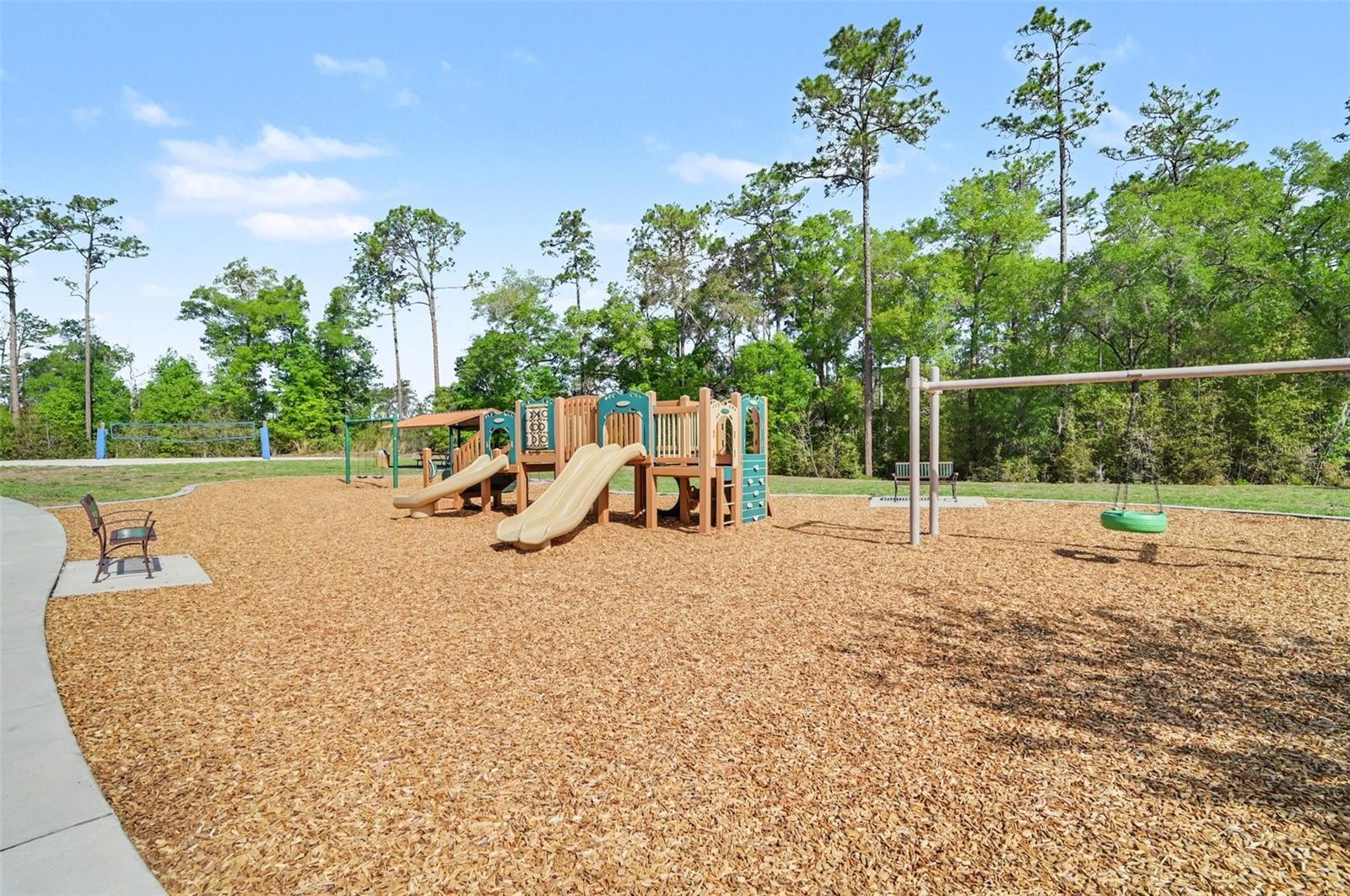 HOA value starts strong here, with the fee including IRRIGATION WATER, CABLE with streaming channels, and INTERNET—three standout perks that make everyday living a little easier. Inside, this 4-bedroom, 2-bath home offers a flexible layout with one bedroom ideal for a HOME OFFICE, guest space, or hobby room. The kitchen features rich dark wood cabinetry paired with GRANITE COUNTERTOPS, creating a warm and timeless look. The open kitchen, dining, and living areas flow seamlessly together, making the home feel both spacious and inviting—perfect for everyday living or entertaining. A SPLIT-BEDROOM floor plan provides added privacy, while the inside LAUNDRY ROOM adds convenience right where you need it. Both bathrooms have GLASS SHOWER ENCLOSURES. Tile flooring runs through the main living and wet areas for easy maintenance, while the bedrooms offer comfortable carpet underfoot. Additional features include GUTTERS, an ATTIC LADDER for easy access to extra storage, gorgeous EXTERIOR LIGHTING for nighttime curb appeal, and a TERMITE BOND for added peace of mind. Step out back to a SCREENED PORCH—perfect for relaxing and enjoying Florida living without the uninvited flying guests. Beyond the home, the community delivers with a fitness center, playground, stunning resort-style pool, dog park, clubhouse, and centralized mailboxes, along with convenient access to nearby shopping, dining, and everyday services. Ideally located about 25 miles from the beaches and approximately 55–60 miles from Orlando’s world-famous attractions—close enough for a day trip, far enough to keep the crowds out of your driveway.