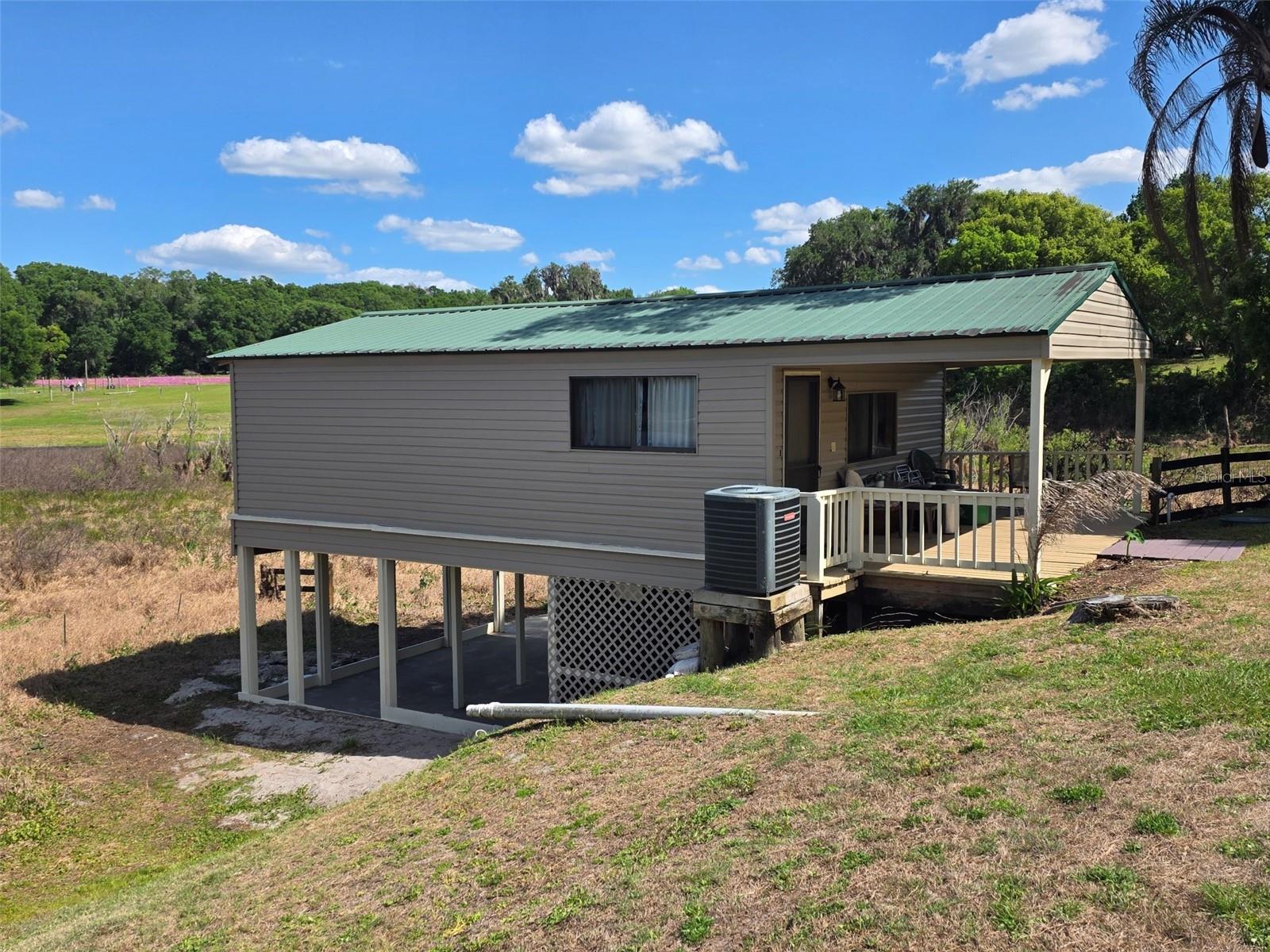 Beautiful lakefront property with a total of 4 bedrooms, 3 full bathrooms, and one-half bath. The lot is nearly 2 full acres. The house is elevated so no flood insurance is required on this property. The main house boasts 3 bedrooms, granite countertops in the kitchen, 2 full bathrooms, a large wood burning fireplace in the living room, French-doors that lead to fully enclosed Florida room that has an incredible view of Lake Louise, a spring fed lake loaded with bass and surrounding wildlife. The private in-law house has been fully renovated and is located to the back right of the property and boasts brand new siding, new insulation, newly enforced footers and supports, and an open carport under the house to put a boat lift or for storage, full kitchen, full bathroom, stove, refrigerator, fresh exterior paint and new flashing. The property has new well pump and water filter. There is a shed on property for storage. This property is close to shopping, and less then 10 minutes from the college and downtown Deland.
