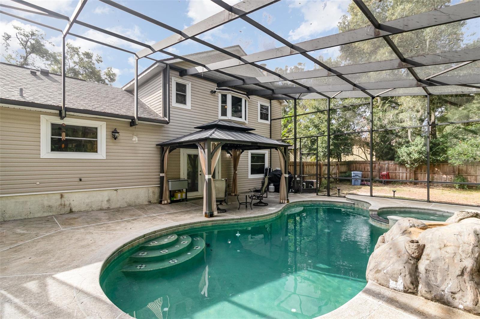This Beautiful home situated within the Country Club Estates neighborhood is a spacious 4-bedroom 2.5 bathroom. The home features two fireplaces, both upstairs and downstairs and recently remodeled primary bathroom. The home also has a new hot water heater and had a new roof put on in 2021. The outdoor living space features a fully fenced backyard and private in-ground heated pool and spa. The pool has a child safety fence for added safety while entertaining. Additionally, the home has an attached two car garage and circular driveway. Located in a quiet neighborhood close to historic downtown Deland and Stetson college.