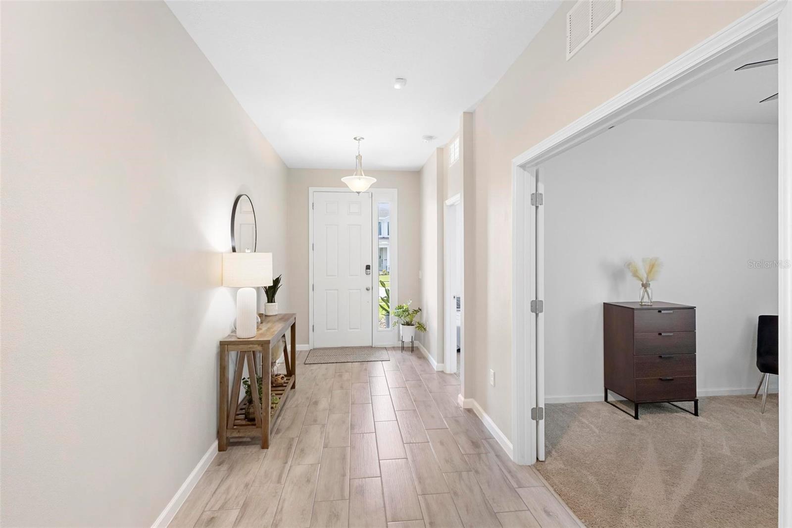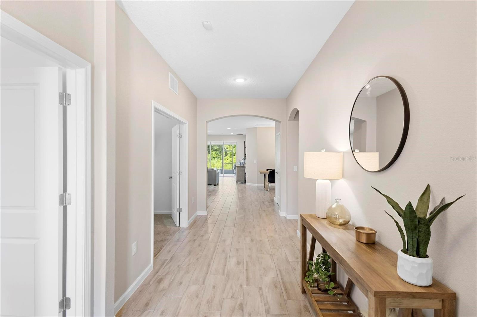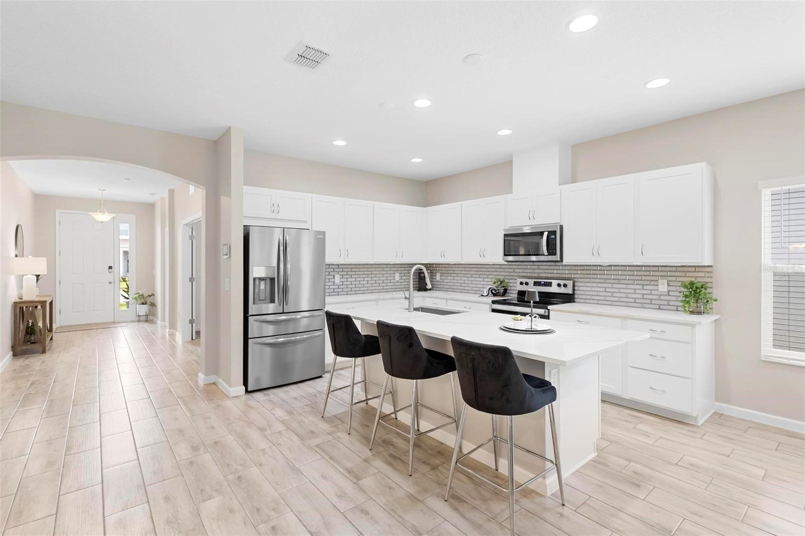 Better than new! Welcome to 4020 Balsam Falls Road located in beautiful Deland, FLorida. This home is practically brand new. A blank slate awaiting your personal touch! The open floor plan of this home offers ample space to entertain with the added bonus of a built in surround sound system! The kitchen is complete with ALL appliances and new backsplash. The kitchen and the bathrooms have been updated with solid stone countertops. There are 4 bedrooms along with a flex room that could be used as a 5th bedroom, an office, game room or even a workout room. This is one of the only models offering a beautiful bay window upgrade in the primary bedroom. The primary also has a huge walk in closet along with an expansive bathroom offering dual sinks, walk in shower as well as a soaking tub. This model also includes a large walk in storage closet just outside the primary bedroom. The 8ft glass disappearing sliders lead out to an oversized, screened back porch, overlooking a conservation area. Deland is centrally located between Orlando and Floridas beautiful beaches and known as the "Athens of Florida." Home to Stetson University and The Athens Theatre. Deland offers a downtown that is charming and vibrant with a distinctive small-town atmosphere. This beautiful home has been very well maintained and is move in ready. Come see it for yourself!