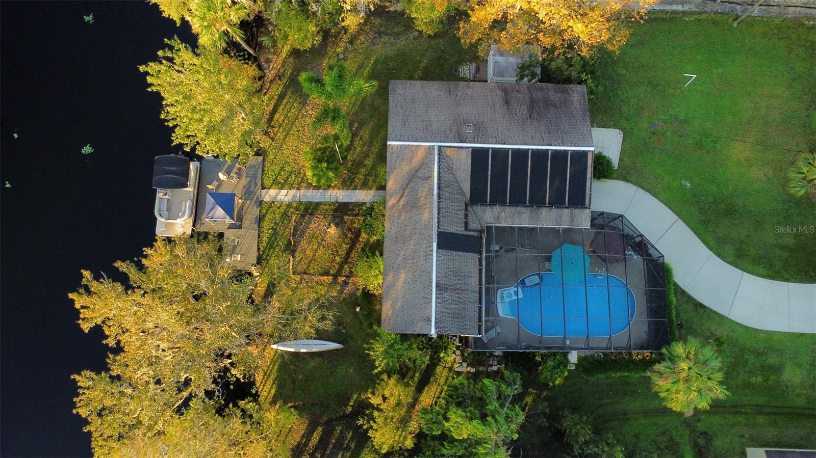 Welcome to your dream home, located on a deep water canal that leads into the St John's River on .57 acres. Spend your days fishing off your dock, taking your boat out into the St. John's River, launching your canoe, or taking a dip in the pool. This two story traditional home offers the main living on the second floor with 3 bedrooms and two full baths. The living room offers vaulted ceilings and windows that overlook the screened pool and canal. Kitchen has new Quartz counters, built-ins for storage and an eating/dining area. The ground floor offers additional square footage with an enclosed porch/Florida room 26x17 with window heat/air and small kitchenette. There is also a pet door that leads out to a fenced area for dogs. Have your morning coffee watching the birds and overlook the pool and deep water canal. There is also an additional bonus room on the ground floor with half bath that could possibly be used as a mother-in-law suite (24x17) with window A/C. Laundry/storage area is 13x15.5. The garage area offers enough room for an ATV, and two standard size vehicles parked in tandem 15x39. Recent upgrades include Quartz counters in kitchen, new water heater, leaf-gutters, and roof 2018. Enjoy the wildlife including deer, turkeys, owls, hawks, and manatees. The property is near the end on a dead end street. Public records show total square footage is 3164. Seller states flood insurance is 'not' currently required. Room measurements are approximate.