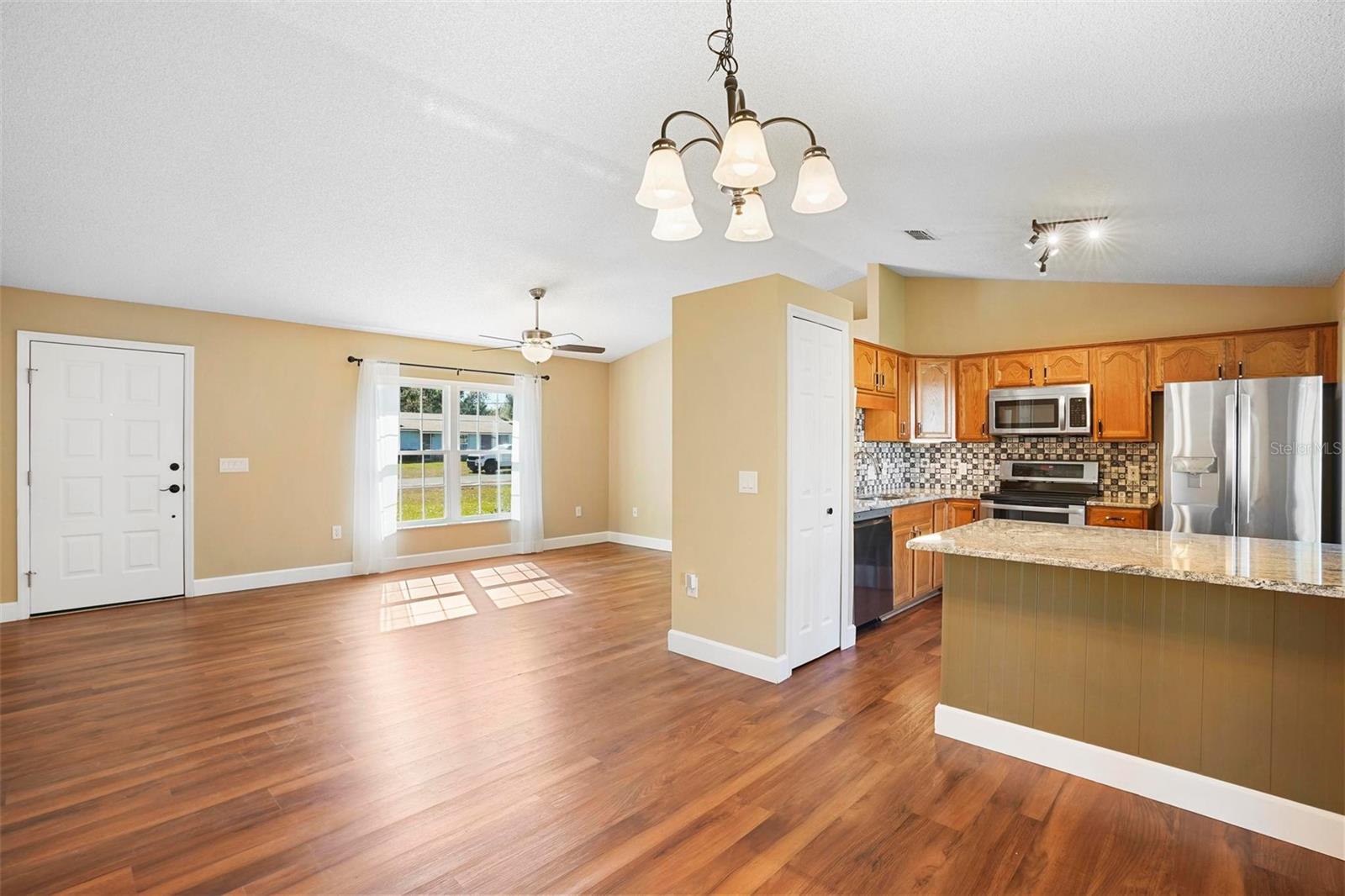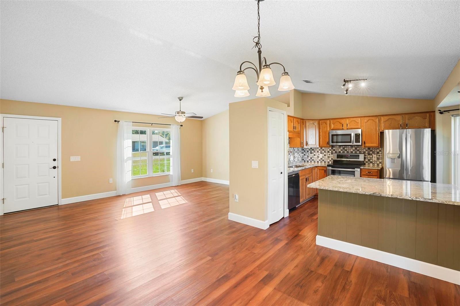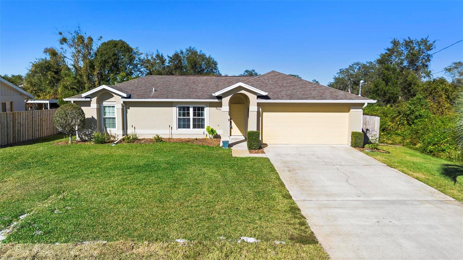 DeLand - MAJOR PRICE IMPROVEMENT! Like new! Seller says let’s get closed! Come see this great home today - Easy living in this 3 bedroom, 2 bath ranch with a large fenced backyard. Perfect starter house or addition to your rental portfolio. NO HOA. Lab-like kitchen with backsplash for easy everyday cooking. There is a wine/drink fridge in the kitchen island. Vinyl floor in the common area and NEW carpet in the bedrooms. Landscaped with a minimum of maintenance. Shed in the backyard for extra storage. Sprinkler system. Water softener. 2 car garage with concrete driveway. All appliances included. Schedule your showing today!