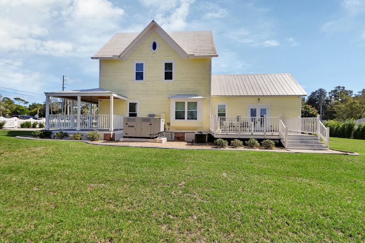 Absolutely gorgeous historical landmark that is zoned B5 that is compatible to rezone residential. Built in 1870 the Stockton-Lindquist home is the oldest home in DeLand and is the epitome of historical elegance with professional functionality perfect for a commercial business. The home has been beautifully remodeled! HVAC, windows, septic, windows, lovely laminate and ceramic tile flooring, electric and plumbing updates in 2021. The .60 acre lot is fully fenced with lovely landscaping and there is an irrigation system. Wraparound porch with tongue and groove ceiling, and a large rear patio area to entertain on. There is a full house generator that is powered by gas lines and a security system that is owned by the seller. The expansive kitchen and bathrooms were renovated with granite counter tops, ample amount of storage in high end soft touch cabinetry, decorative back splash, and stainless steel appliances. It is currently being used as a Sober Living Facility. Three floors that have six rooms or offices and four bathrooms with a large kitchen and a front room that would be a perfect reception area. It’s easy to envision this as a high end insurance agency, real estate office or law office or could be rezoned residential and be a dream home. Located near downtown DeLand and Stetson University with easy access to I-4. Five parking spaces with much more room to expand for additional parking. The renovations make this charming piece of DeLand’s history a showpiece