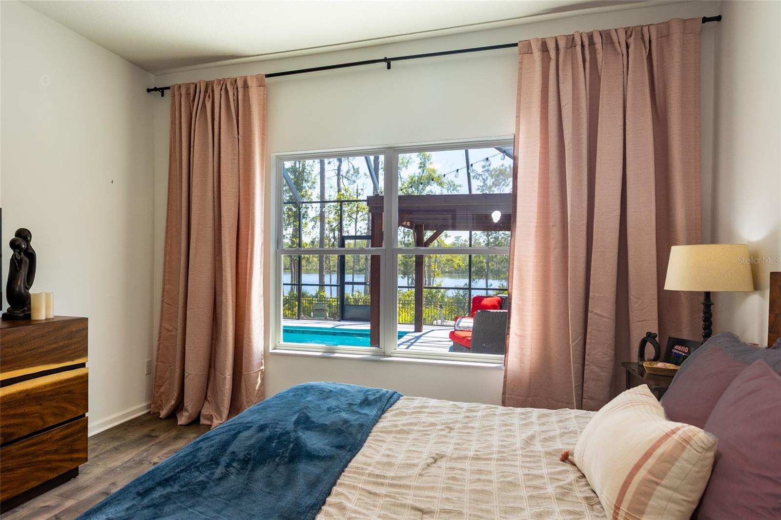 A must see home with private pool and amazing Lake Moore views from inside and out. The community is surrounded by wetland conservation areas and ponds, providing a peaceful and lush atmosphere. Enjoy nature trails or relax in your own backyard oasis. The Mulberry floor plan epitomizes the charm of single-story living with its spacious and versatile layout, perfectly crafted for the modern single-family lifestyle. Spread across 1,938 square feet, this home offers ample room for comfort and functionality. Featuring four bedrooms and two bathrooms, including a luxurious master suite, residents enjoy privacy and relaxation in every corner. The open-concept design seamlessly integrates the living, dining, and kitchen areas, creating a welcoming space for gatherings and daily activities. With two garage spaces, homeowners benefit from secure parking and additional storage, enhancing the convenience of this delightful residence. Enjoy any time of the day with a private lanai, screened in pool, and luxurious view of the lake. Located about 20 minutes from Daytona and New Smyrna Beach.