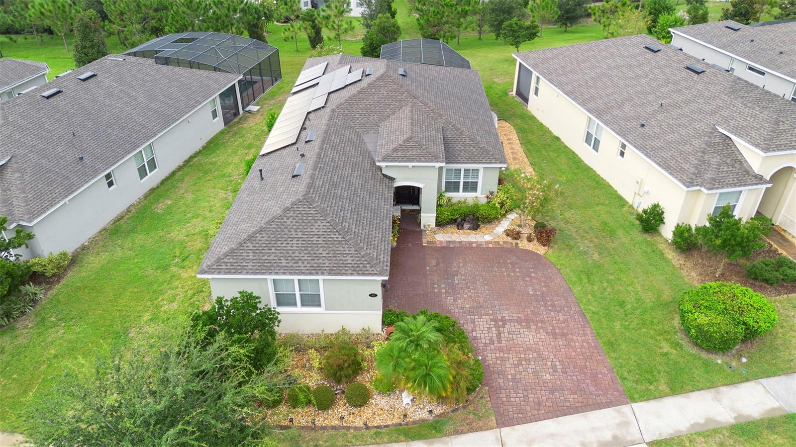 Phenomenal POOL home in the highly sought-after golf community of Victoria Hills! This beautifully maintained residence offers over 2,000 square feet of living space with 3 bedrooms, 2 bathrooms, and the HUGE benefit of fully paid-off SOLAR PANELS at closing—providing incredible energy savings and making this home even more affordable on a monthly budget. Step inside to a welcoming foyer accented with tray ceilings and wood-look tile flooring. To your right, a formal dining room connects seamlessly to the kitchen through a butler’s pantry and coffee bar walkway. The kitchen is truly a chef’s dream, featuring 42” upper cabinets, stone countertops, a natural gas range, stainless steel appliances, and an open-concept design that flows into the living room and dinette. Plantation shutters throughout the living spaces add an elevated, polished touch. The spacious living room includes an oversized sliding door leading to the screened-in pool and lanai—perfect for year-round Florida living. Just off the living room, you’ll find the private primary suite complete with a walk-in closet and spa-like ensuite bath. Toward the front of the home are bedrooms two and three, a full bathroom and the laundry room with garage access.Living in Victoria Park means access to RESORT-STYLE AMENITIES—including MULTIPLE POOLS, FITNESS CENTERS, WALKING TRAILS, VICTORIA HILLS GOLF COURSE, and convenient DINING, SHOPPING, AND MEDICAL OFFICES. HOA dues also include CABLE TV, HIGH SPEED INTERNET, AND IRRIGATION. Don’t miss your chance to tour this beautifully upgraded home—CALL TODAY TO SCHEDULE YOUR PRIVATE SHOWING.