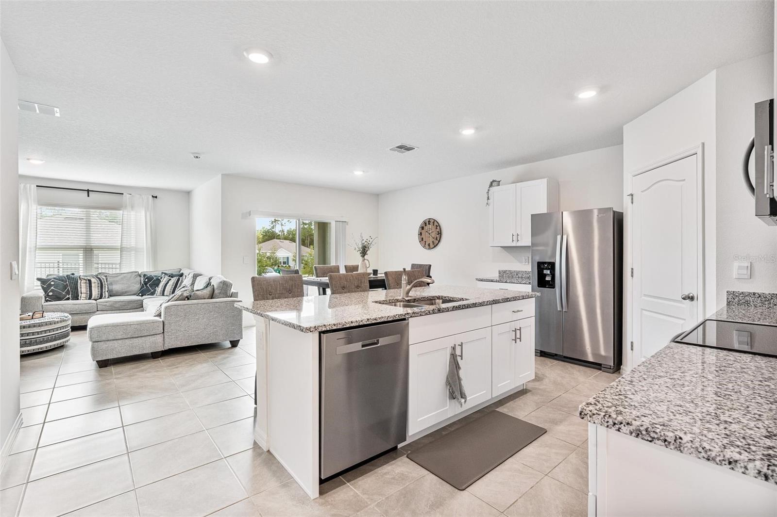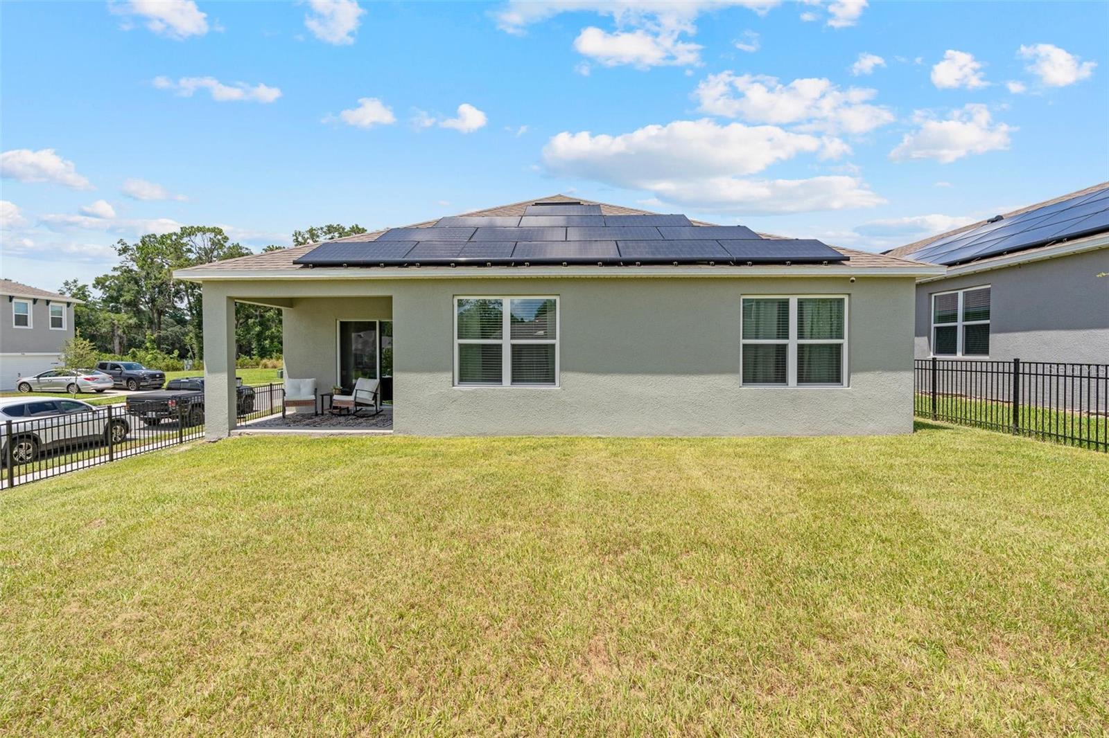 Live Every Day Like You’re on Vacation! Step into style and comfort in this stunning 4-bedroom, 2-bath home boasting 1,867 square feet of modern elegance. Built in 2023 and still under warranty, this beauty blends sophistication with everyday ease. The open-concept layout welcomes you with a bright, airy flow from the spacious foyer to the heart of the home — a gourmet kitchen featuring granite countertops, stainless steel appliances, a walk-in pantry, and an oversized island perfect for morning coffee or evening gatherings. Natural light pours through the living and dining areas, highlighting sleek tile floors and peaceful backyard views. Relax in your private, fenced yard or take advantage of the resort-style community amenities — sparkling pool, fitness center, tennis courts, clubhouse, cabanas, and playground — all designed for endless fun and relaxation. With solar panels keeping energy costs low and furnishings negotiable, this home truly has it all — style, comfort, and smart living in one beautiful package.