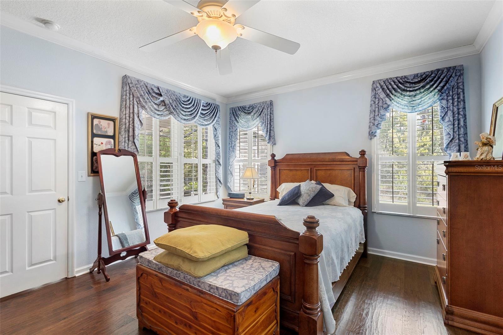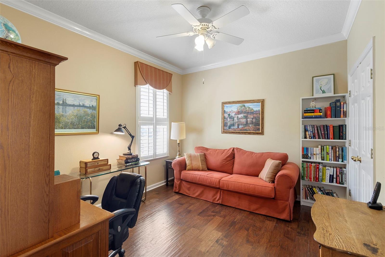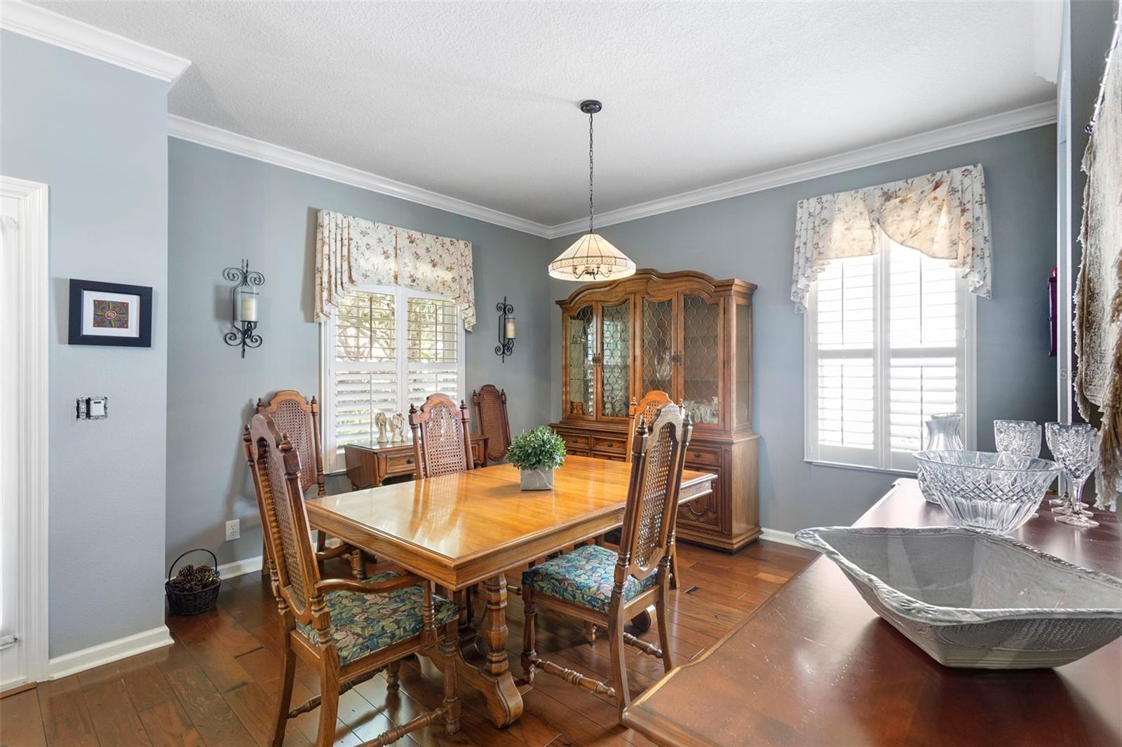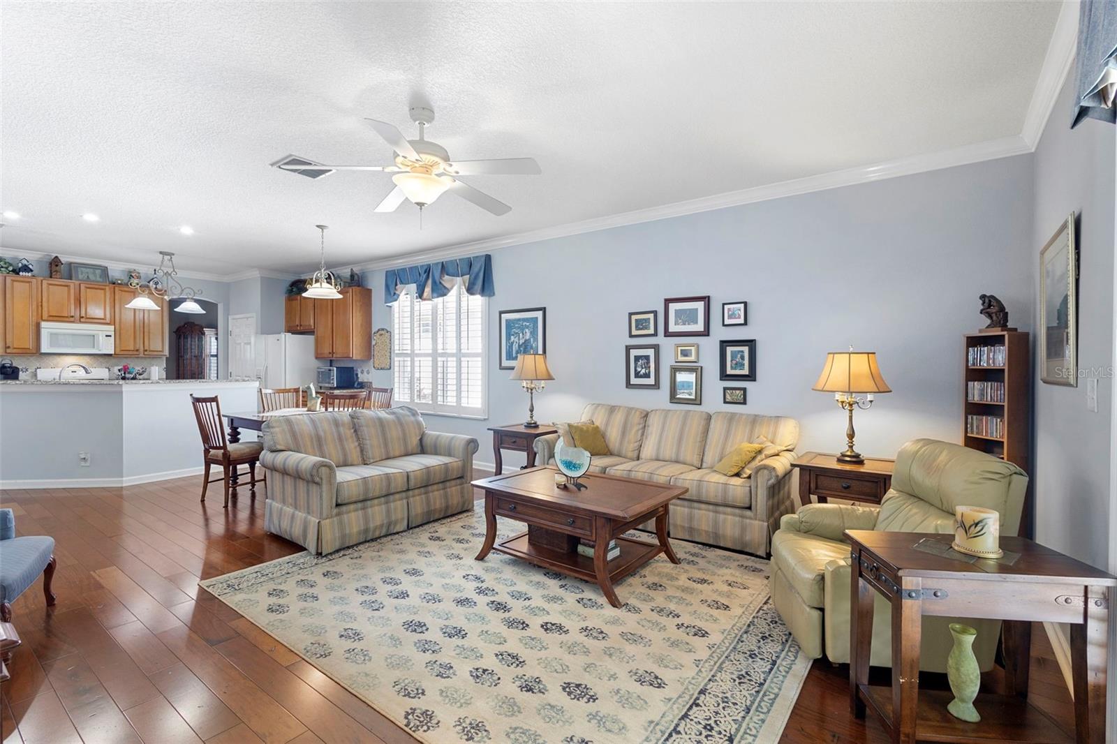 Screened-In Patio | French Doors | Paid off Solar Panels | Gated: Welcome to this beautifully maintained home in the highly desirable Victoria Garden community. This spacious 3-bedroom, 2-bathroom residence features a light-filled living area that flows effortlessly into the casual dining space and kitchen and living room — perfect for entertaining or everyday living. The home features wood floors and Crown molding throughout. Primary Suite boasts a walk in closet and En Suite bathroom with Garden tub, double sinks and walk in shower. Additional bedrooms are spacious and share a guest bathroom. Step outside through French doors to your own large screened-in patio, ideal for morning coffee or evening relaxation. The 2-car garage provides ample parking and storage. Inside laundry room with Extra storage space for all your cleaning needs. Located in a welcoming community with top-notch amenities including a clubhouse, resort-style pool, Tennis Courts, Walking Trails, Restaurant and beautifully landscaped common areas. This home offers comfort, convenience, and lifestyle all in one. Don’t miss your chance to own a home in one of the area's most sought-after neighborhoods. Schedule your private tour today!